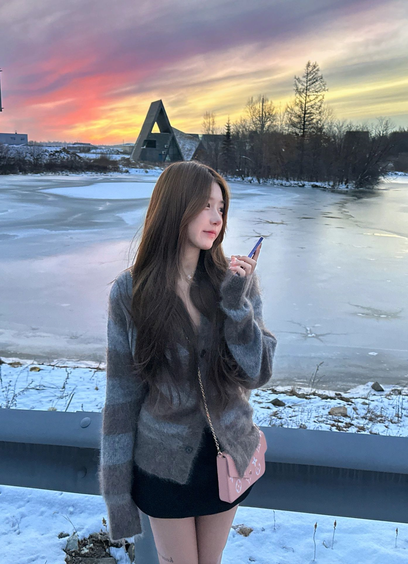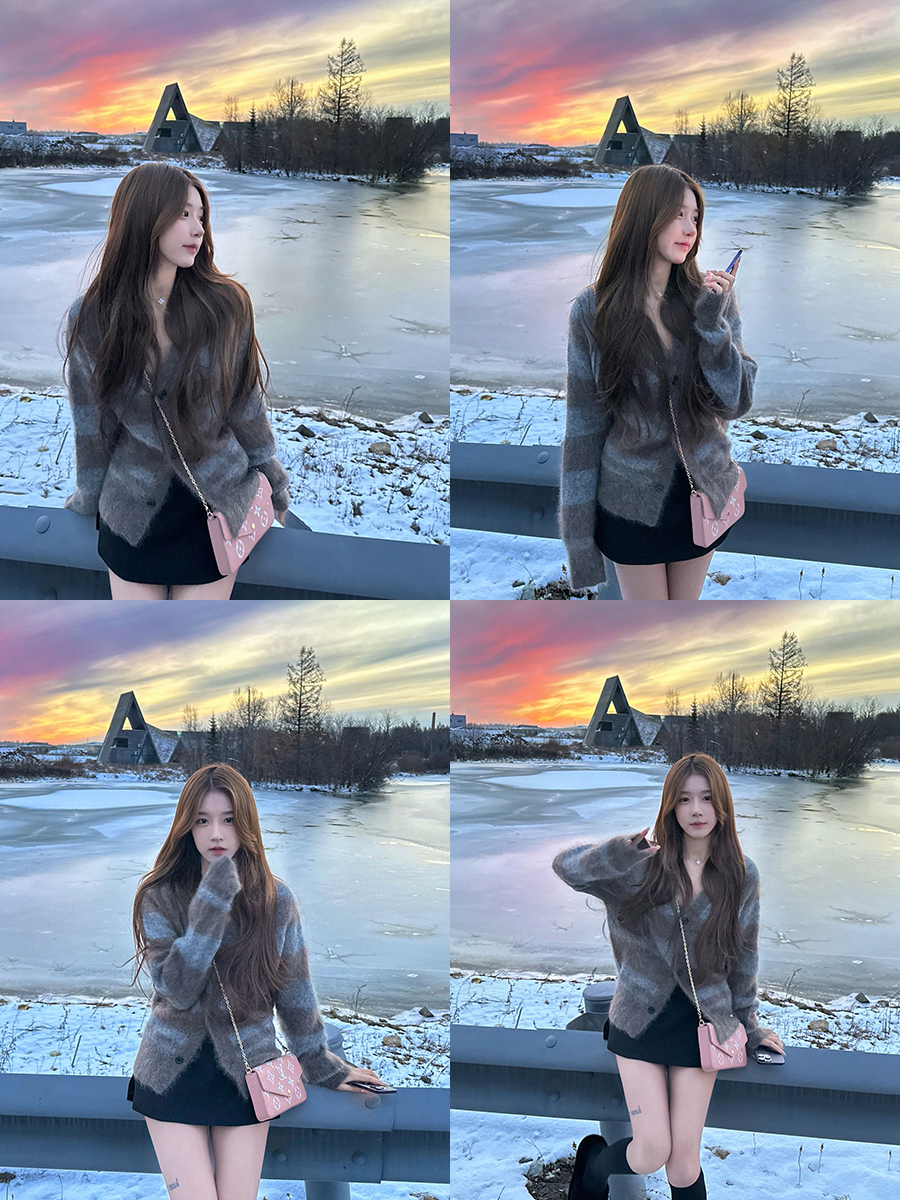 Female pilot馬海毛毛衣V領女小眾軟糯加厚條紋針織開衫外套