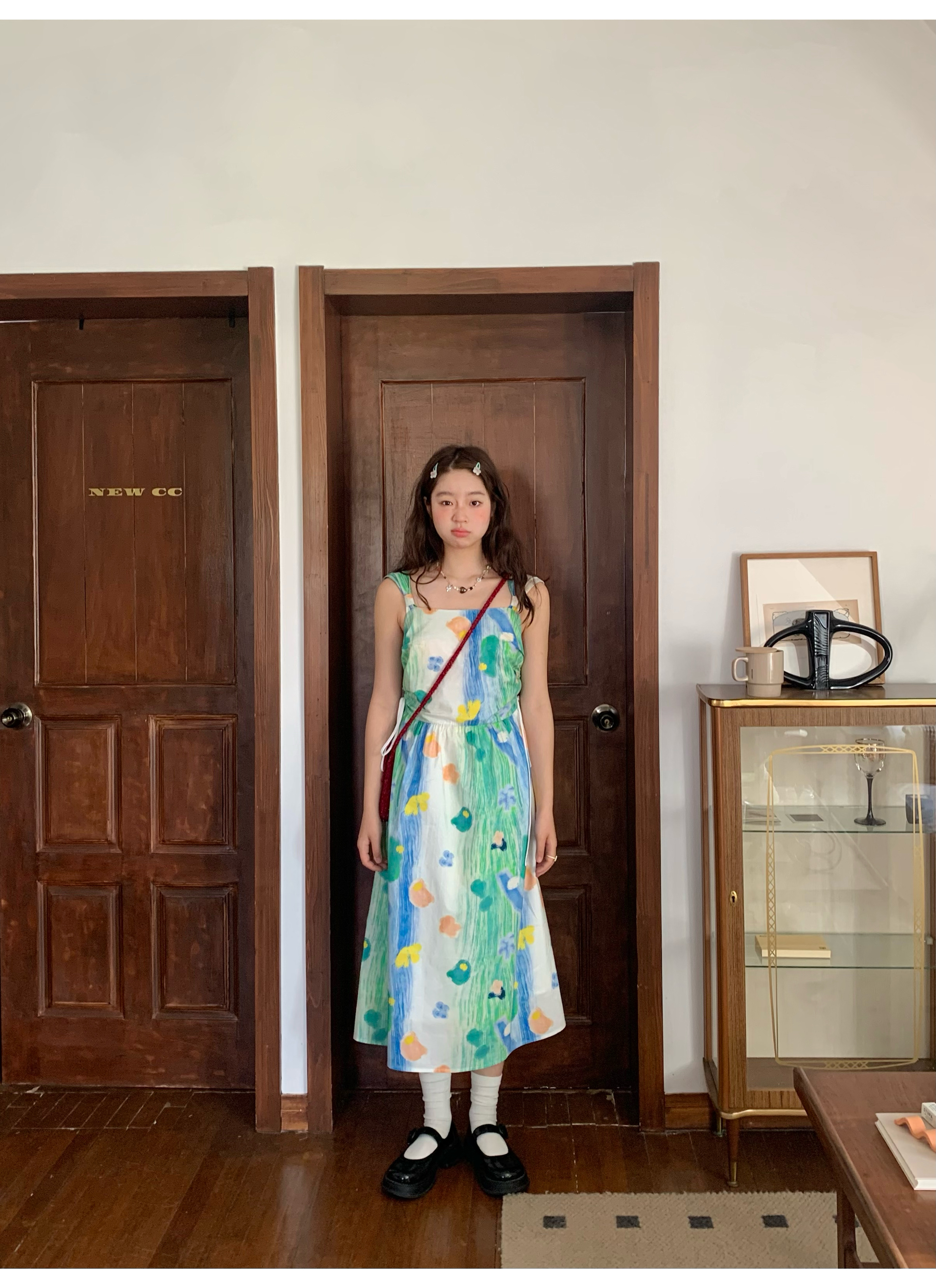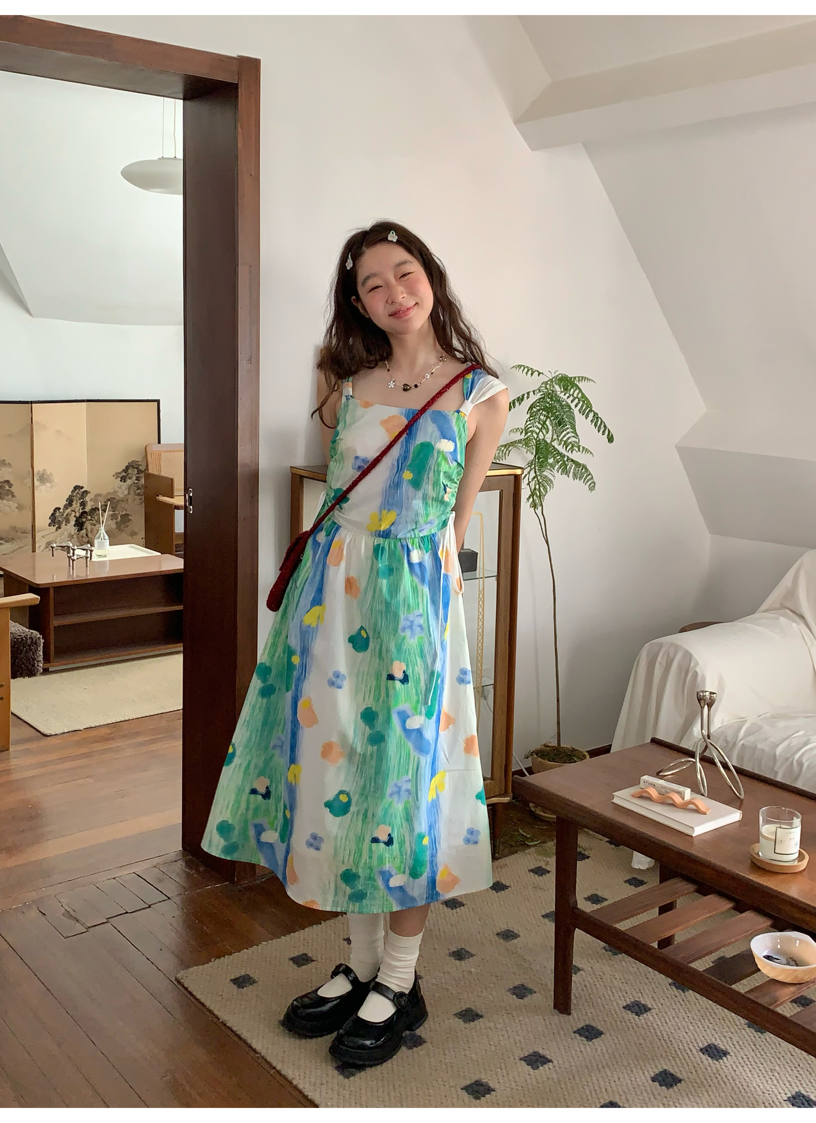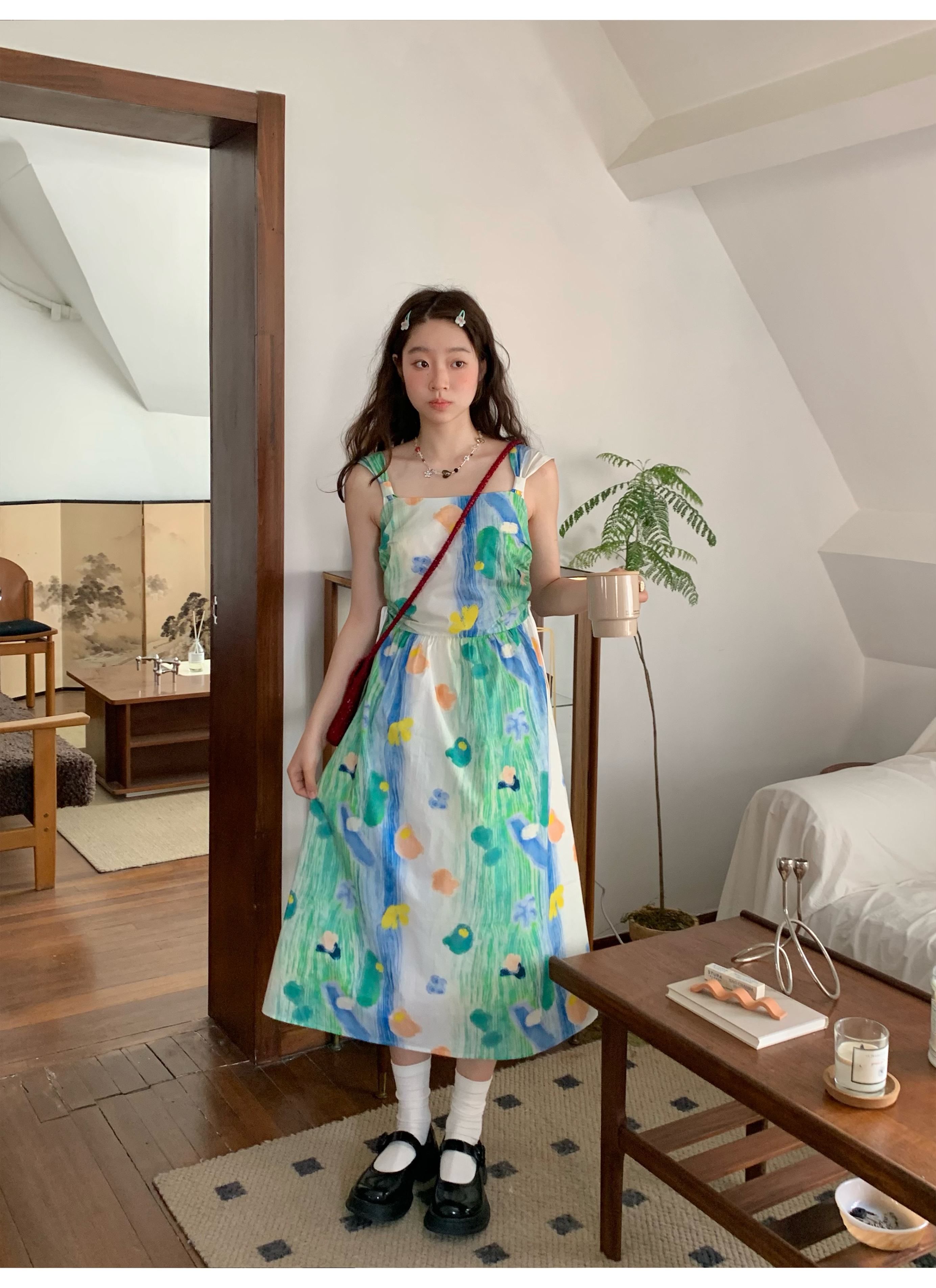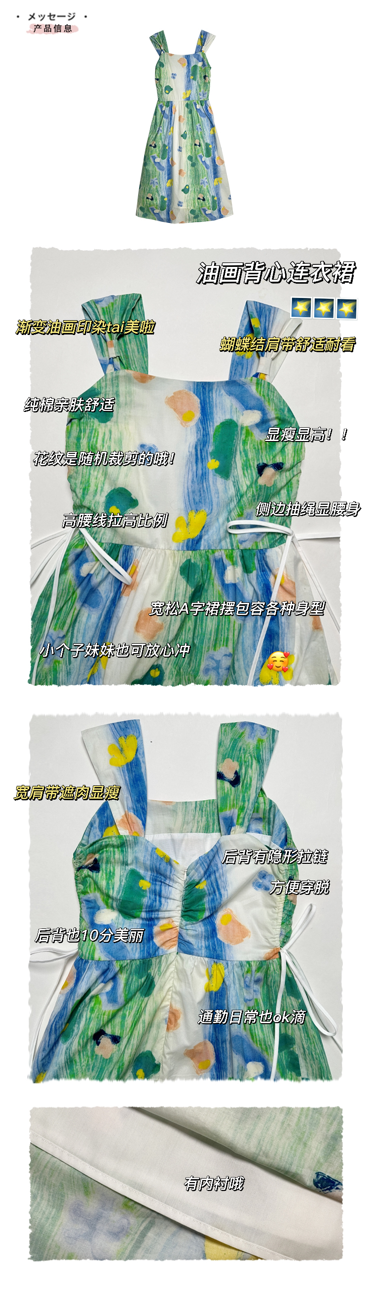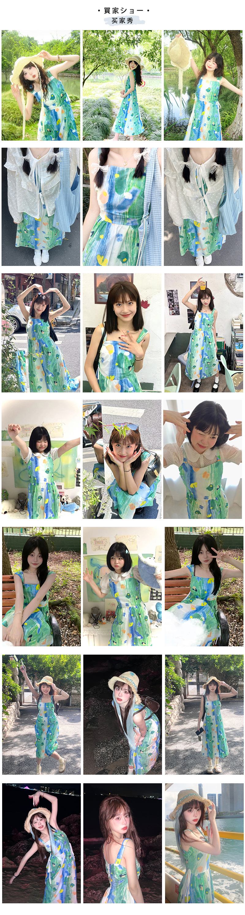 嘿山姥姥 油畫吊帶裙子女夏季新款甜美少女顯瘦抱嬰袋中長裙