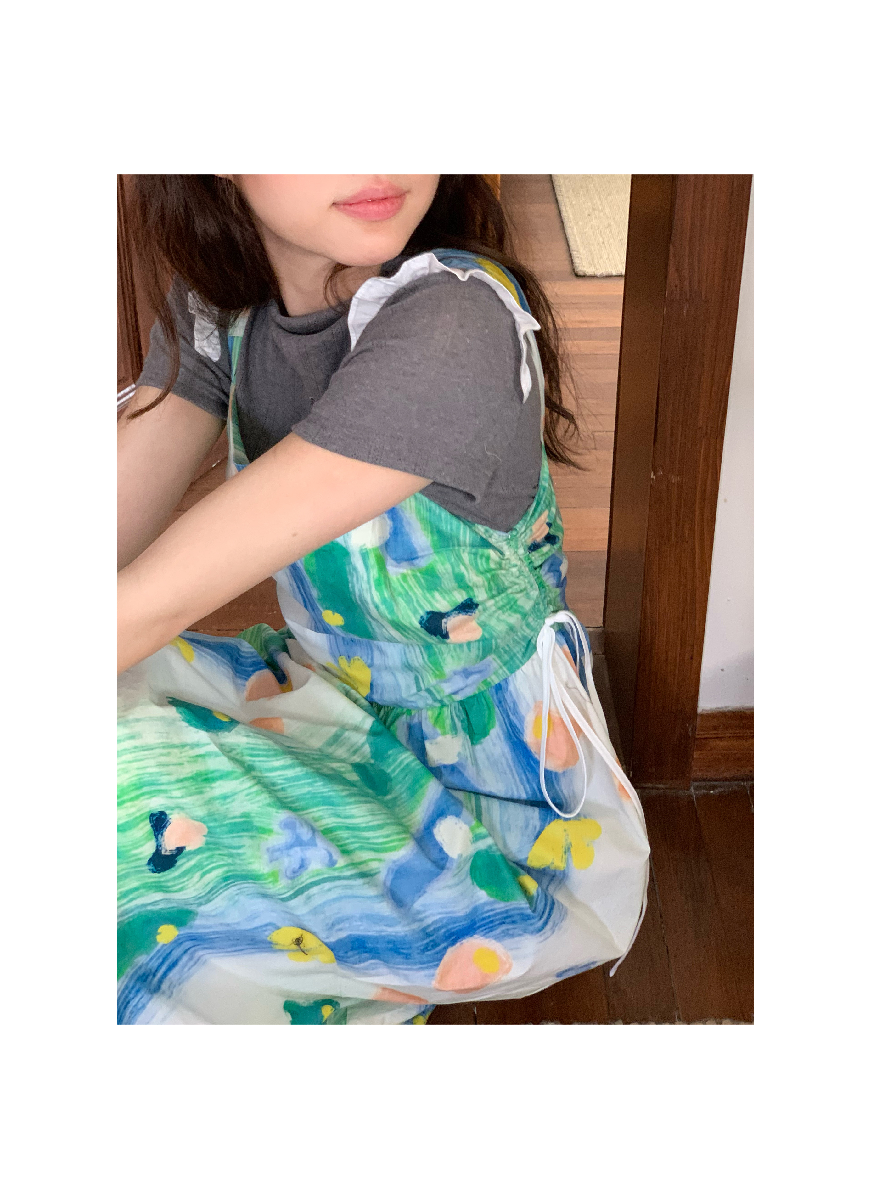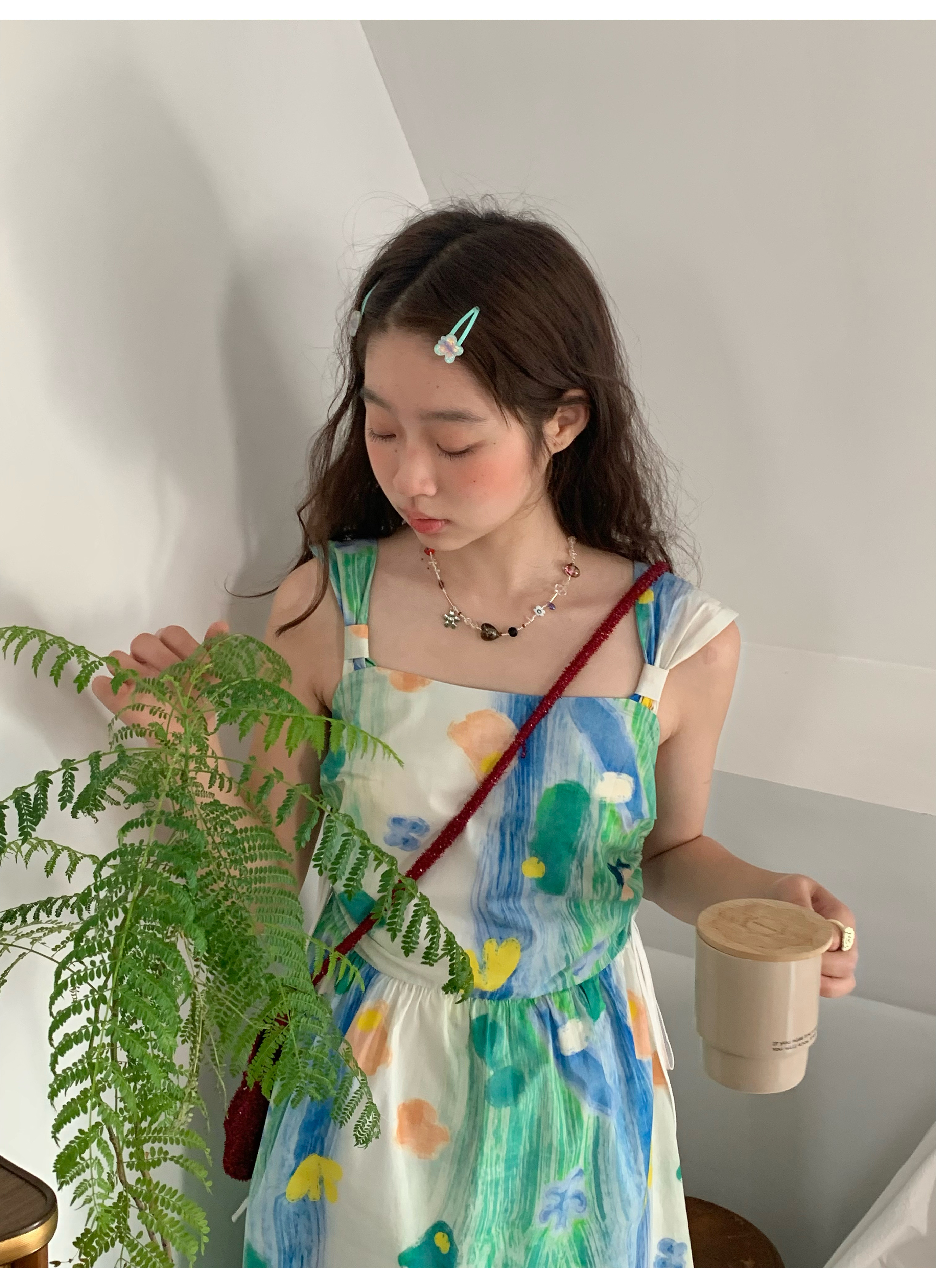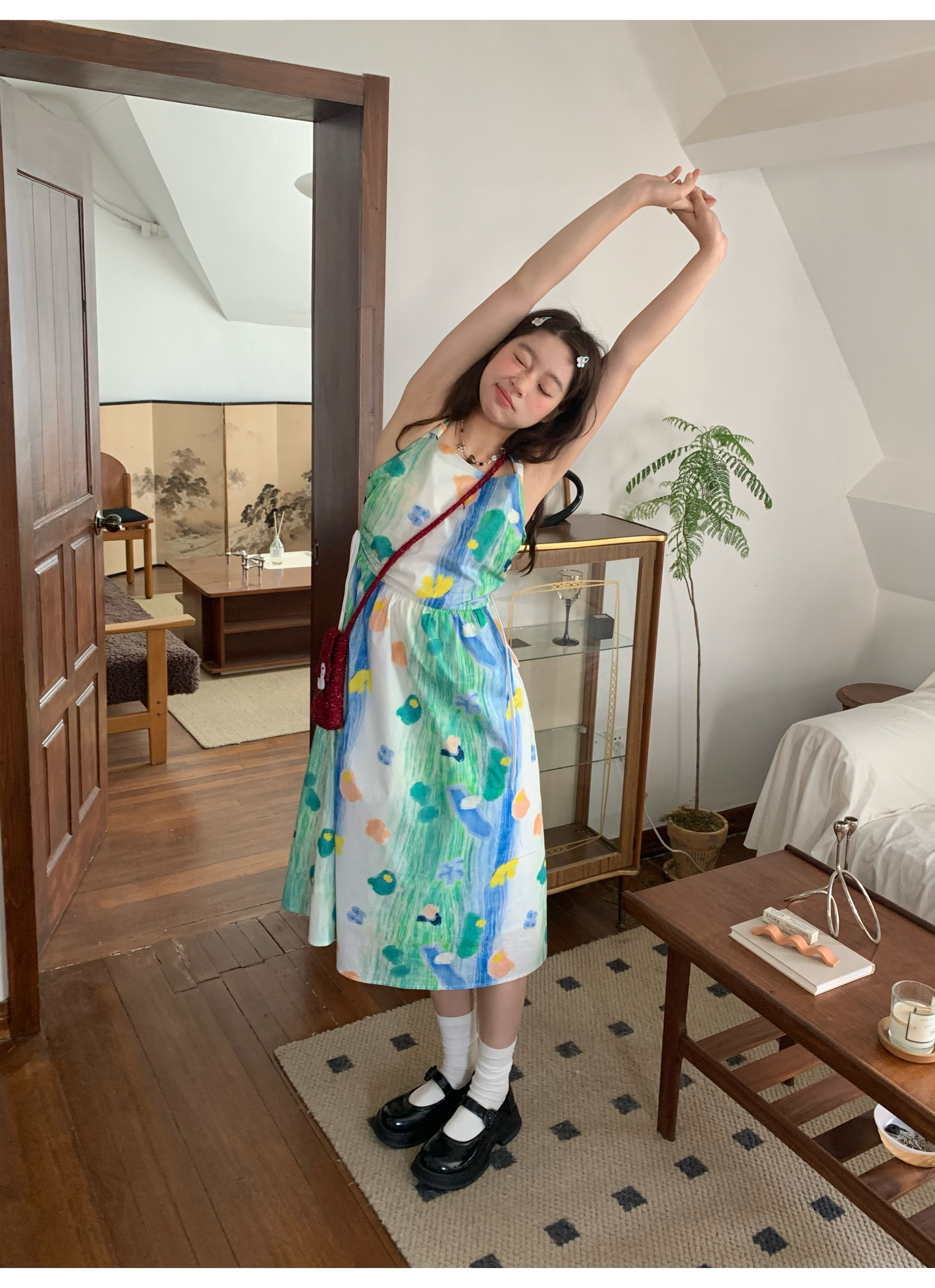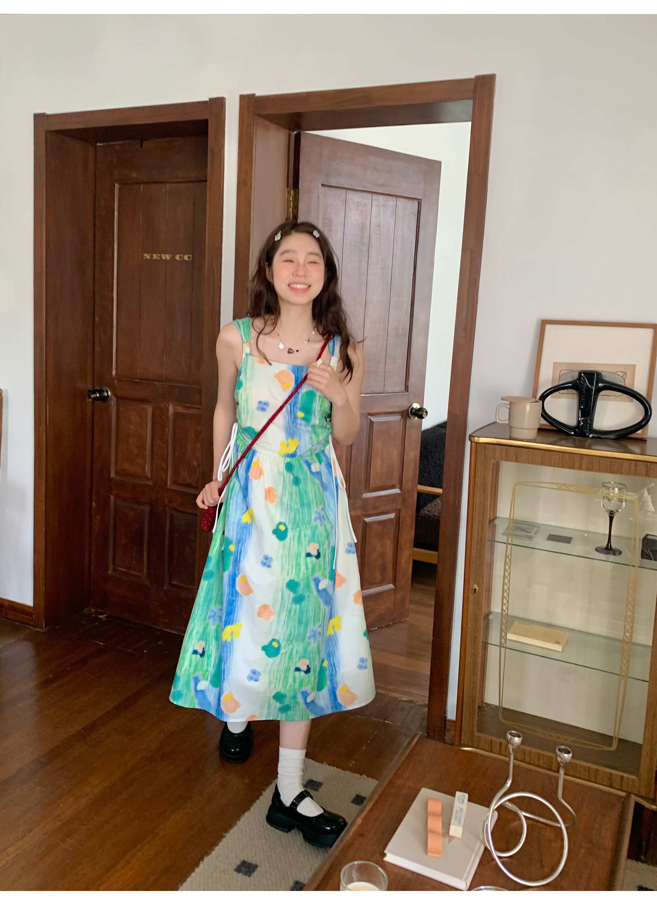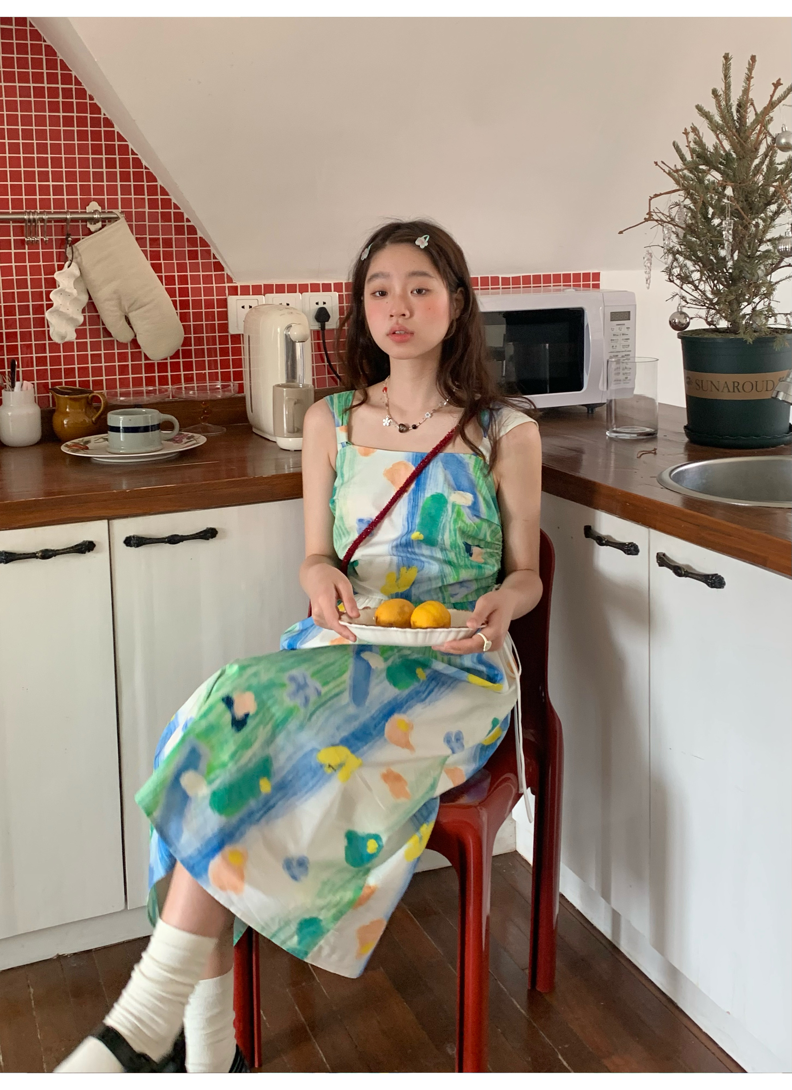 嘿山姥姥 油畫吊帶裙子女夏季新款甜美少女顯瘦抱嬰袋中長裙