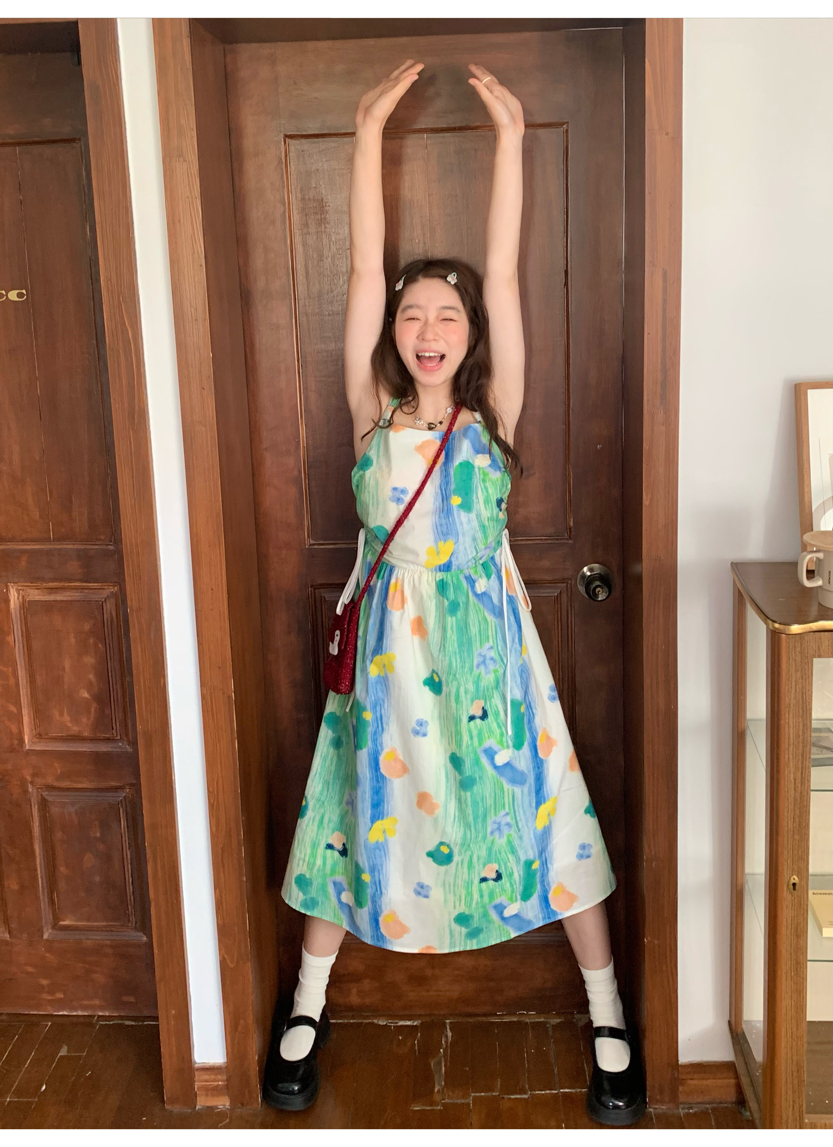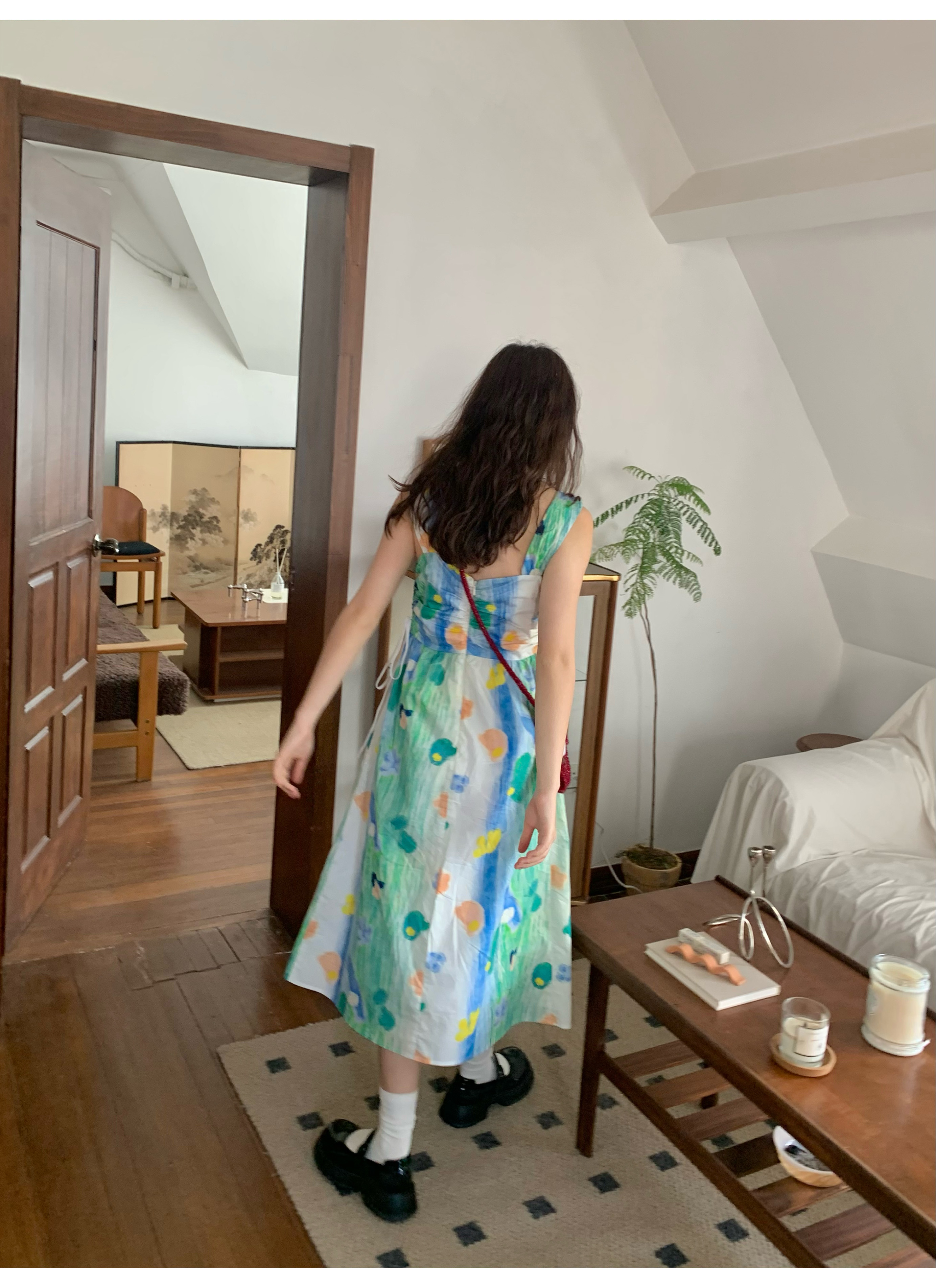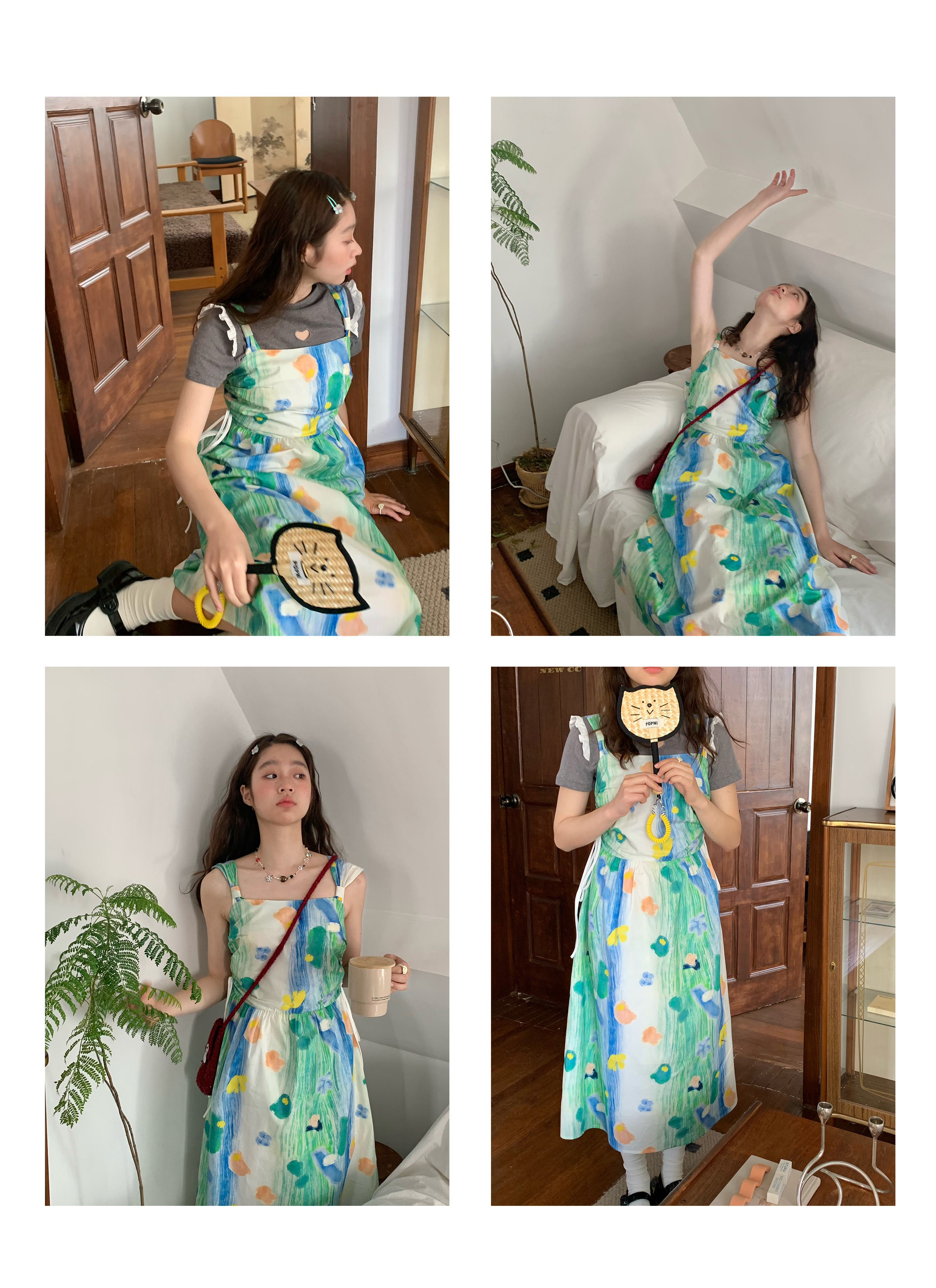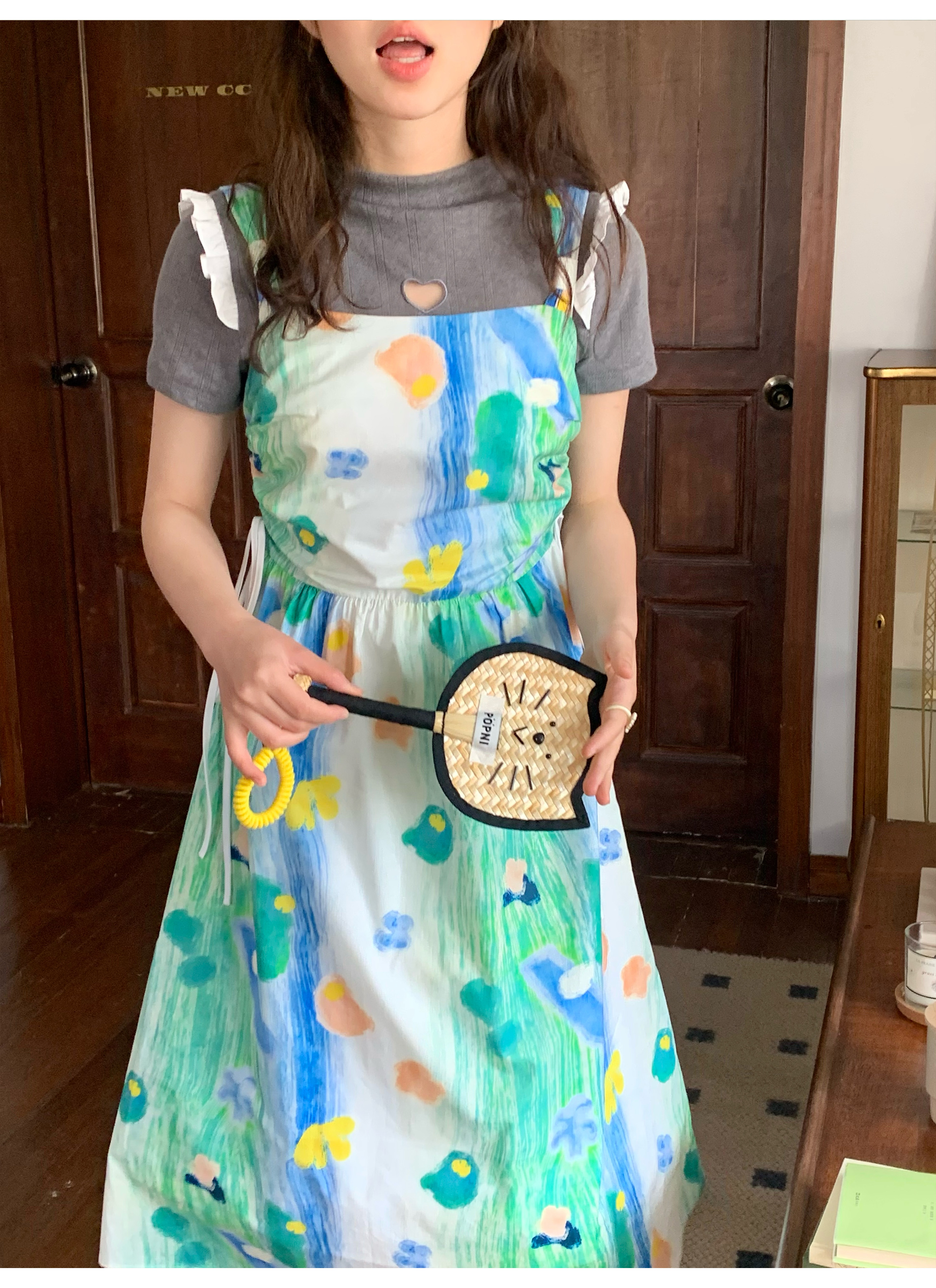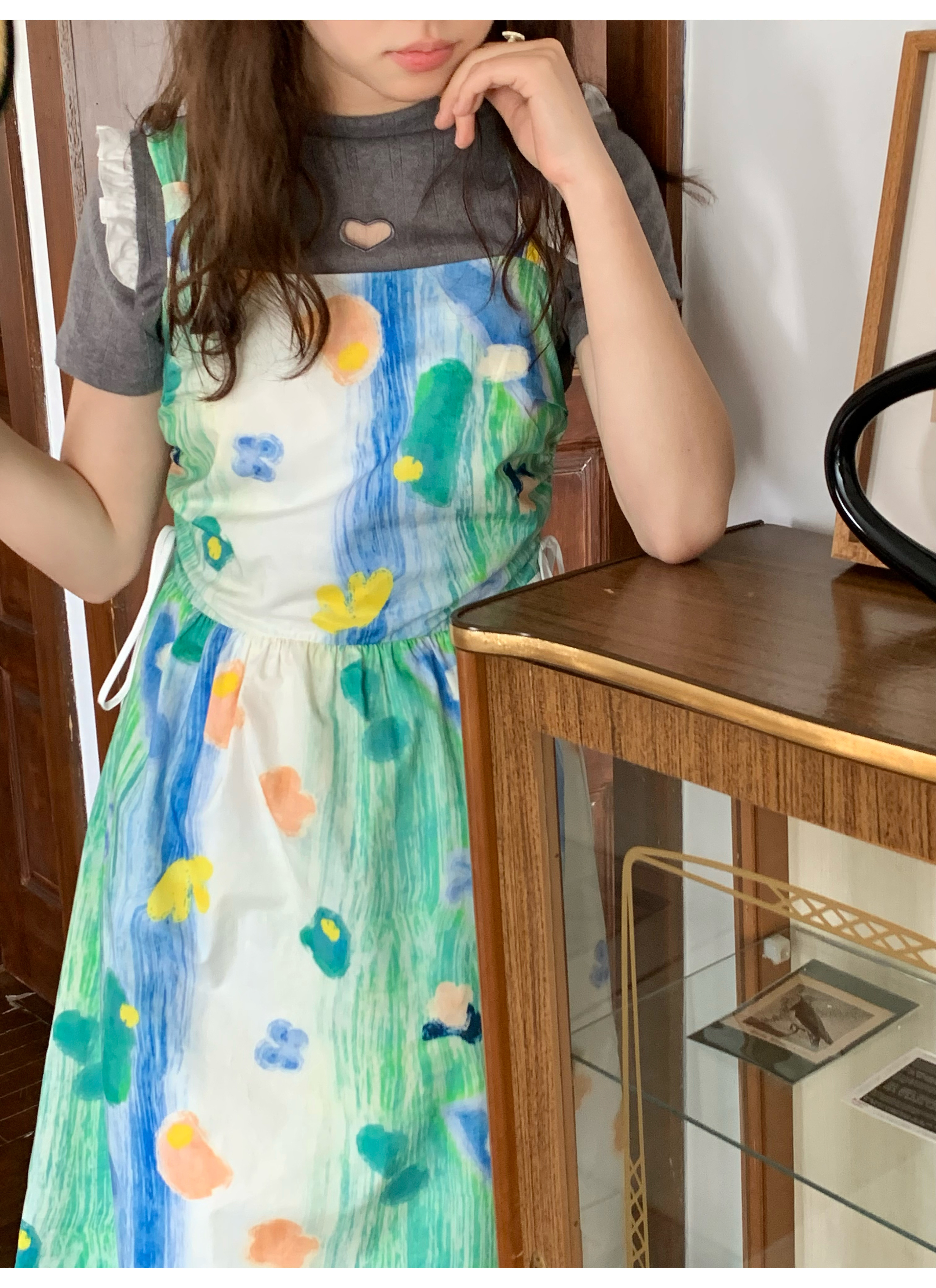 嘿山姥姥 油畫吊帶裙子女夏季新款甜美少女顯瘦抱嬰袋中長裙