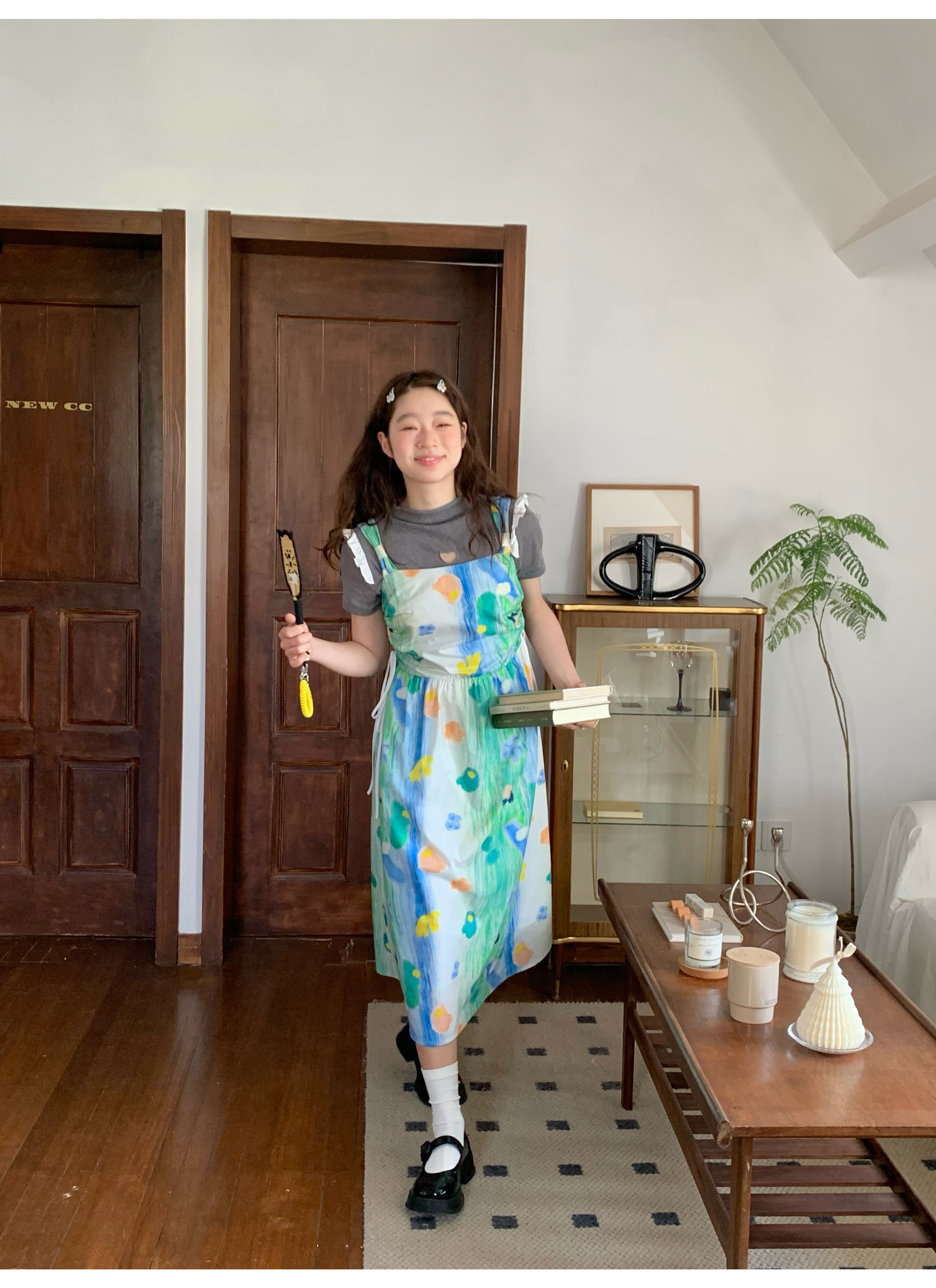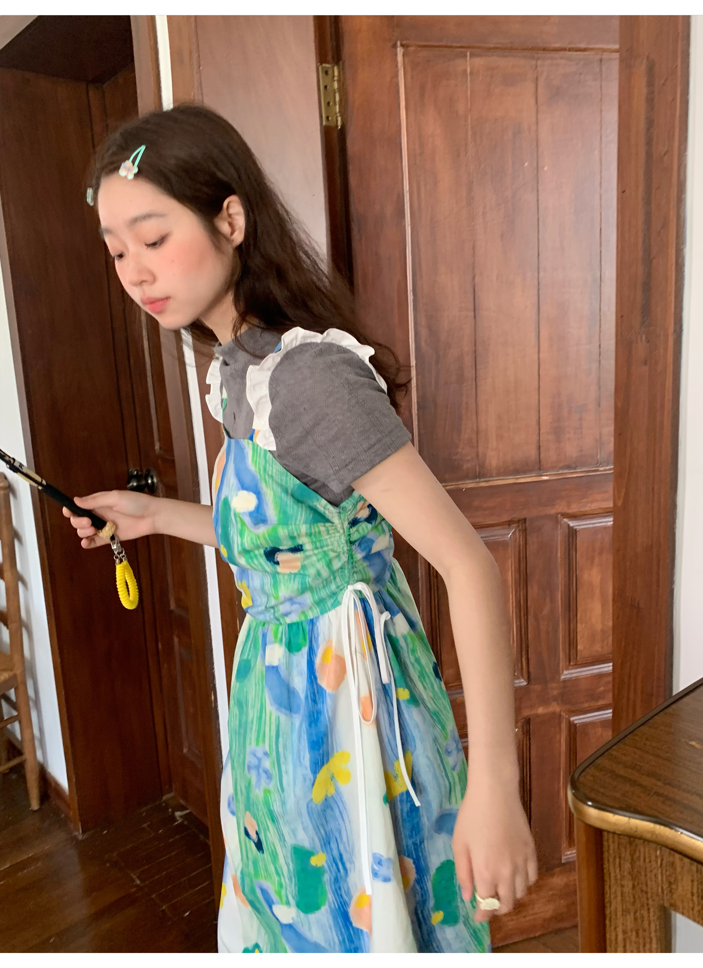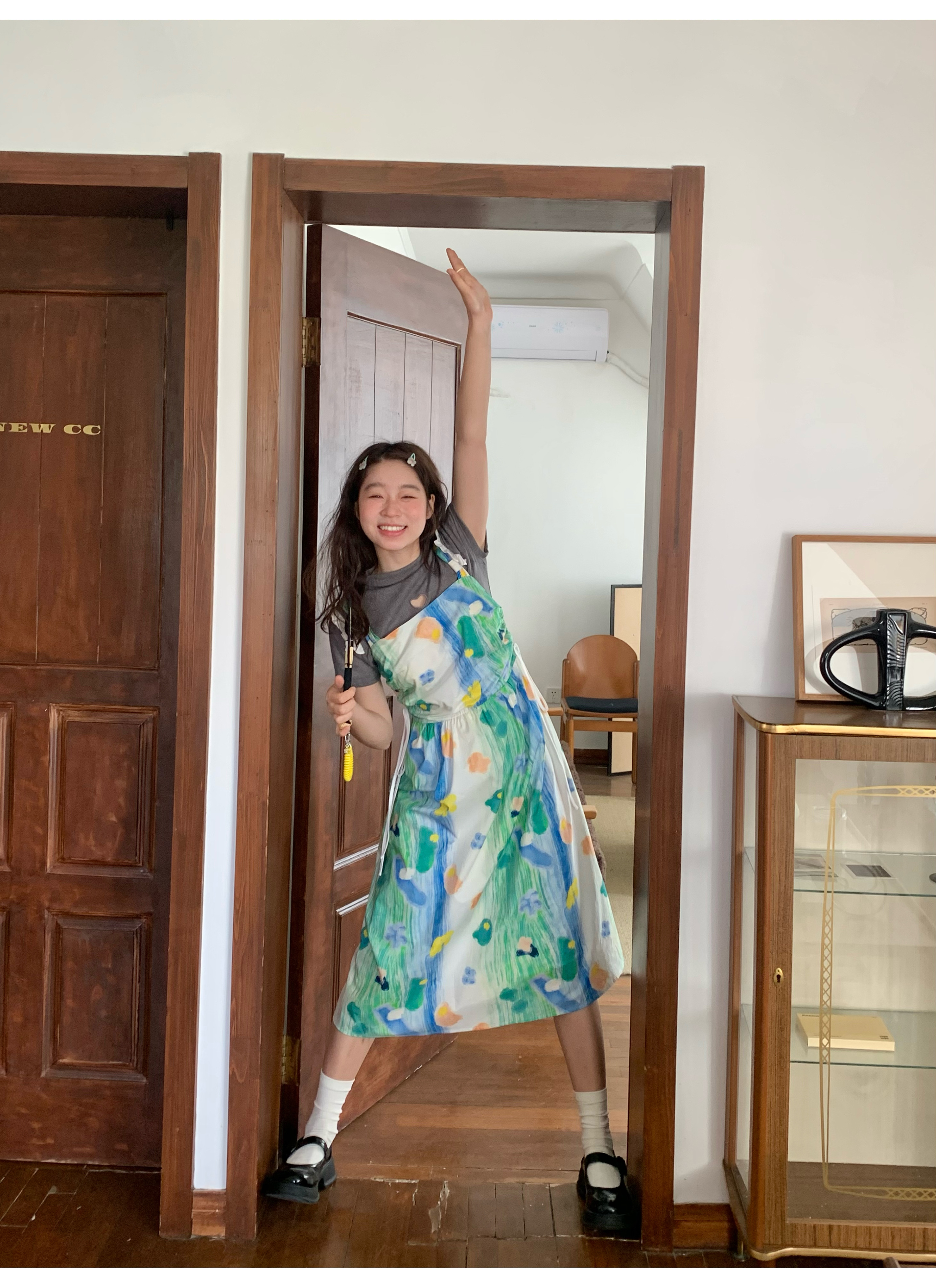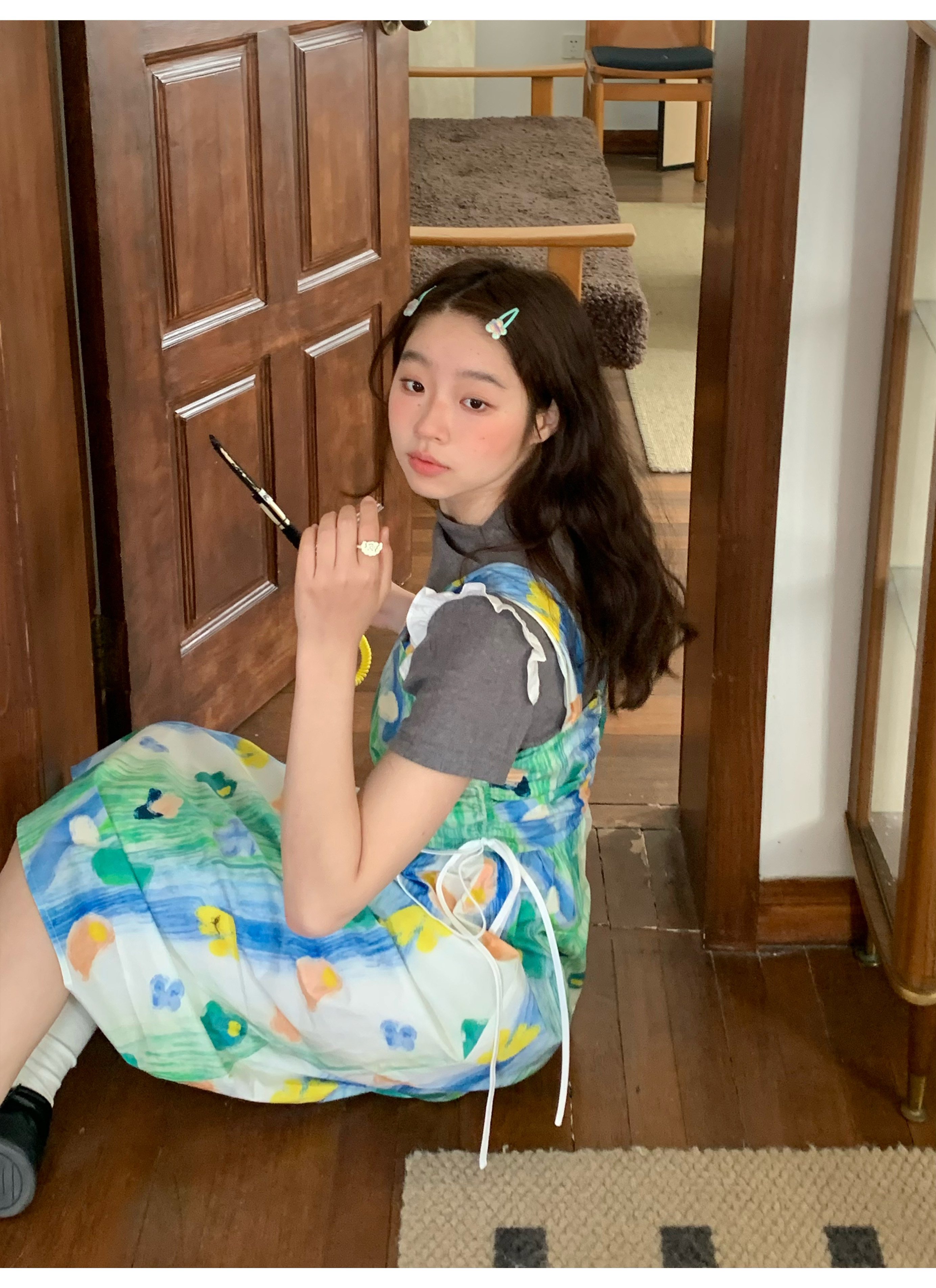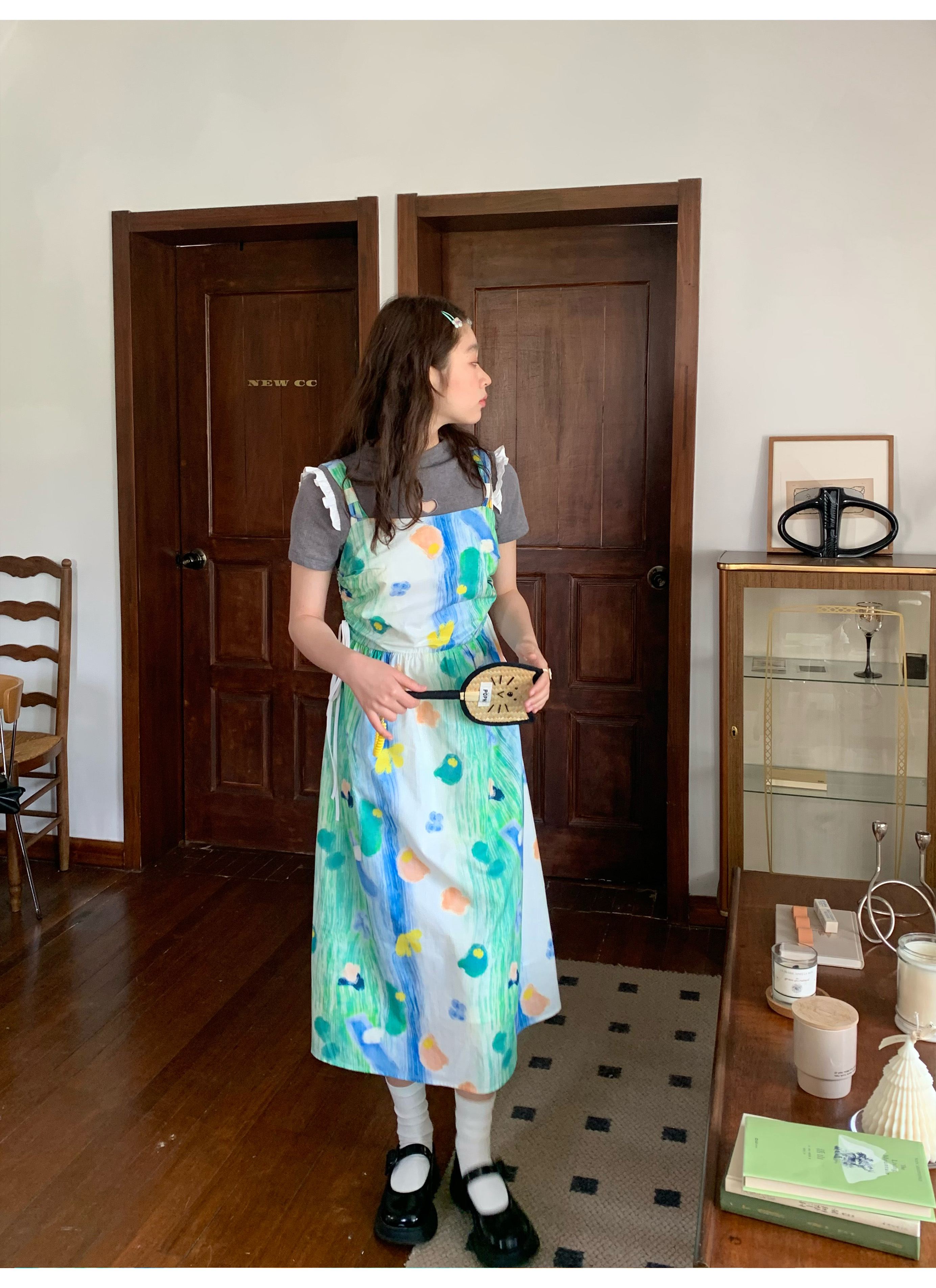 嘿山姥姥 油畫吊帶裙子女夏季新款甜美少女顯瘦抱嬰袋中長裙