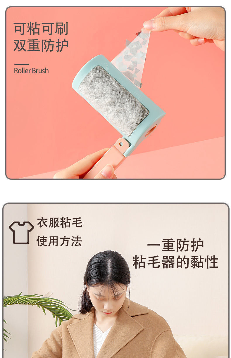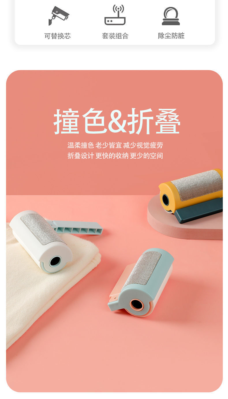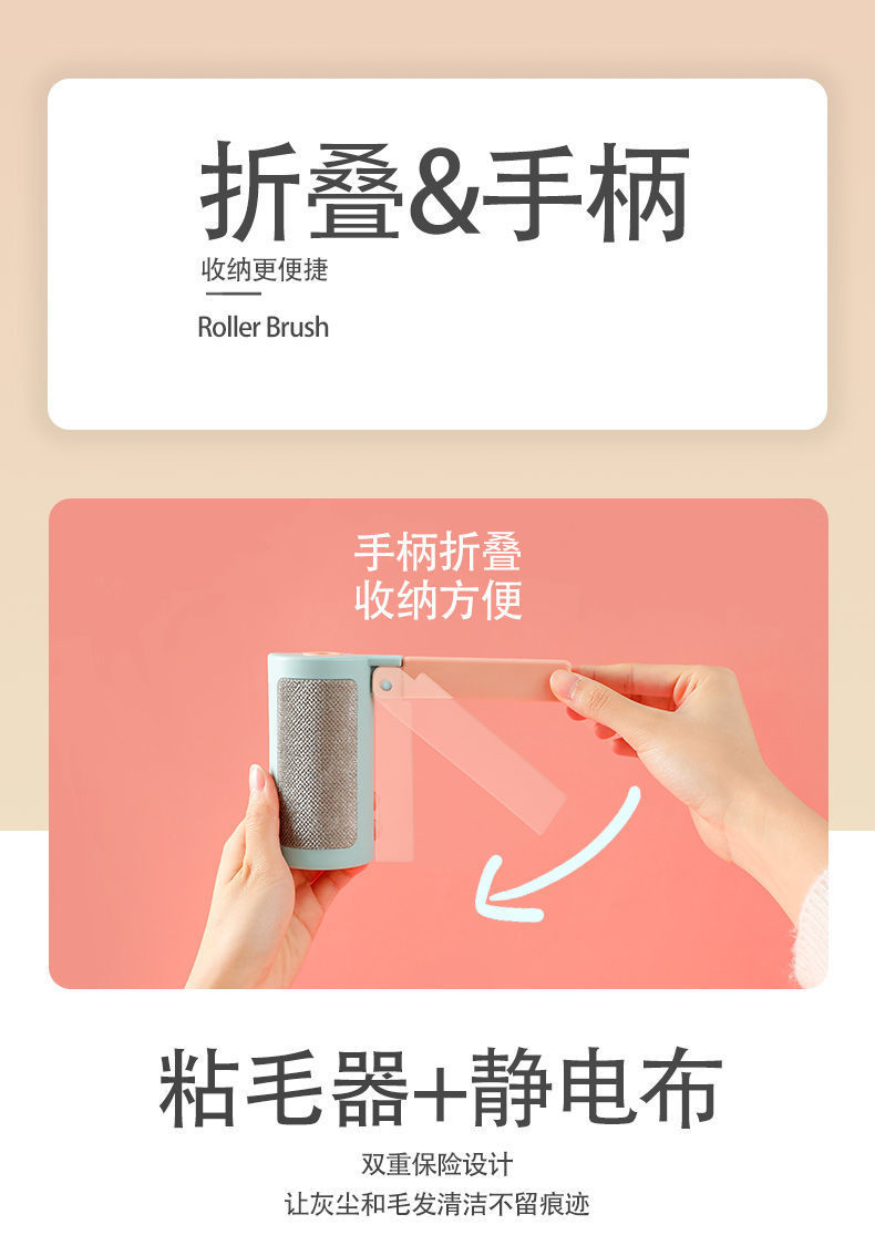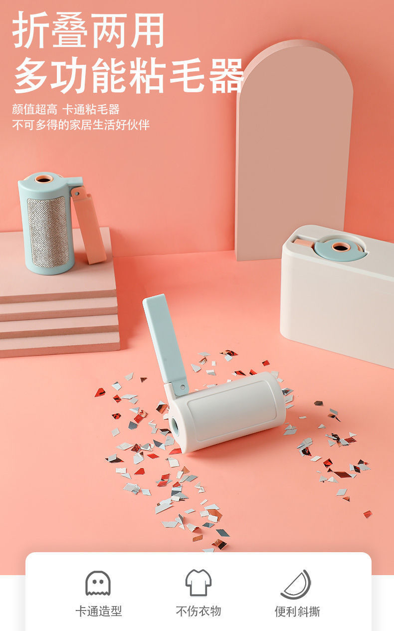 折叠旅行粘毛器多功能可撕式粘尘纸滚刷脱去除毛器衣物衣服滚毛筒