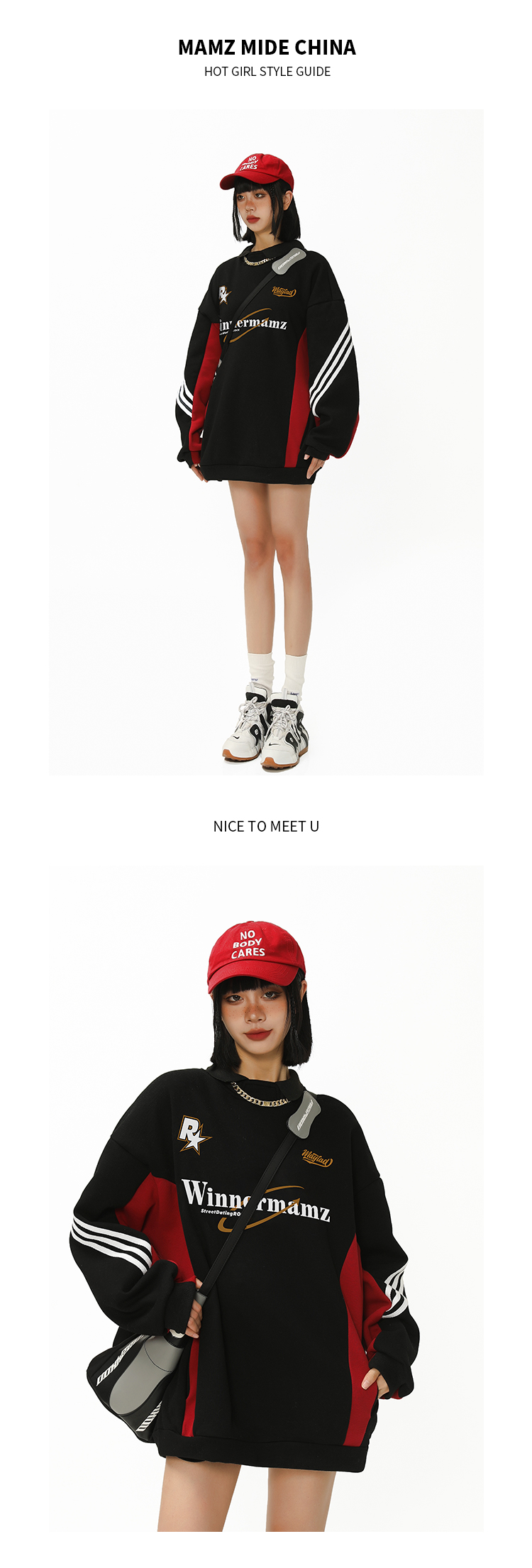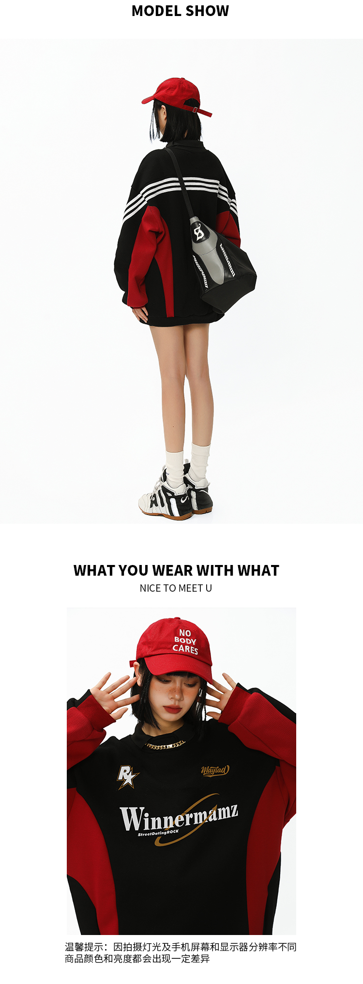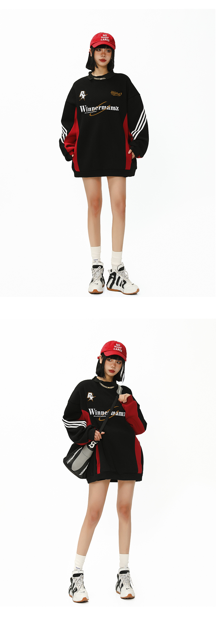 2023新款撞色插肩上衣美式復古衛衣女大尺碼寬鬆外套春秋惡女風穿搭