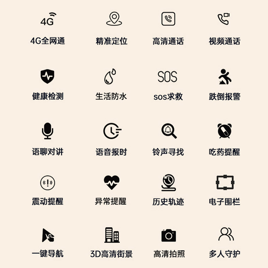 颜色 【黑色】心率血压体温+精准定位+大屏字大声大+S0S报警,【蓝色】心率血压体温+精准定位+大屏字大声大+S0S报警