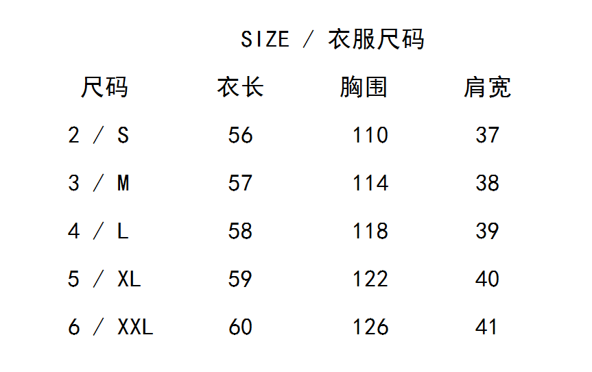 尺碼 2/S,3/M,4/L,5/XL,6/XXL