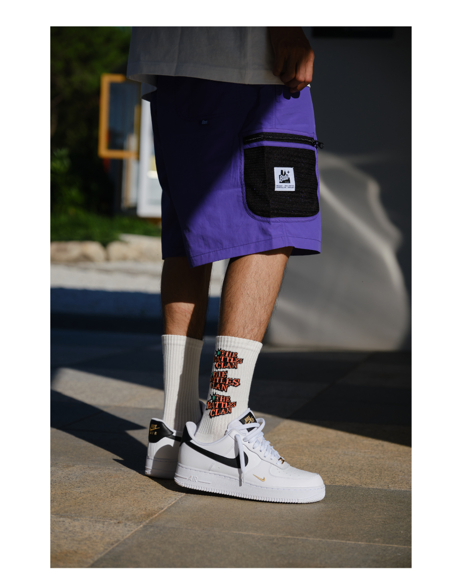 顏色 白色 配套紫色短褲,黑色 配套卡其色短褲,灰色 配套黑色短褲
