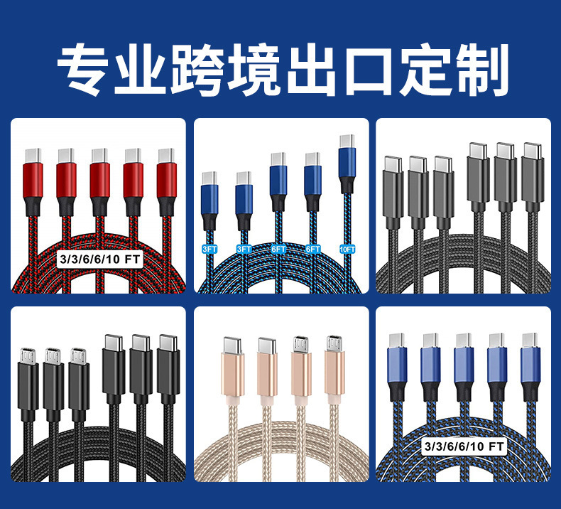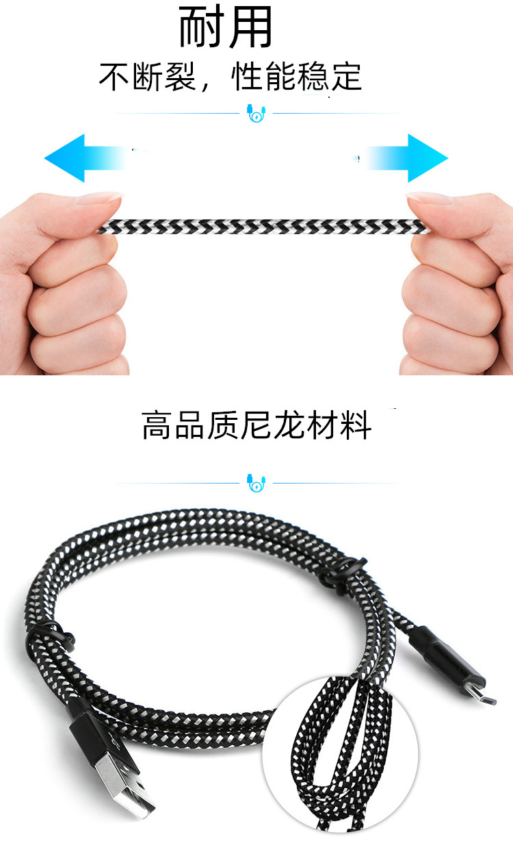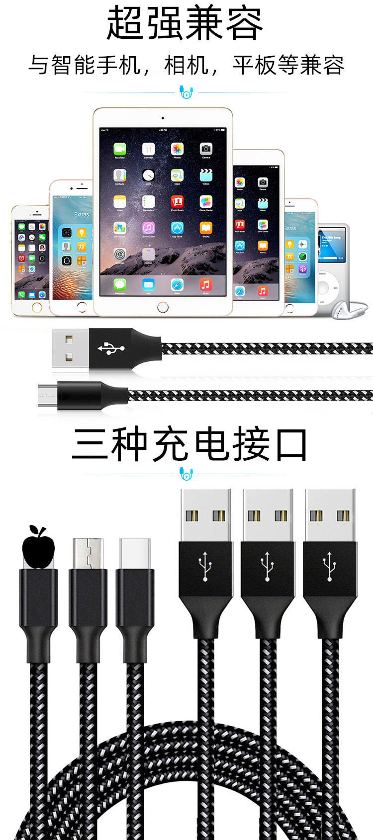 亚马逊款 适用iPhone手机快充数据线线尼龙2米编织线 1/3米数据线
