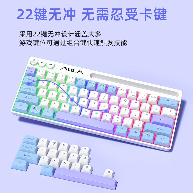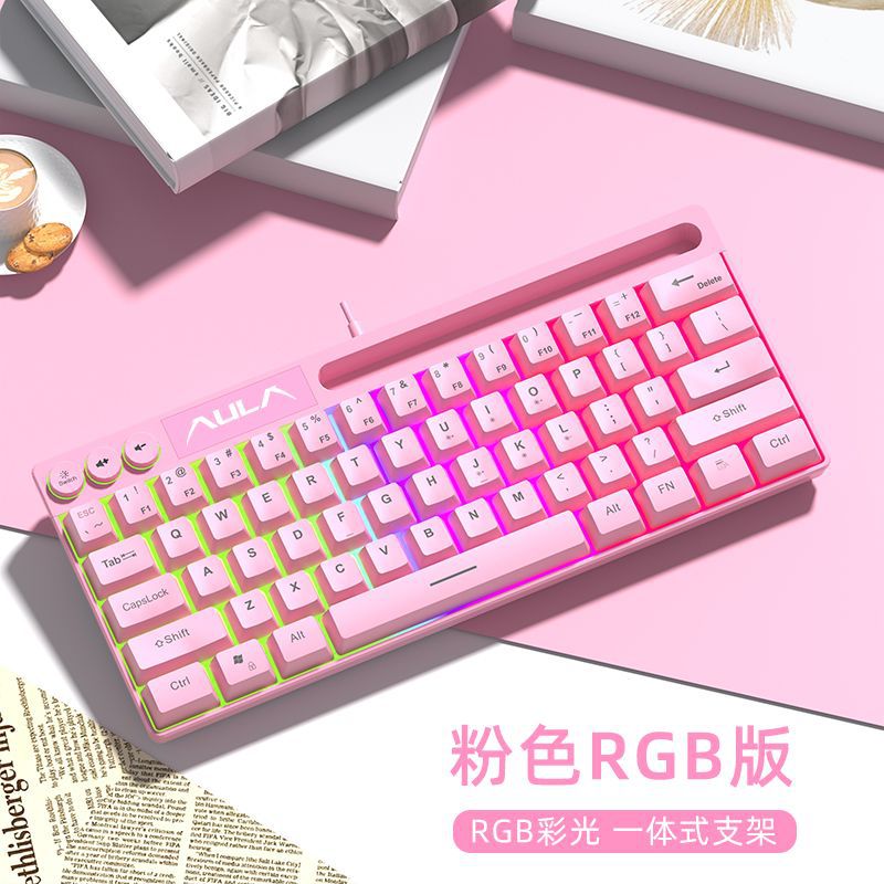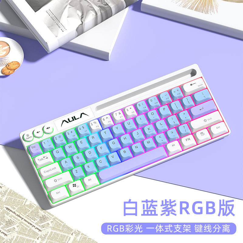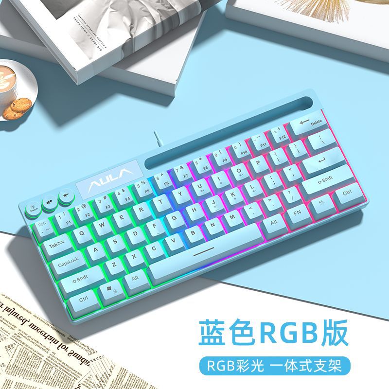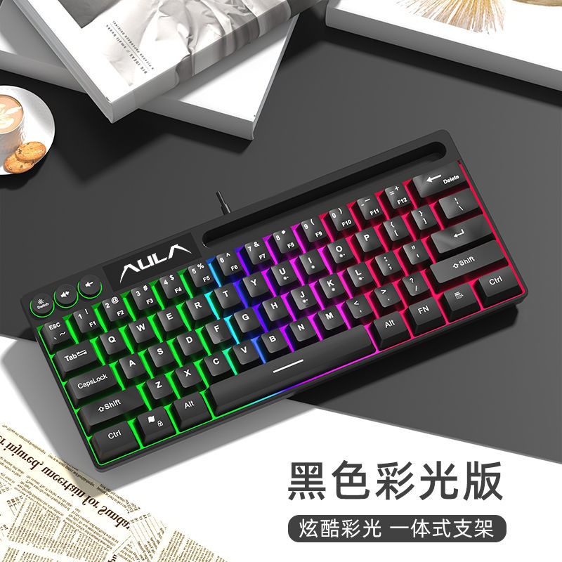 狼蛛F3061键盘有线拼色电竞游戏台式笔记本办公小型便携键盘64键