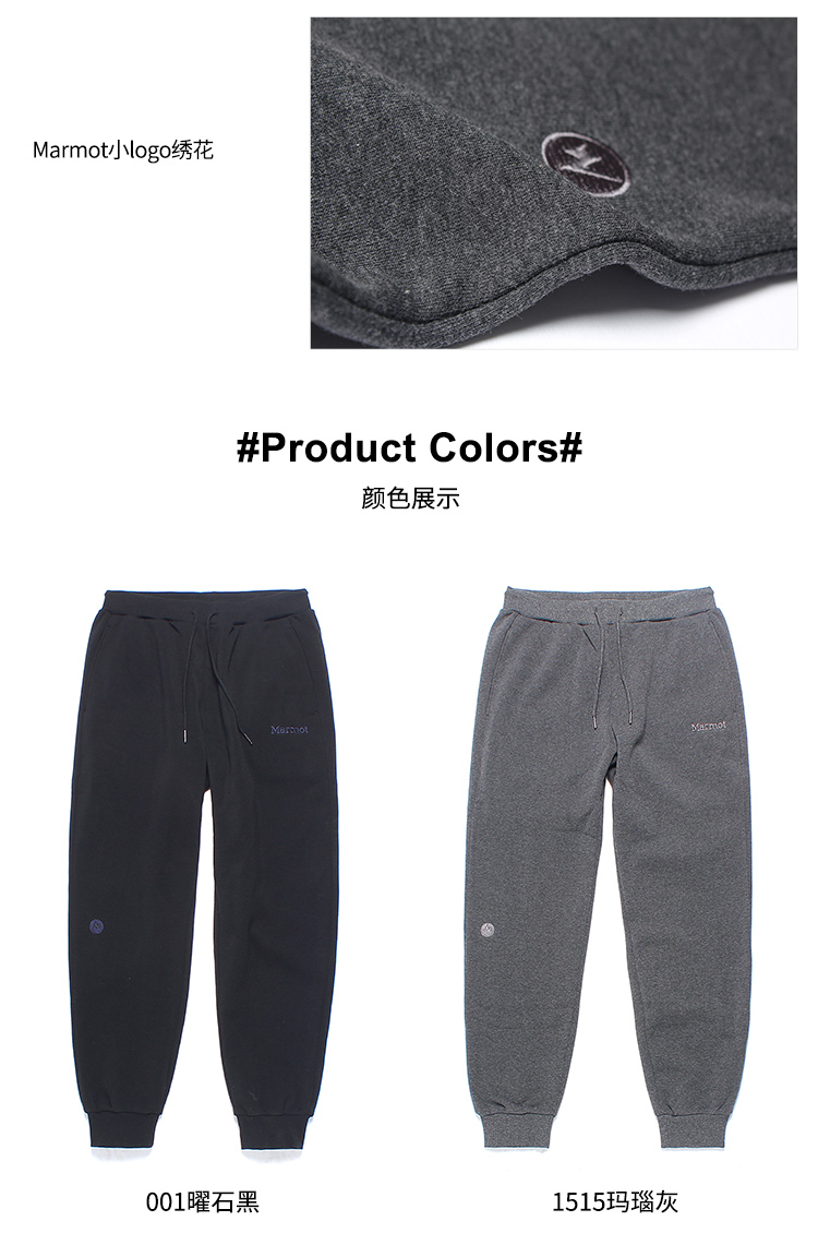 Marmot土撥鼠戶外運動彈力透氣舒適簡約男士束腳衛褲厚款休閒長褲