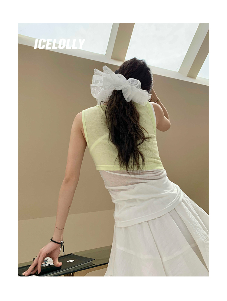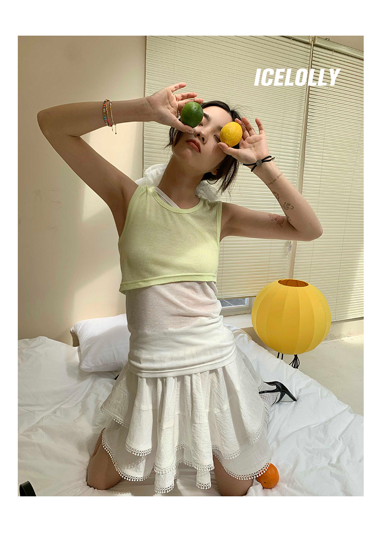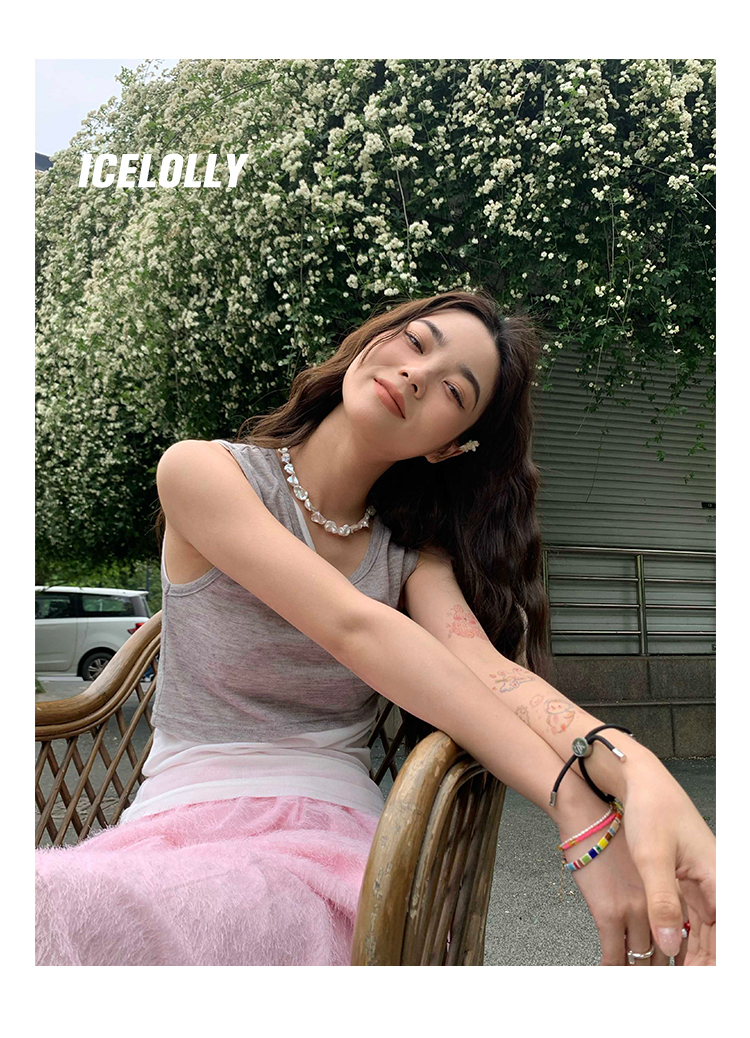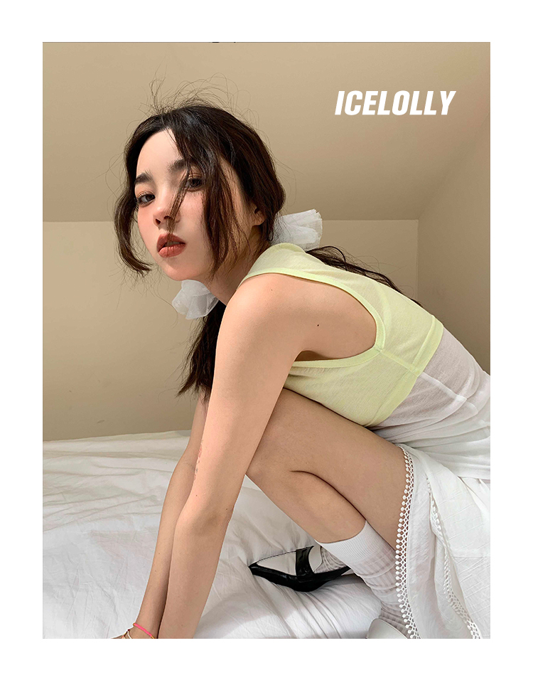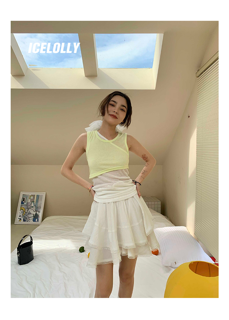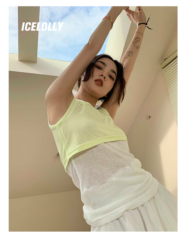 【69元福利款】ICELOLLY假兩件拼色吊帶背心女夏外穿內搭無袖上衣
