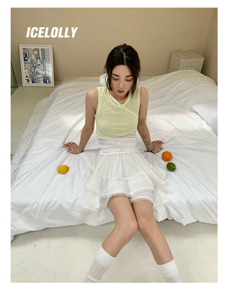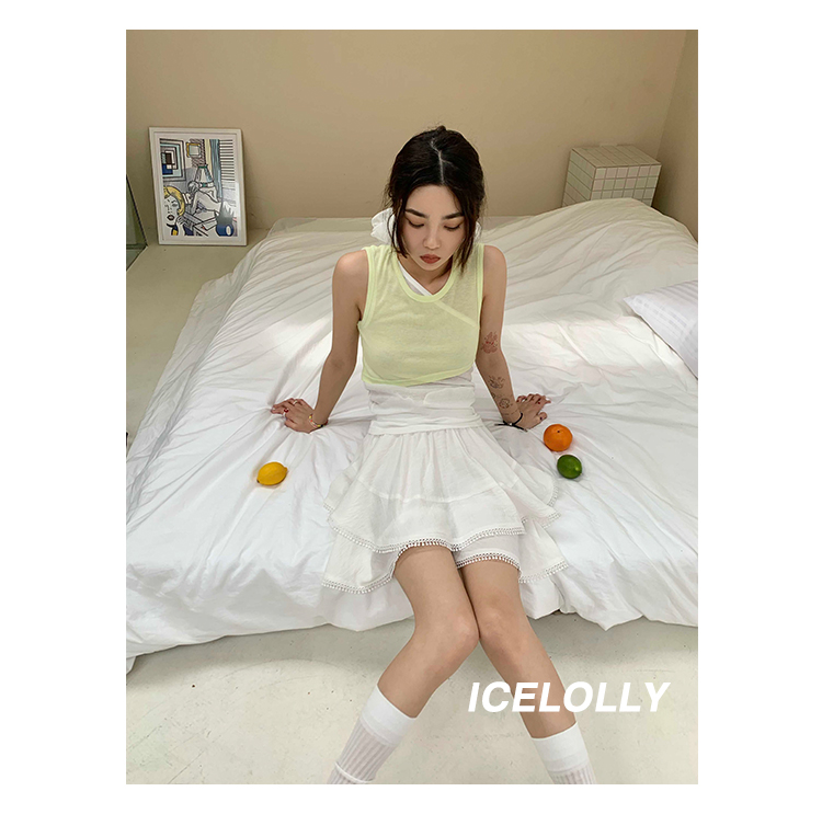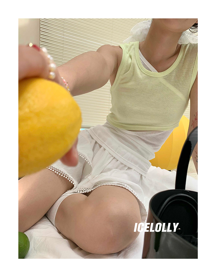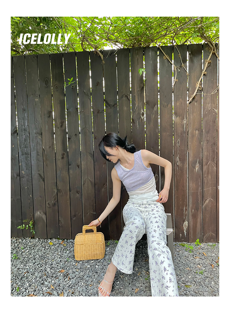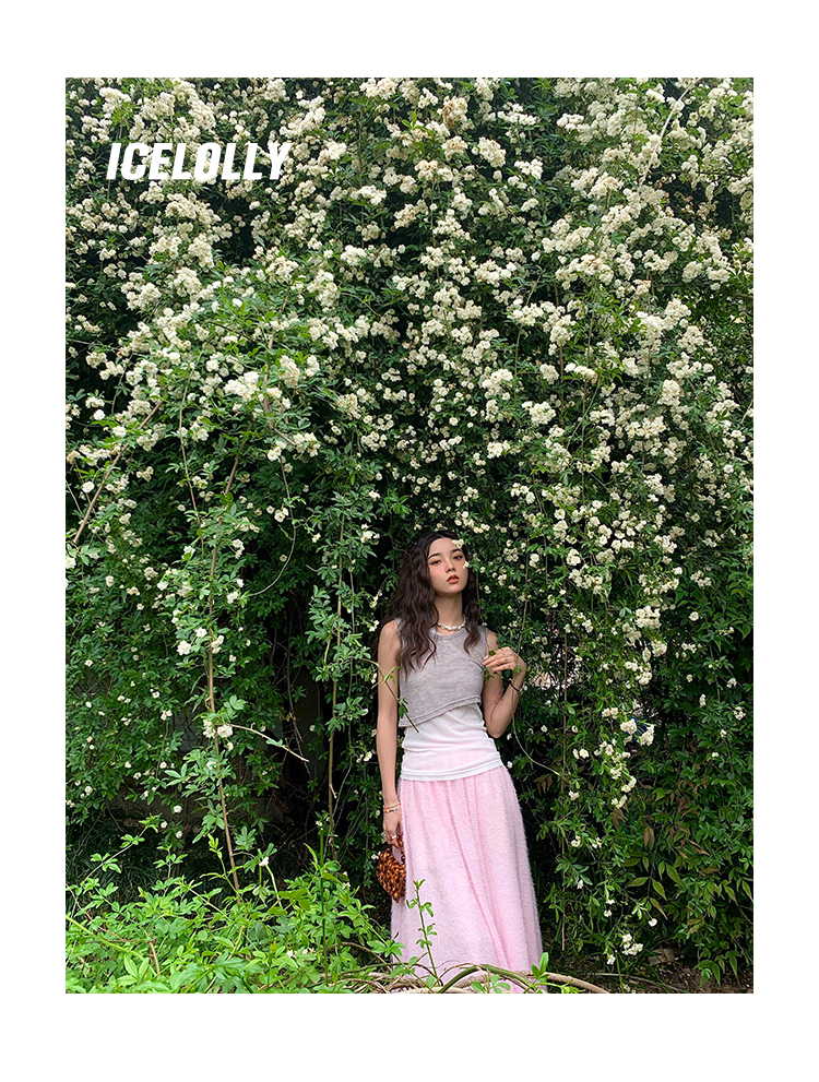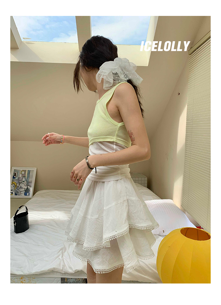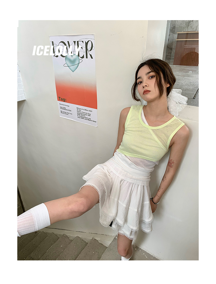 【69元福利款】ICELOLLY假兩件拼色吊帶背心女夏外穿內搭無袖上衣