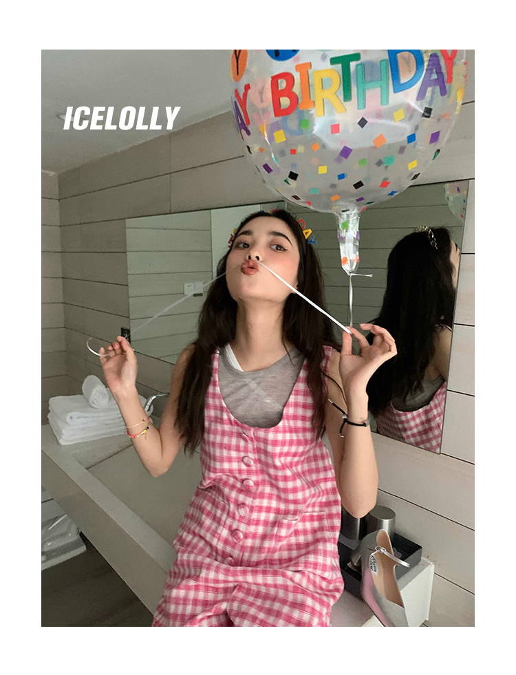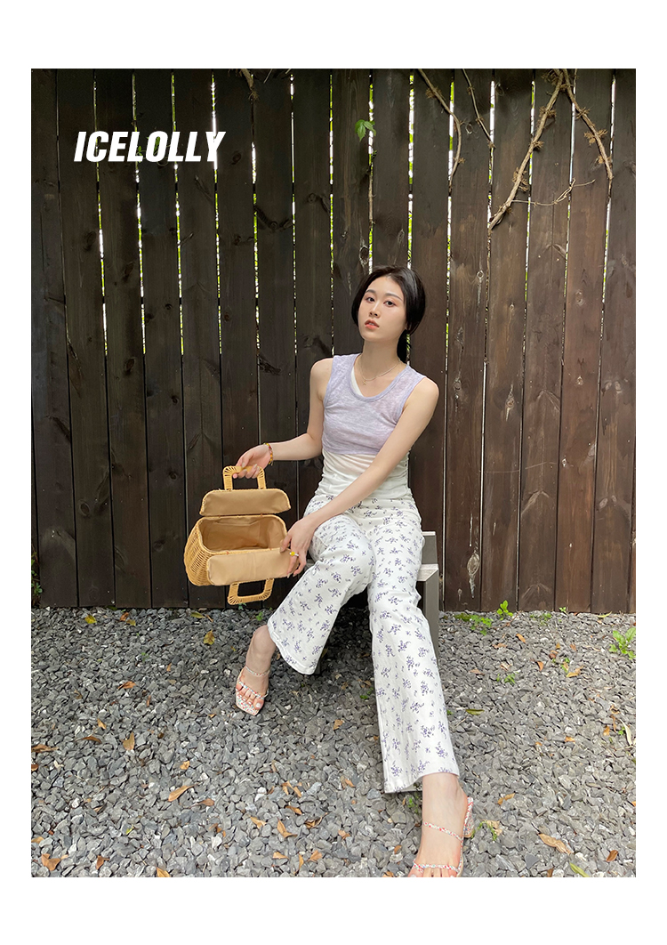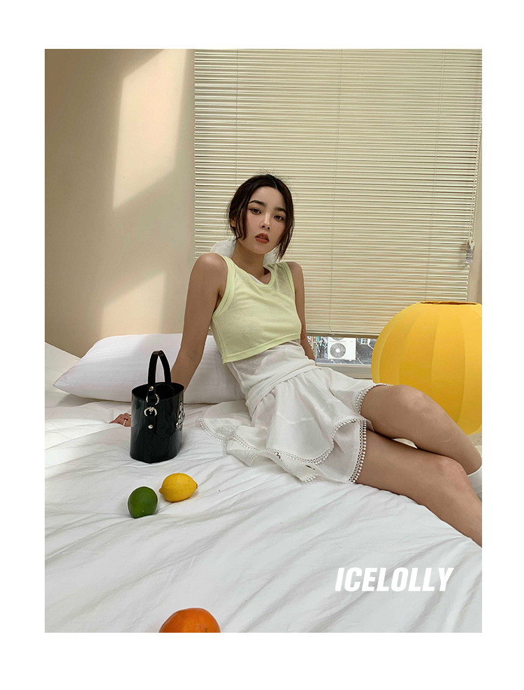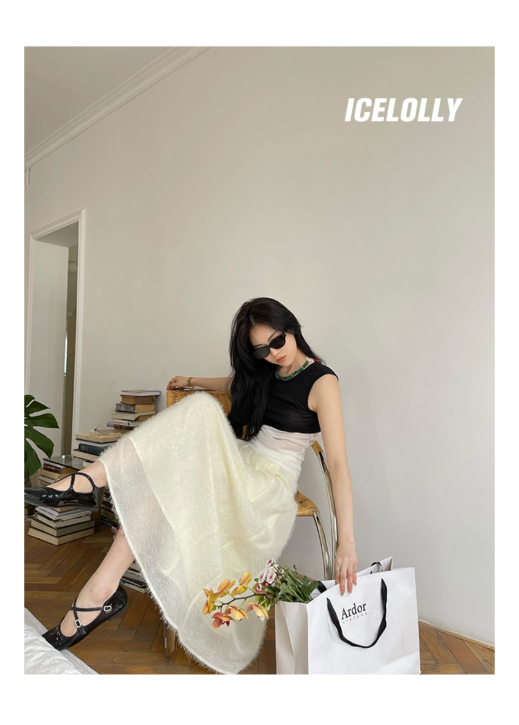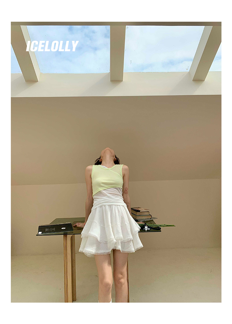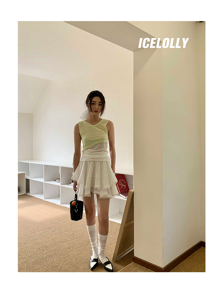 【69元福利款】ICELOLLY假兩件拼色吊帶背心女夏外穿內搭無袖上衣