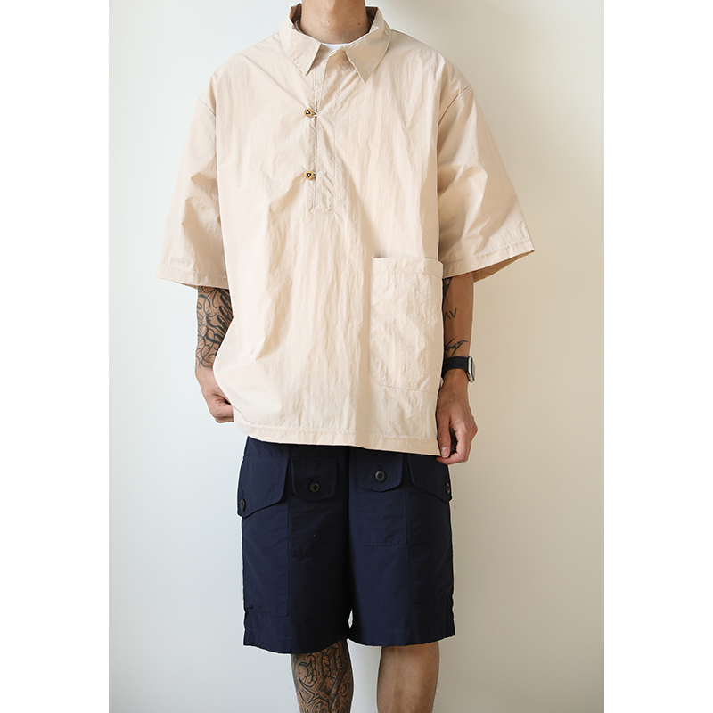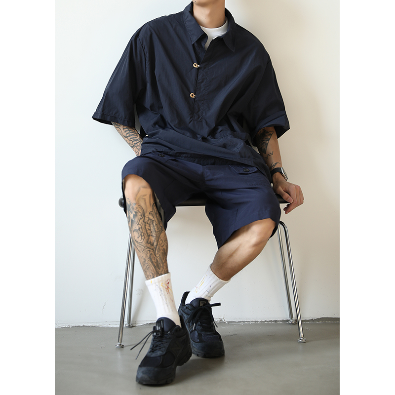 夏季新款短袖polo衫男寬鬆薄款速乾大口袋日系復古休閒百搭五分袖
