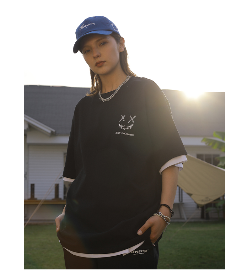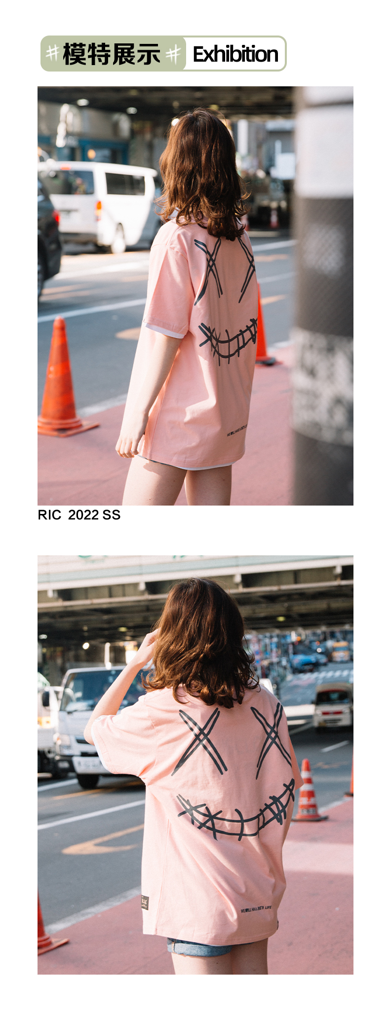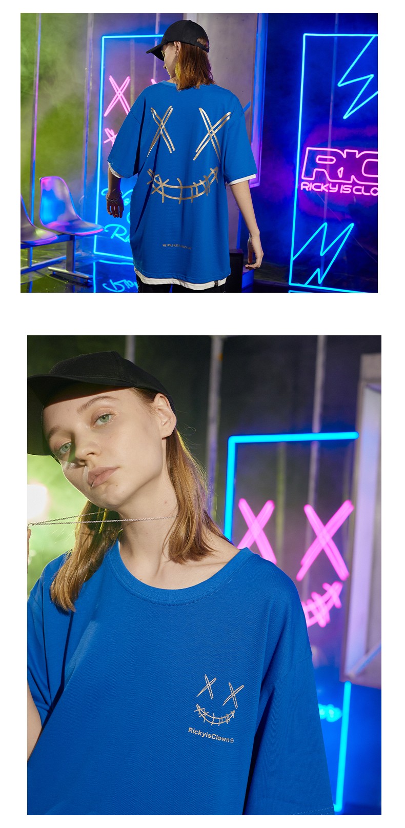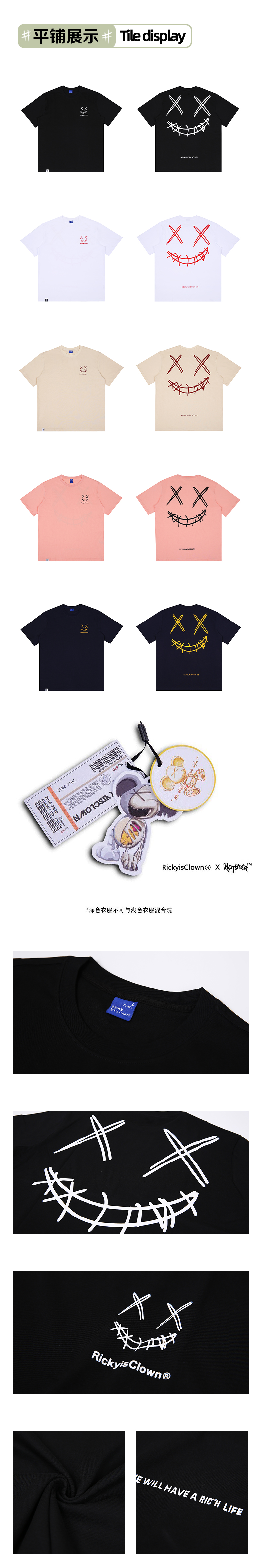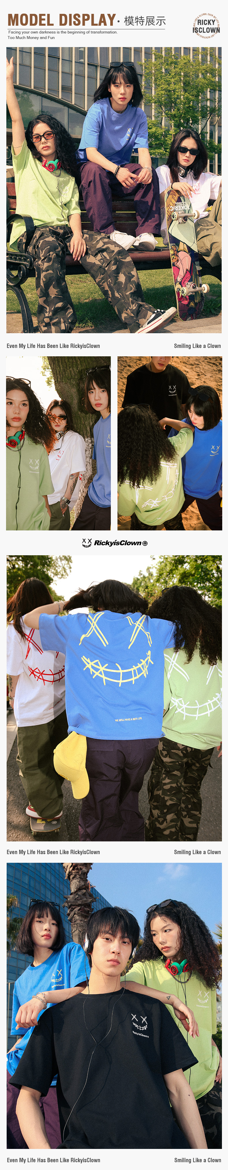 RickyisClownRiC小醜 膠漿印撕裂笑臉短袖t恤男情侶裝國潮牌夏裝
