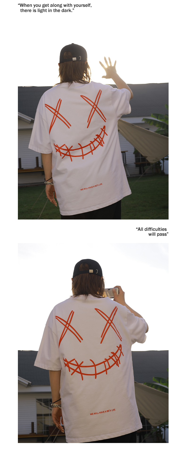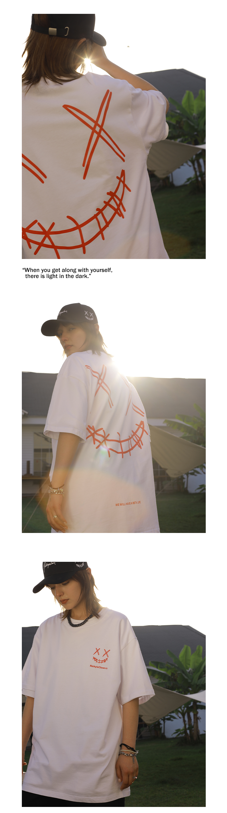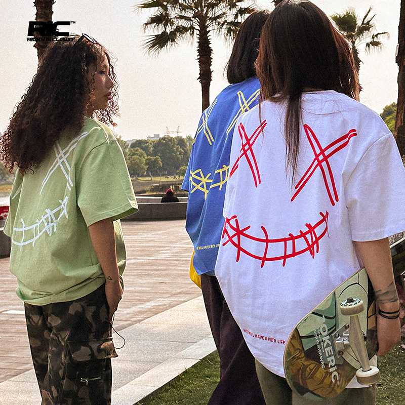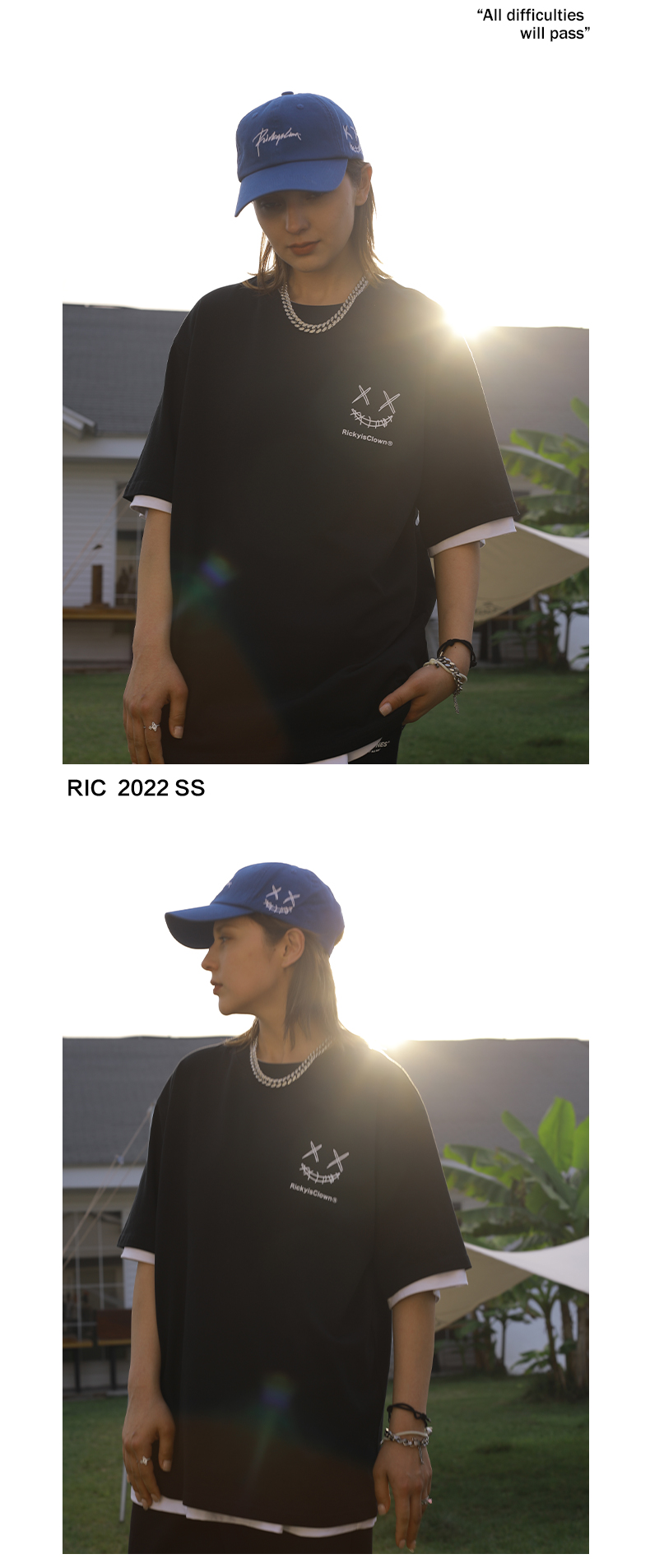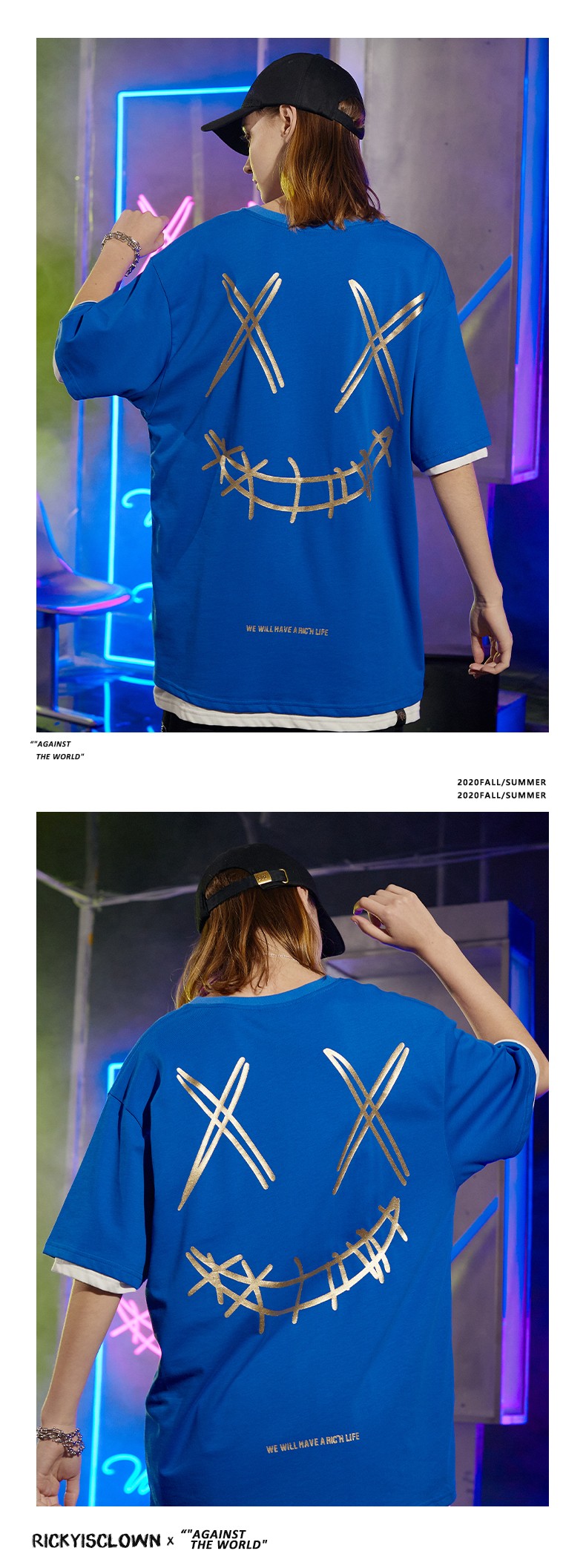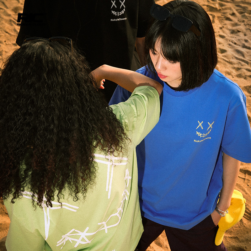 RickyisClownRiC小醜 膠漿印撕裂笑臉短袖t恤男情侶裝國潮牌夏裝