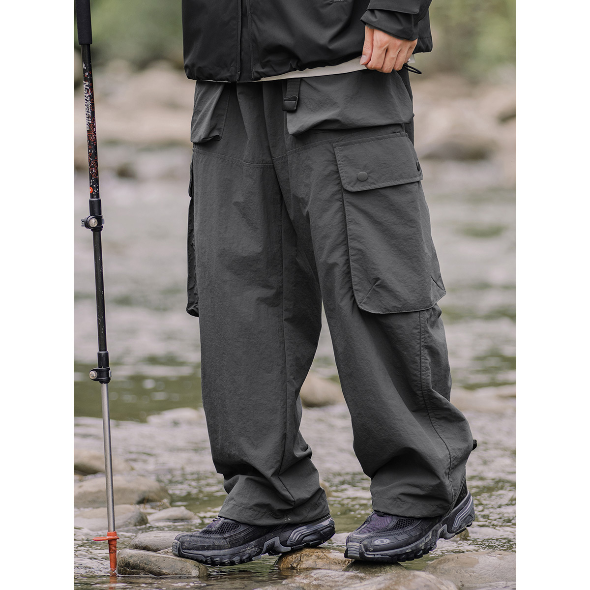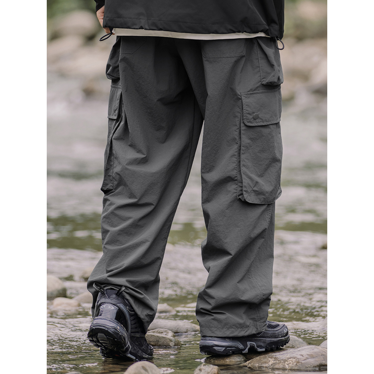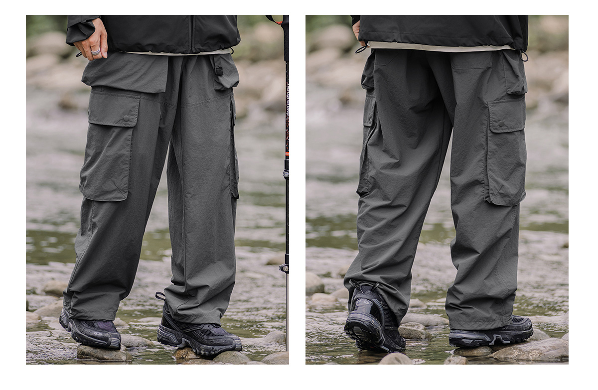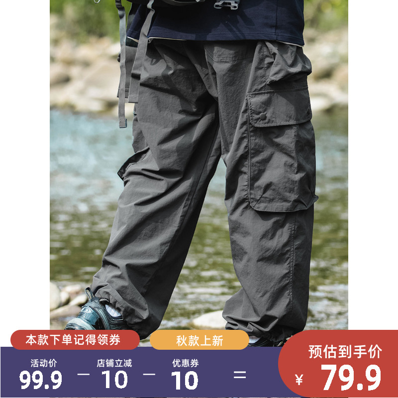 OW線上商店 男秋季山系戶外防潑水機能工裝褲 大口袋日系休閒褲潮