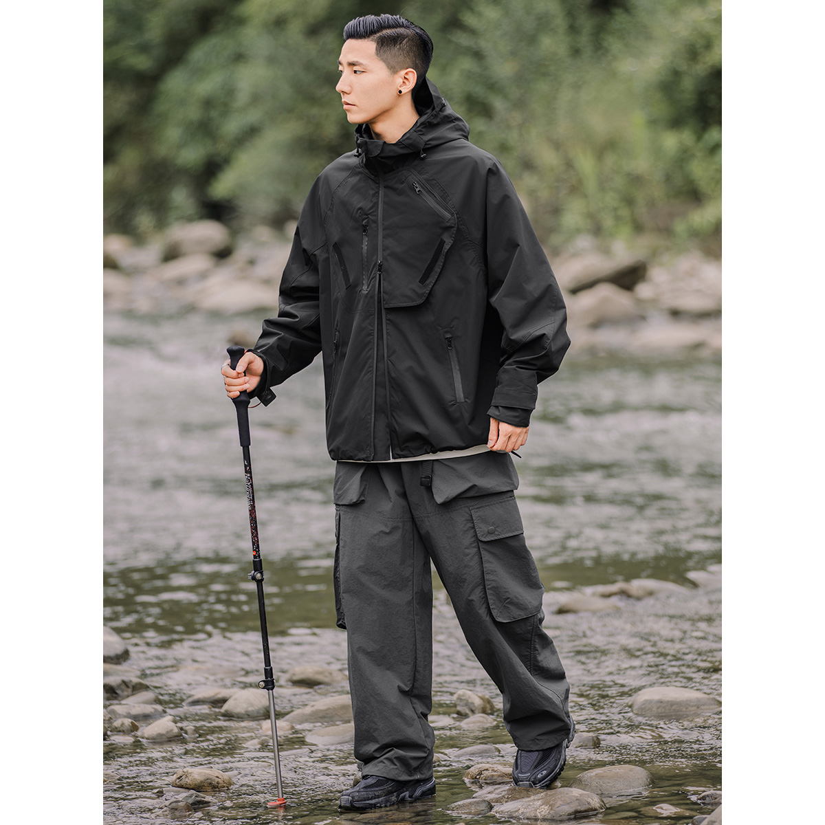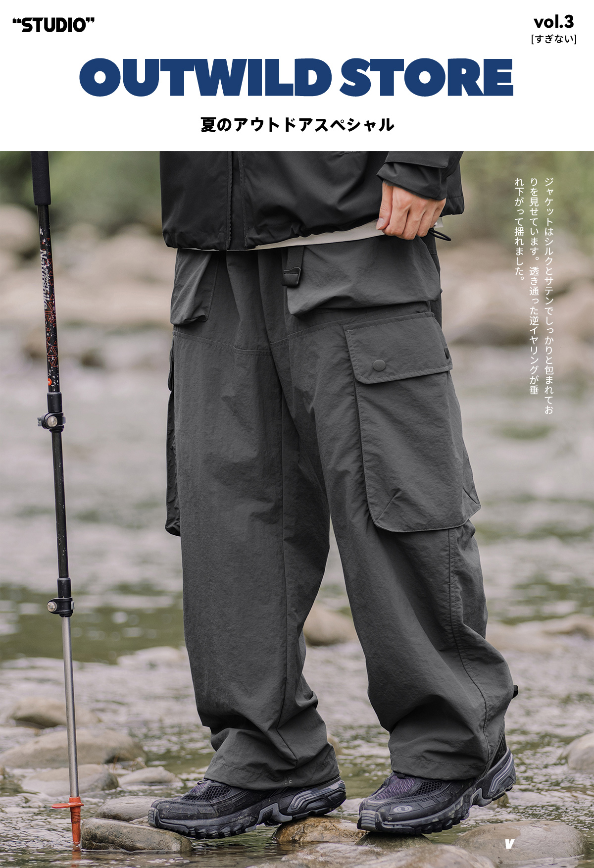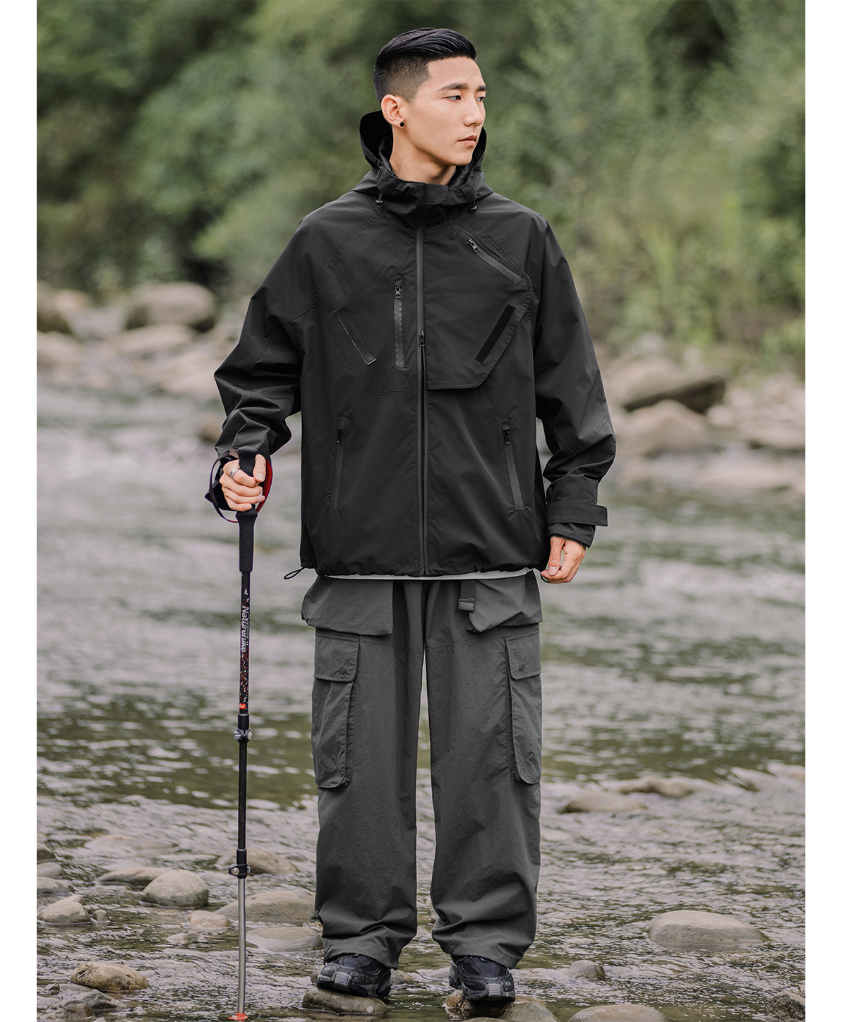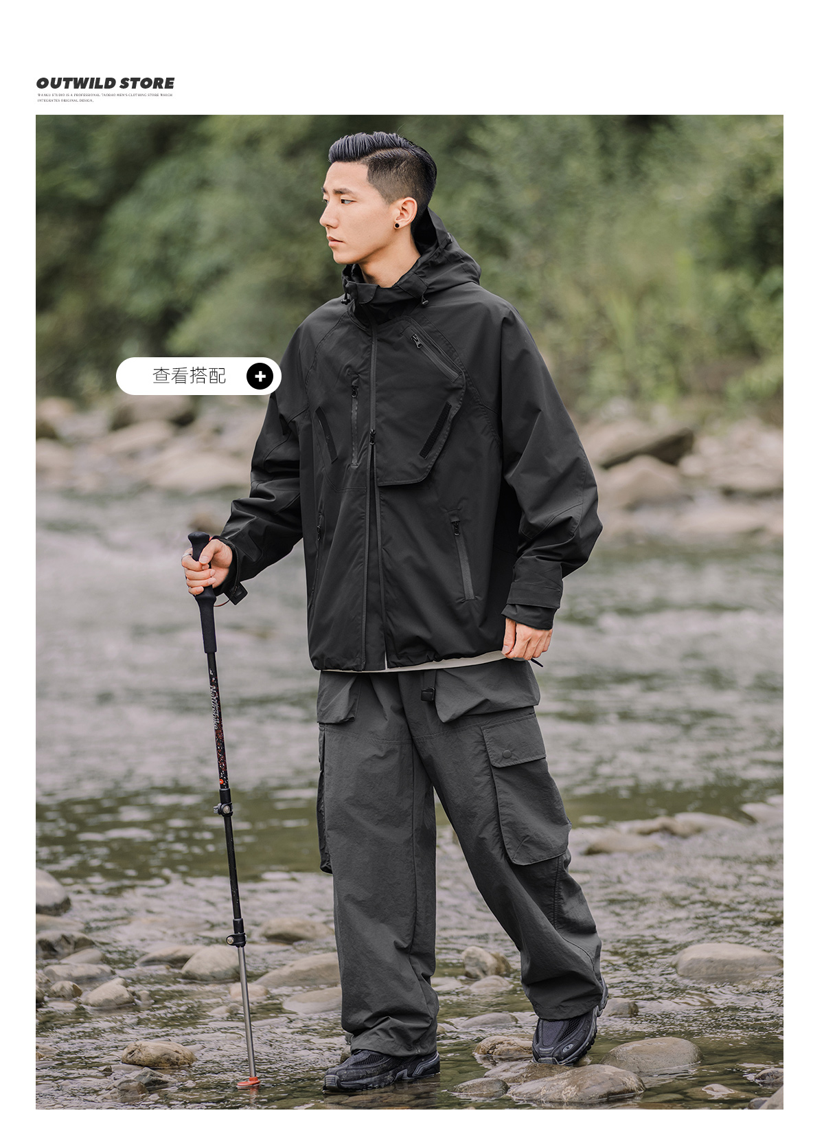 OW線上商店 男秋季山系戶外防潑水機能工裝褲 大口袋日系休閒褲潮