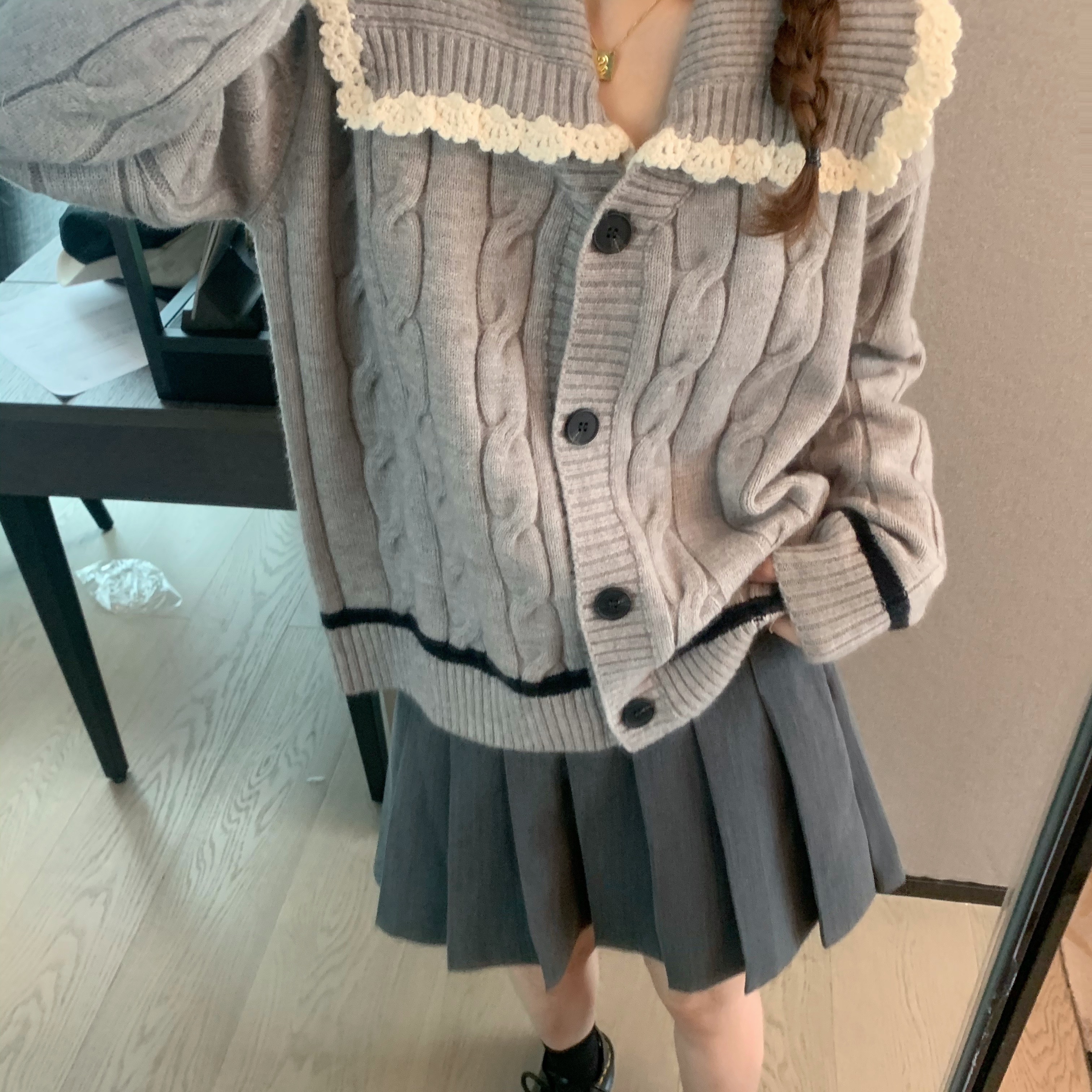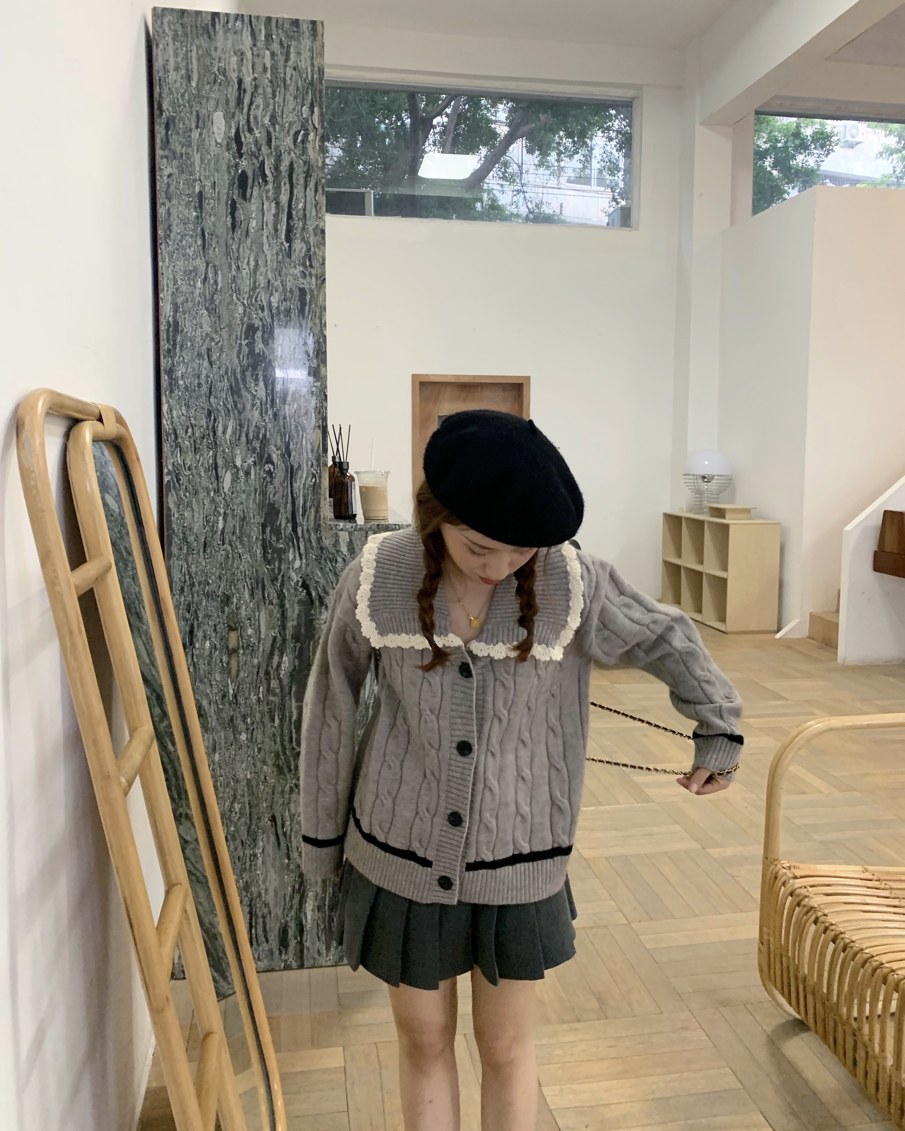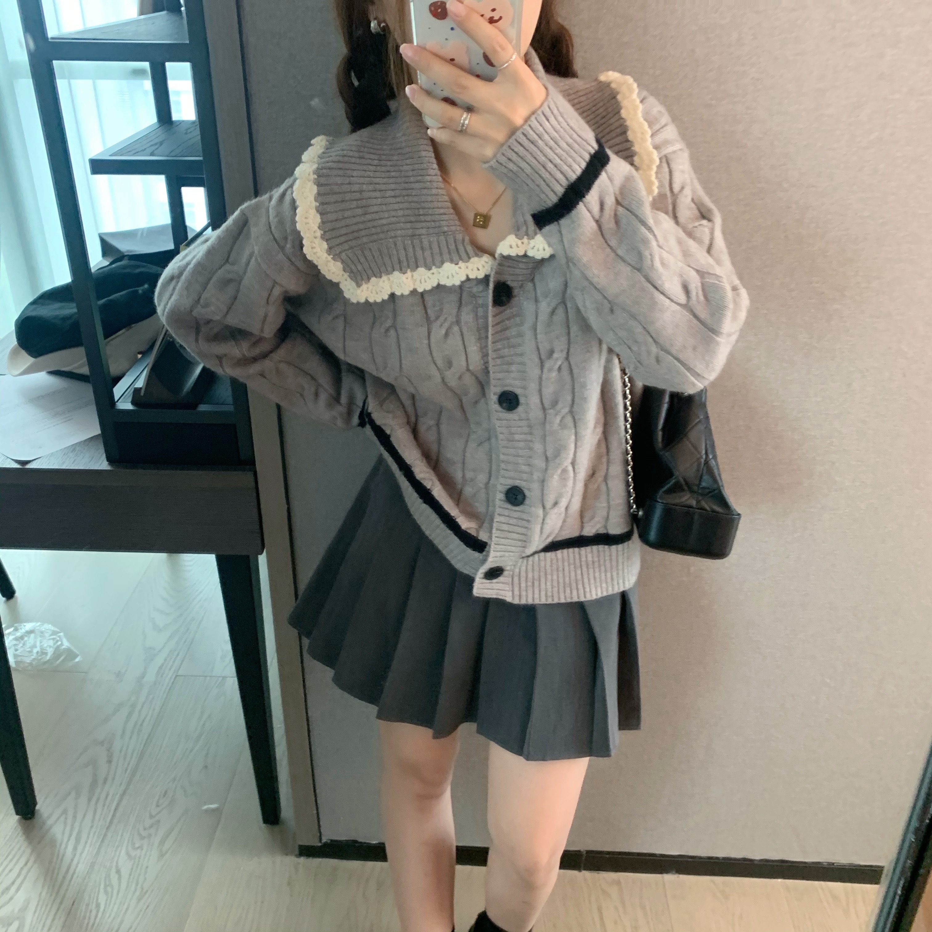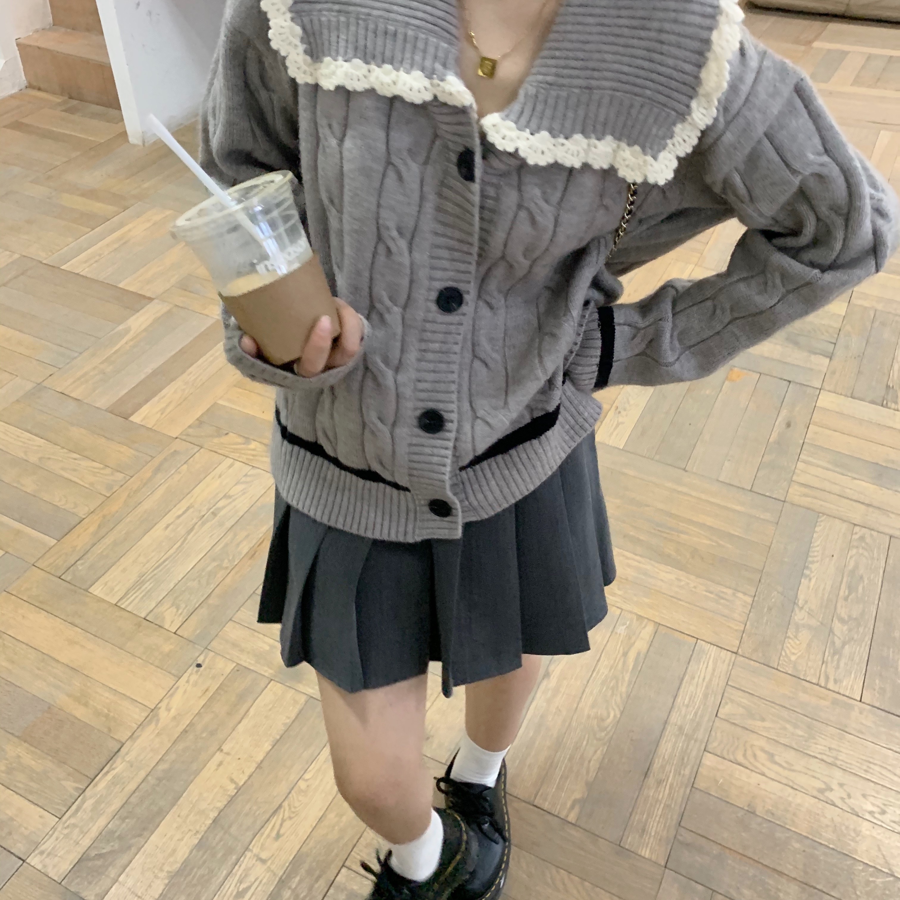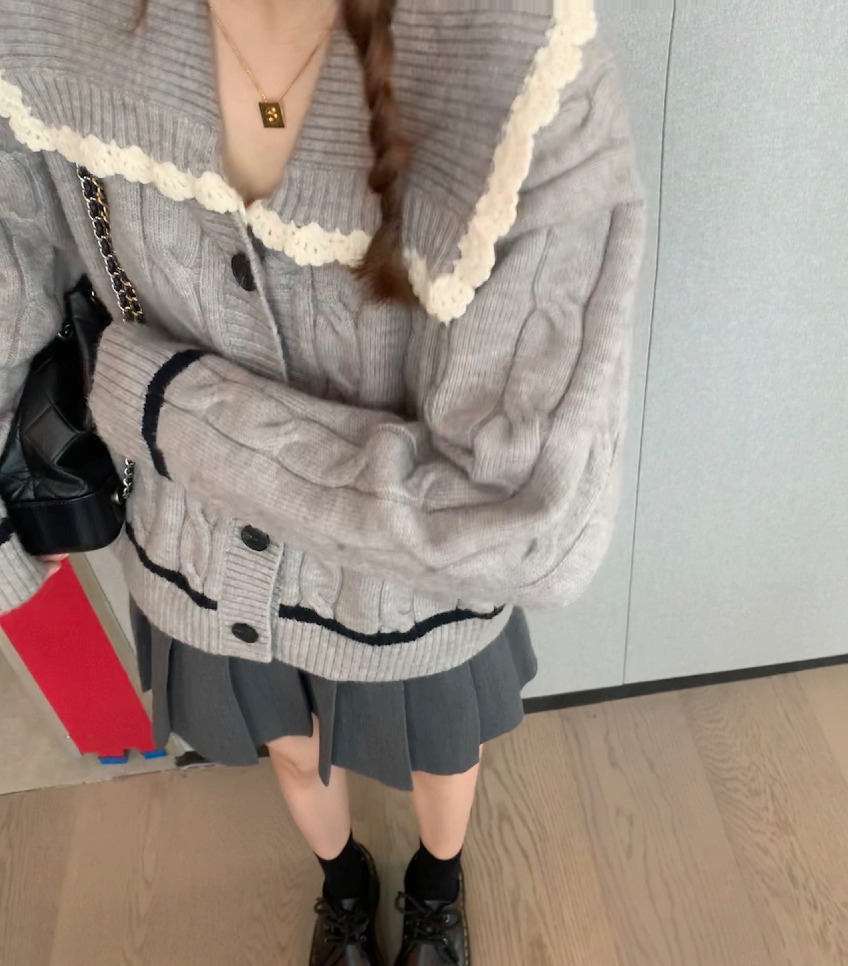 选的是耐看又气质的灰色  搭配同色系灰色百褶裙超级减龄