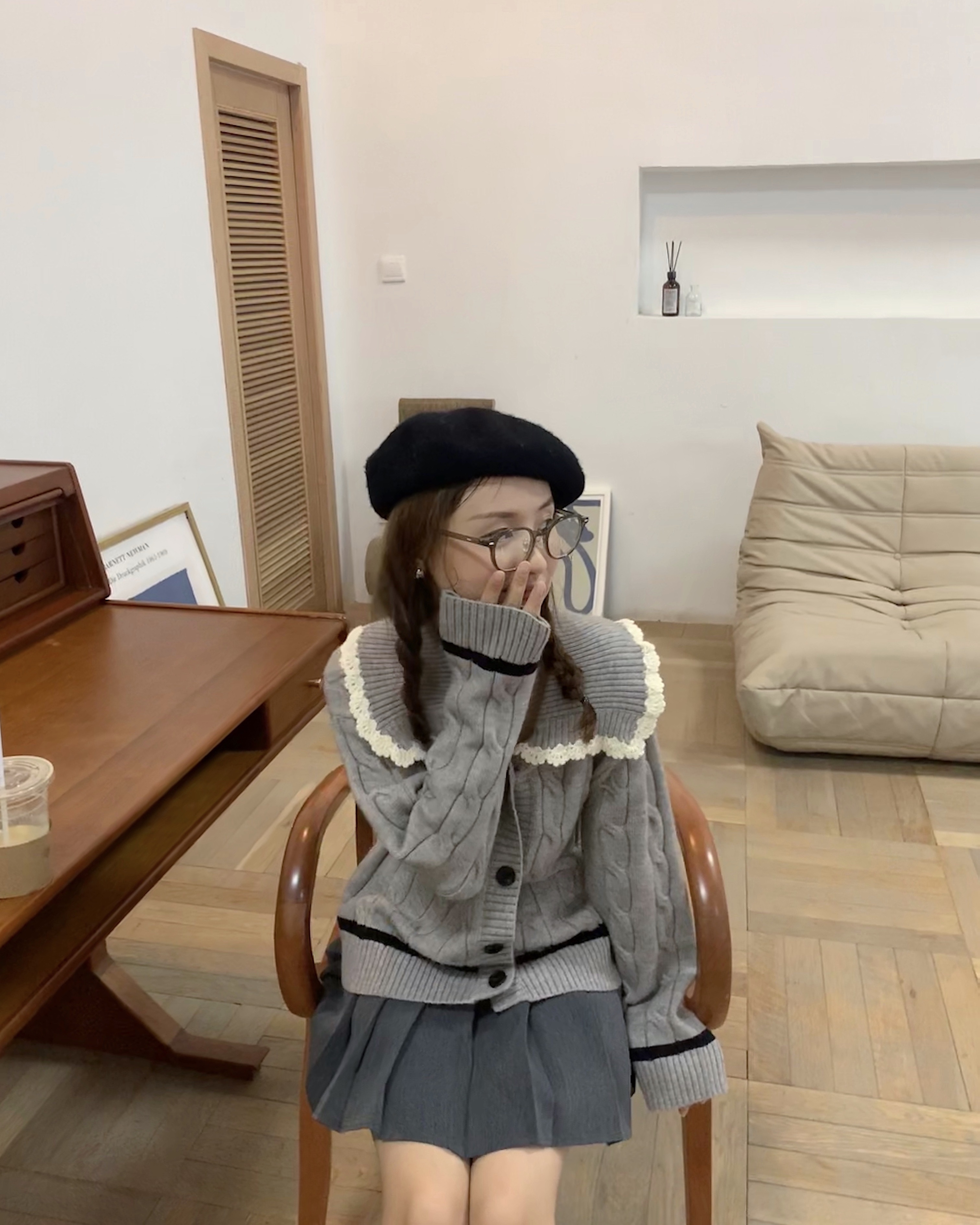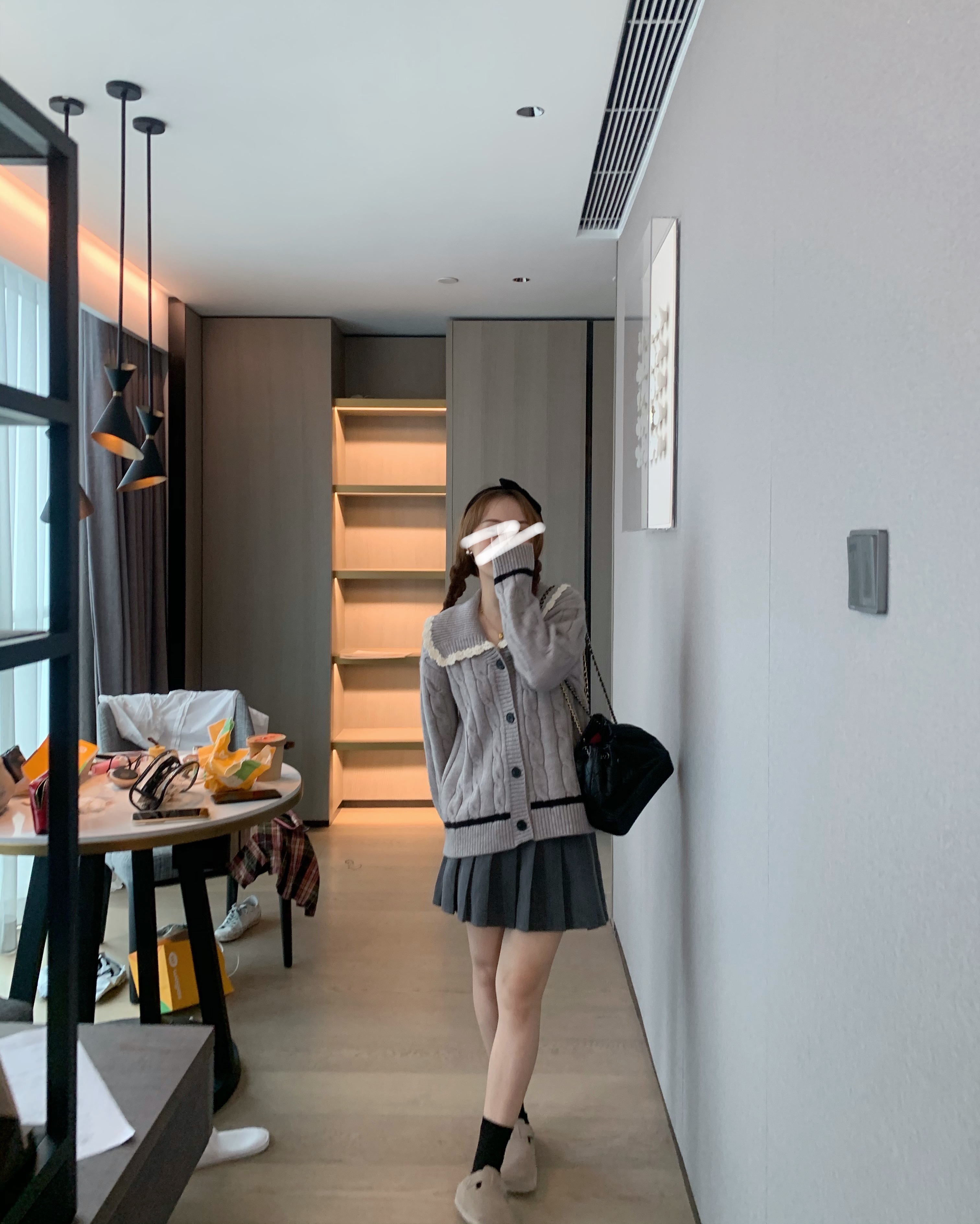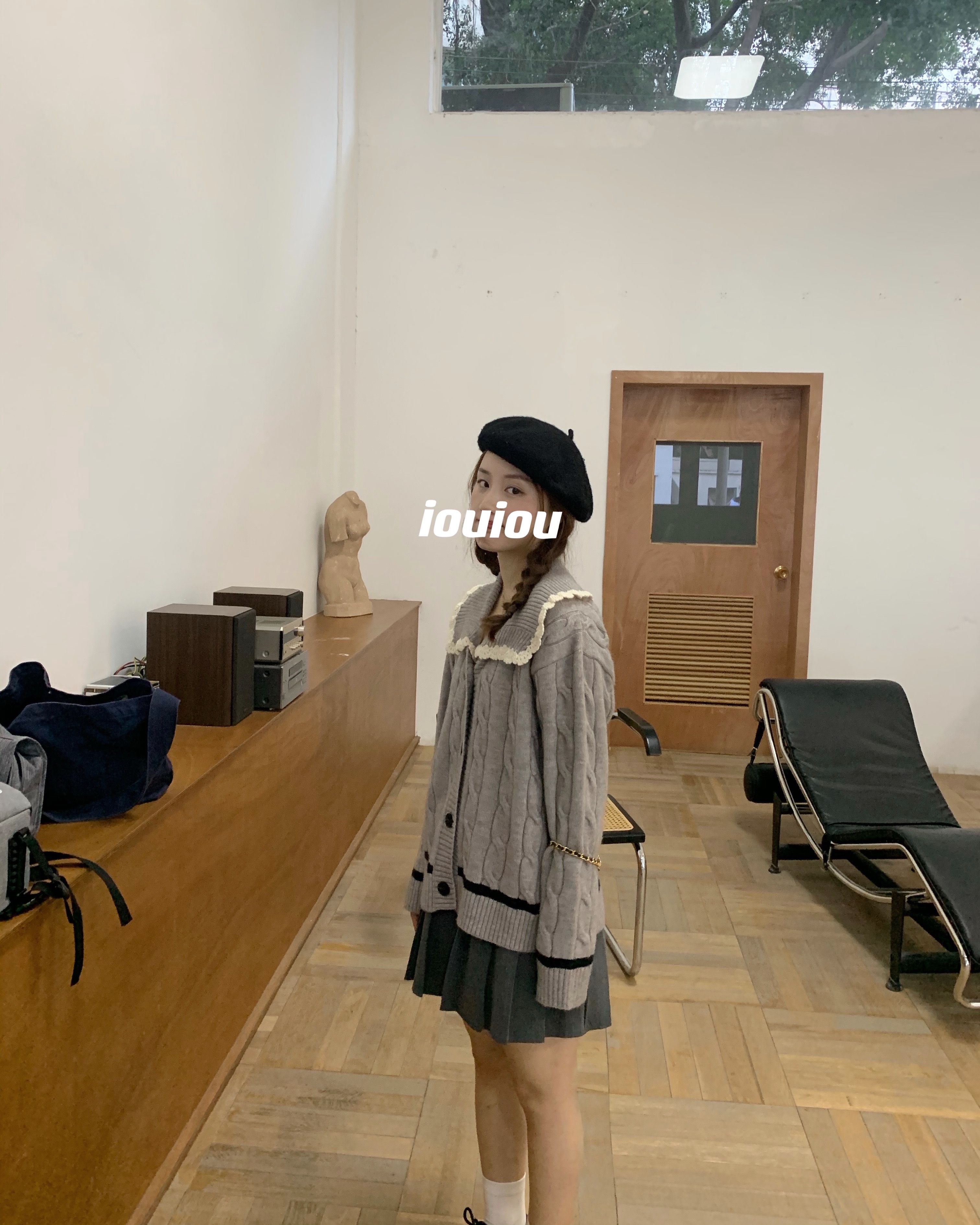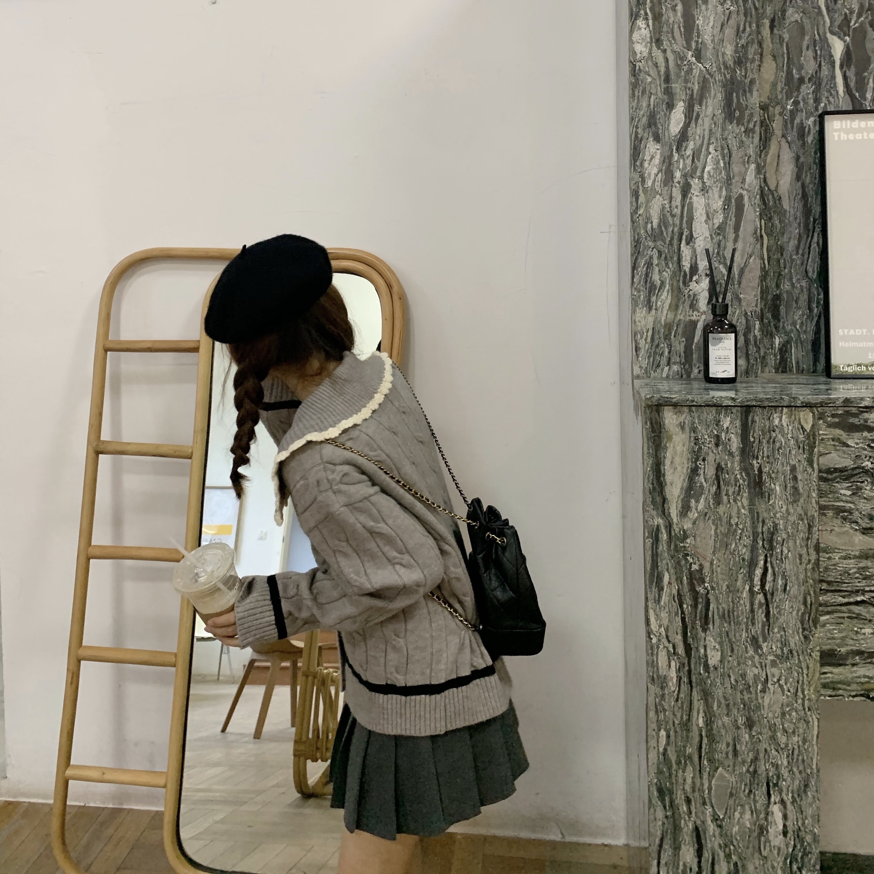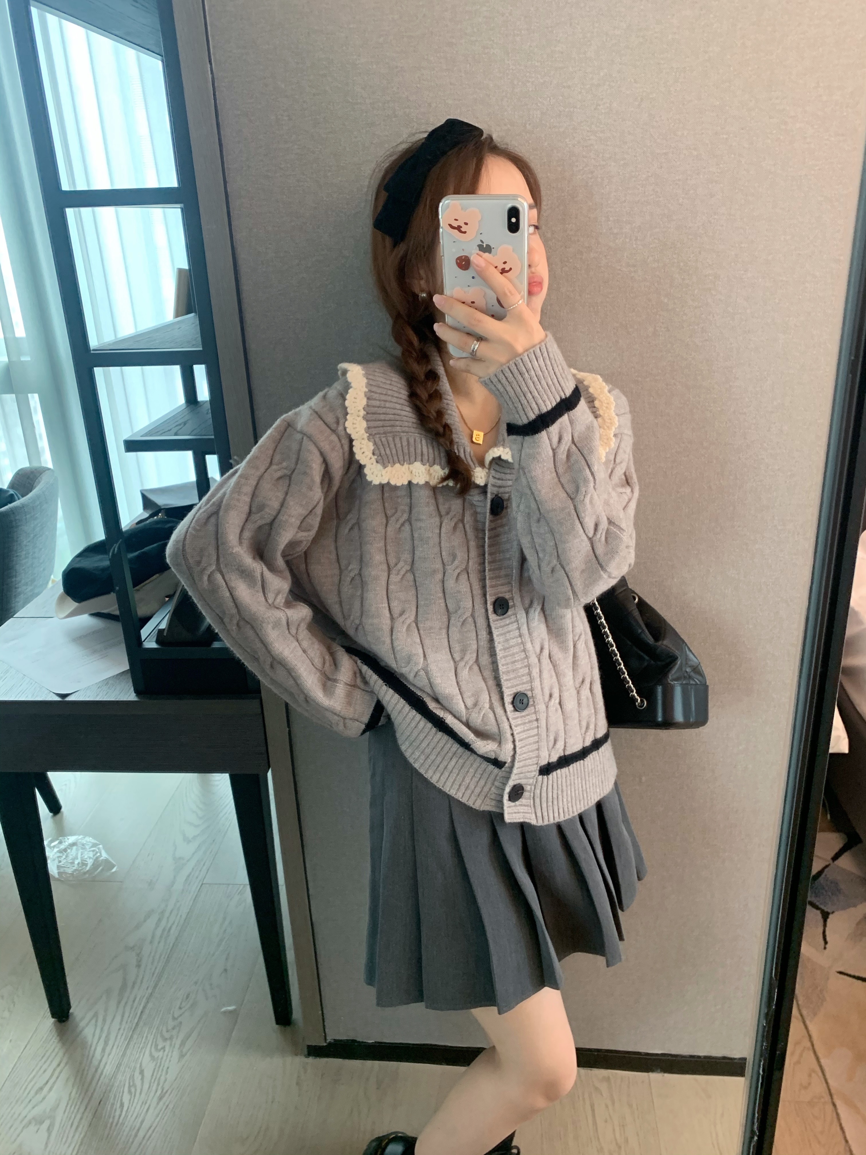 选的是耐看又气质的灰色  搭配同色系灰色百褶裙超级减龄