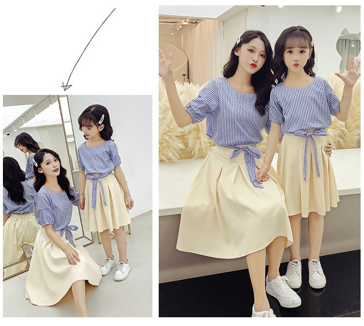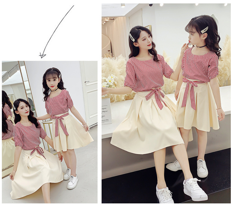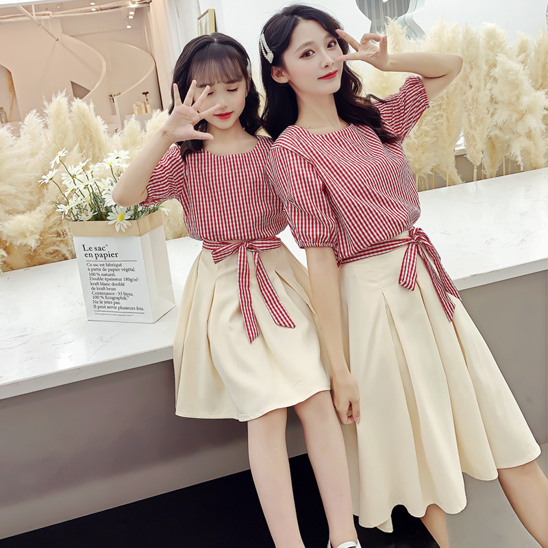 2023夏季女童时尚母女套装夏韩版亲子装中大童休闲短袖裙子套装潮