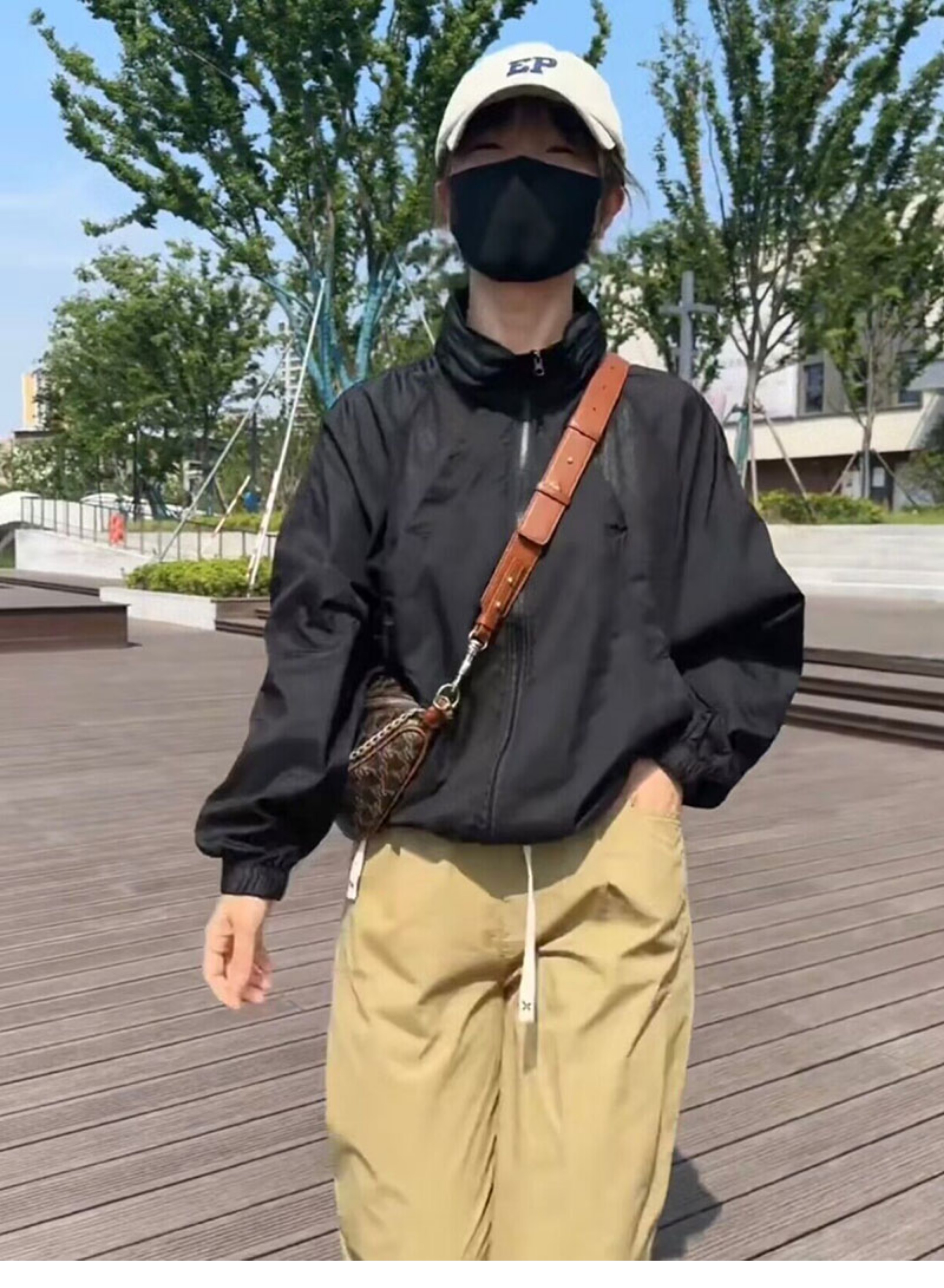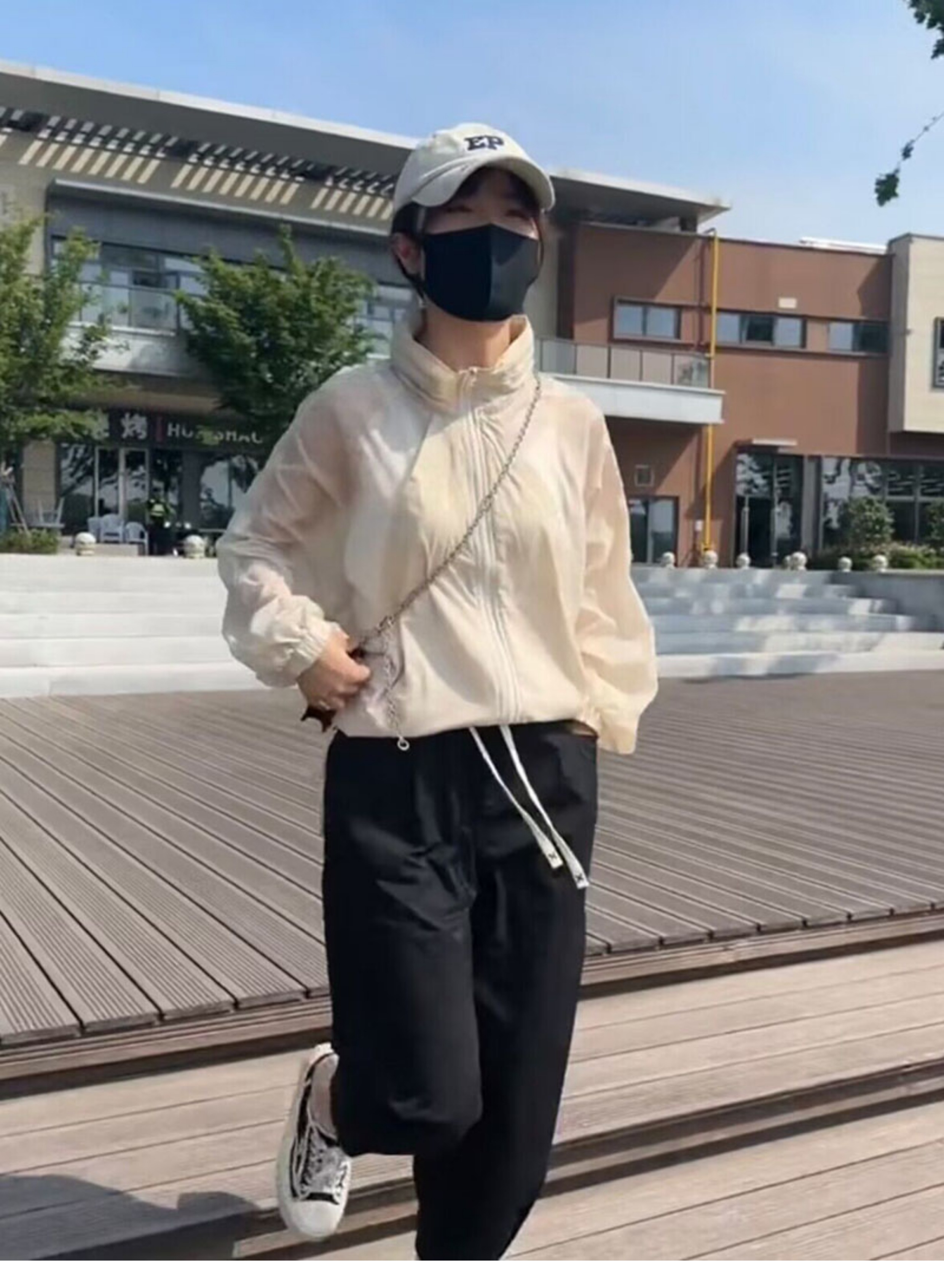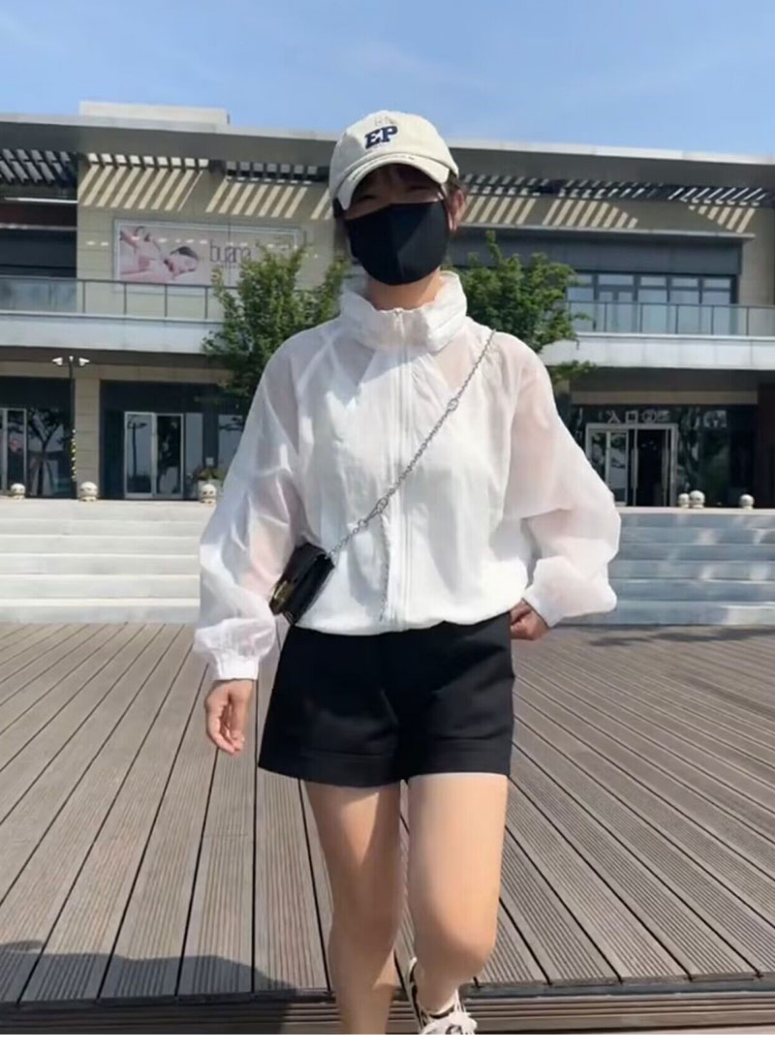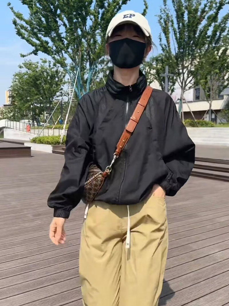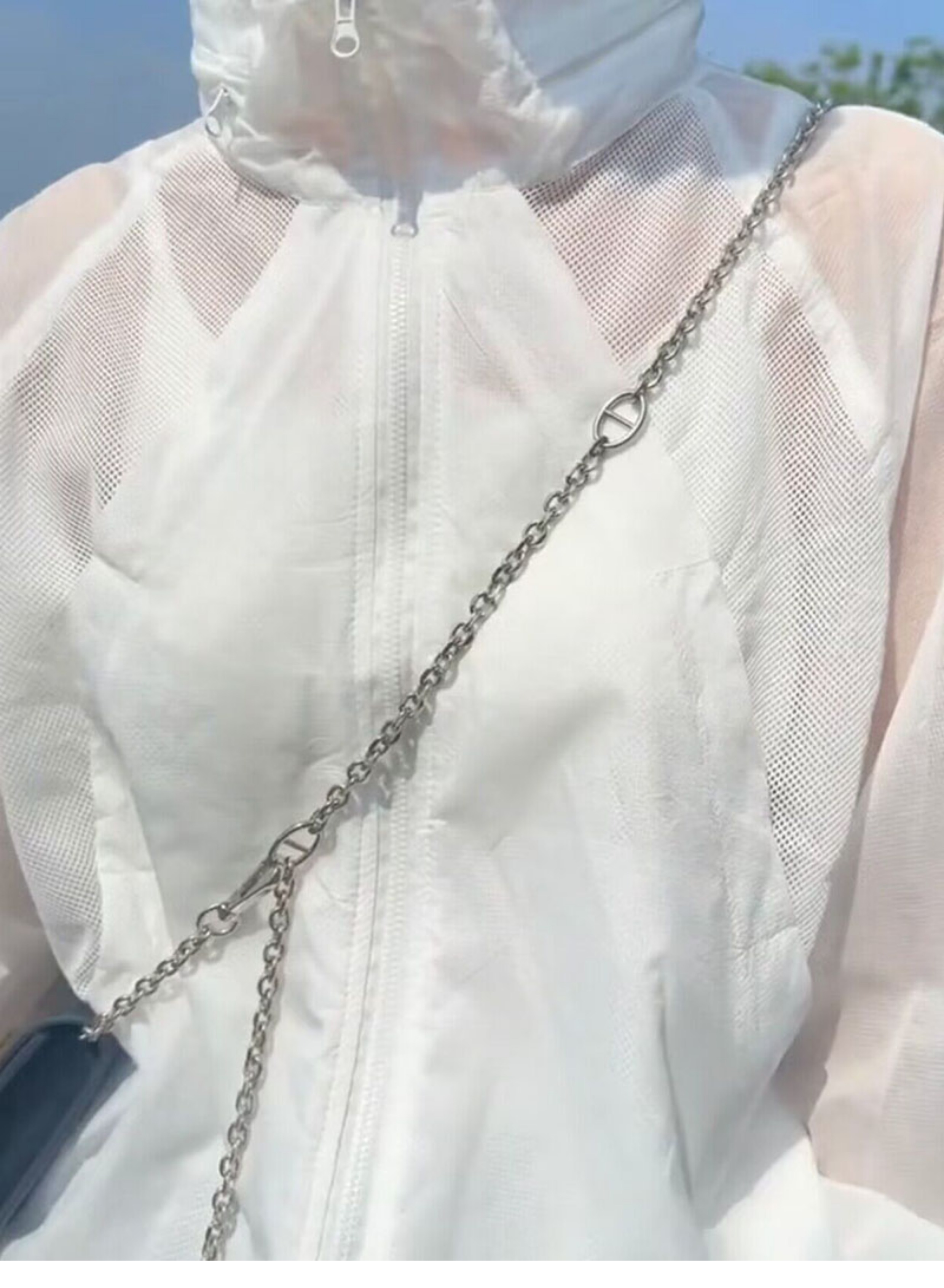 歐貨潮ins輕薄透氣立領連帽防曬衣2023夏新拼接網洞設計感外套女
