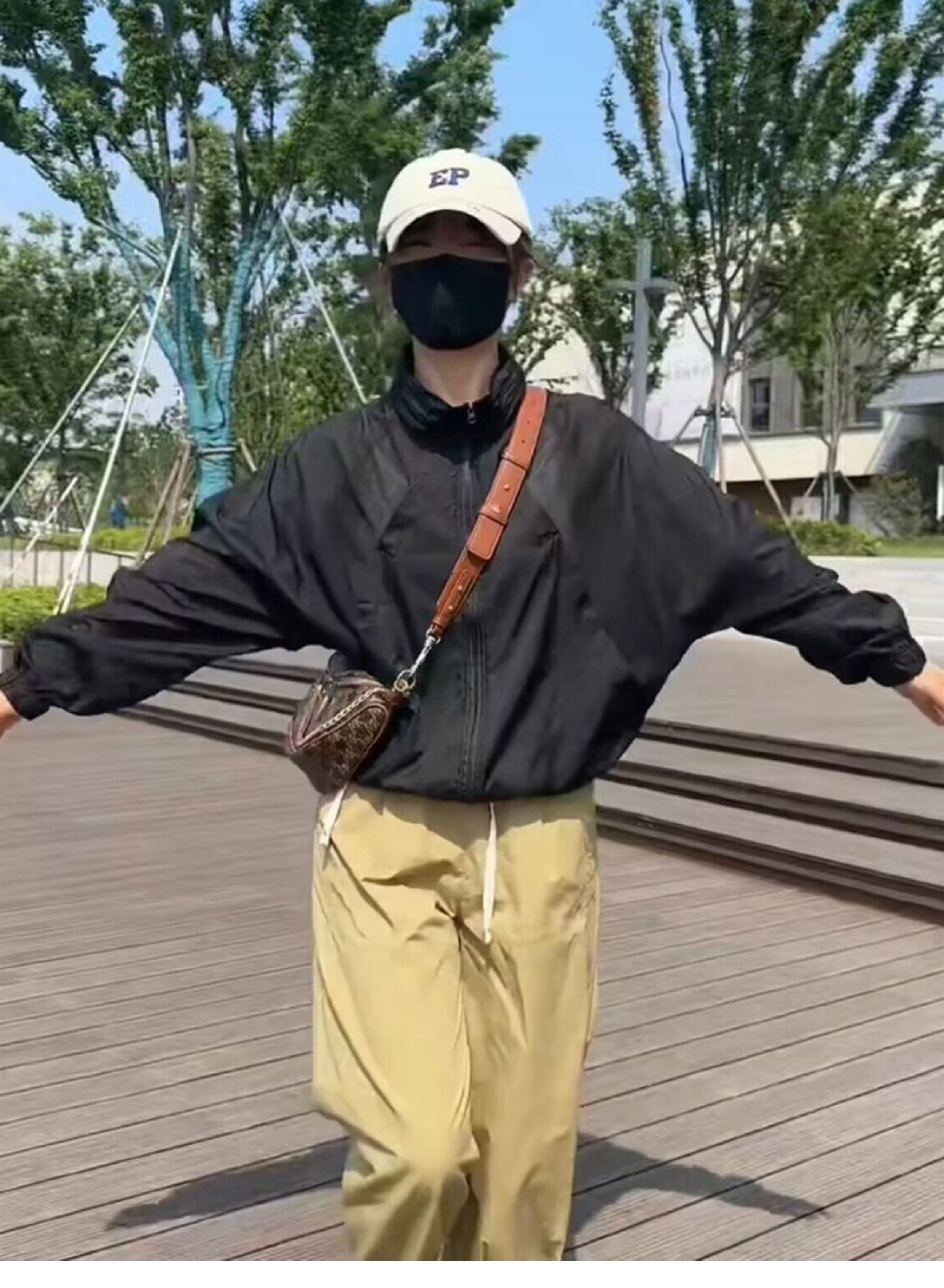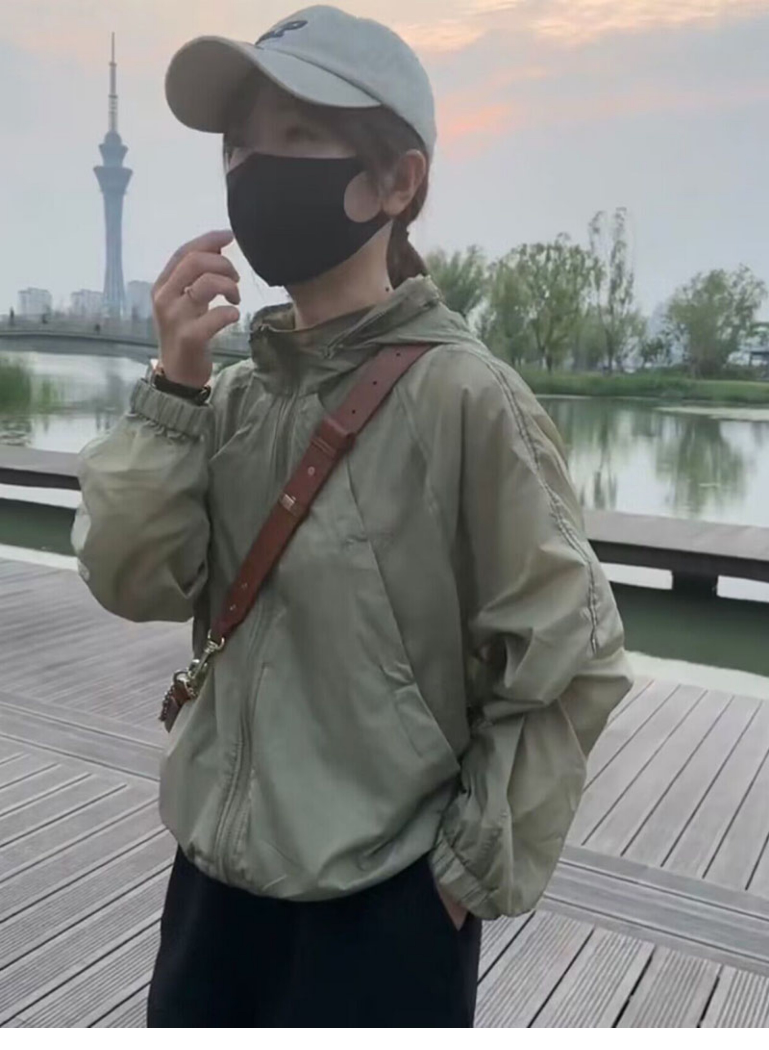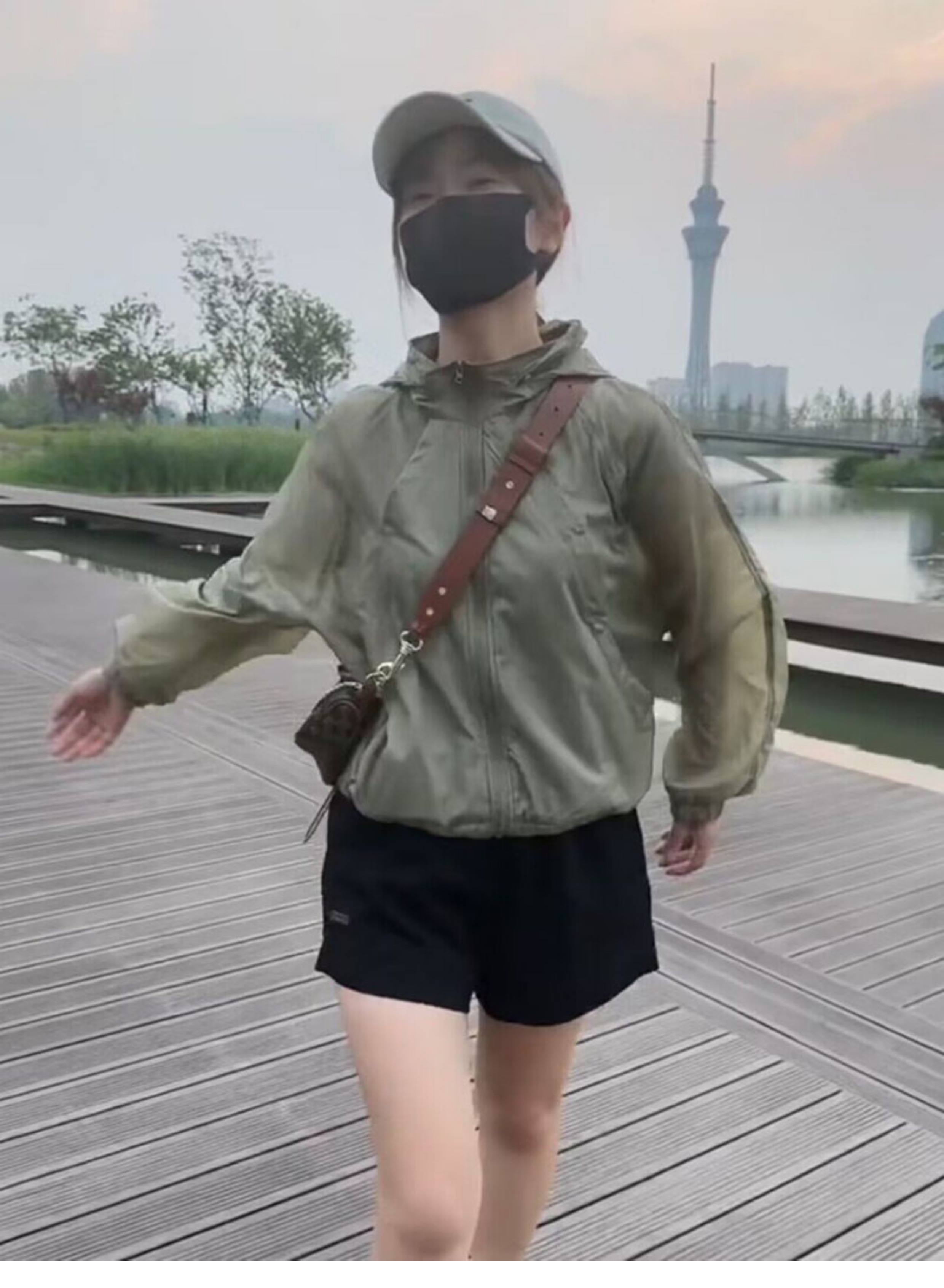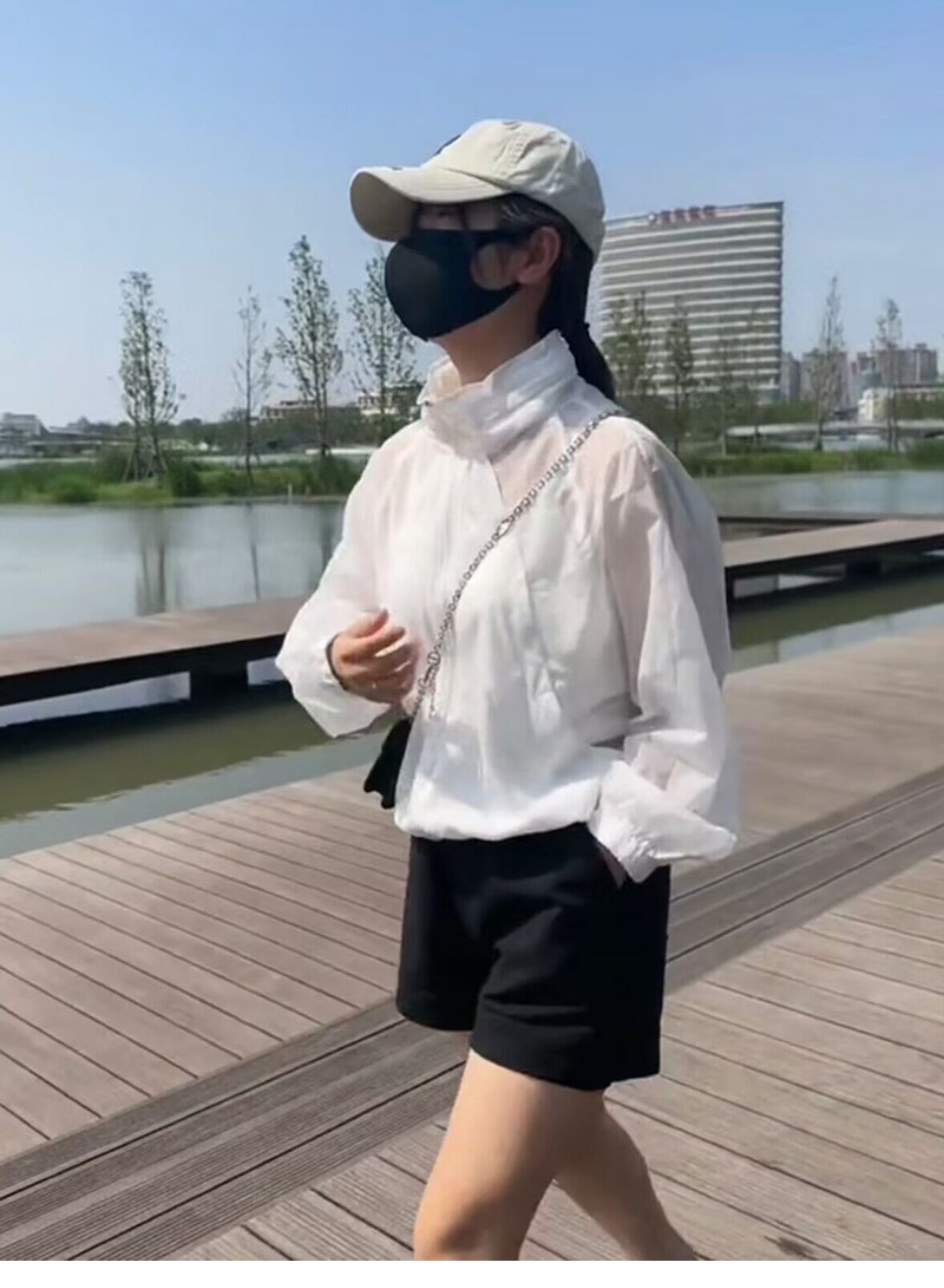 歐貨潮ins輕薄透氣立領連帽防曬衣2023夏新拼接網洞設計感外套女