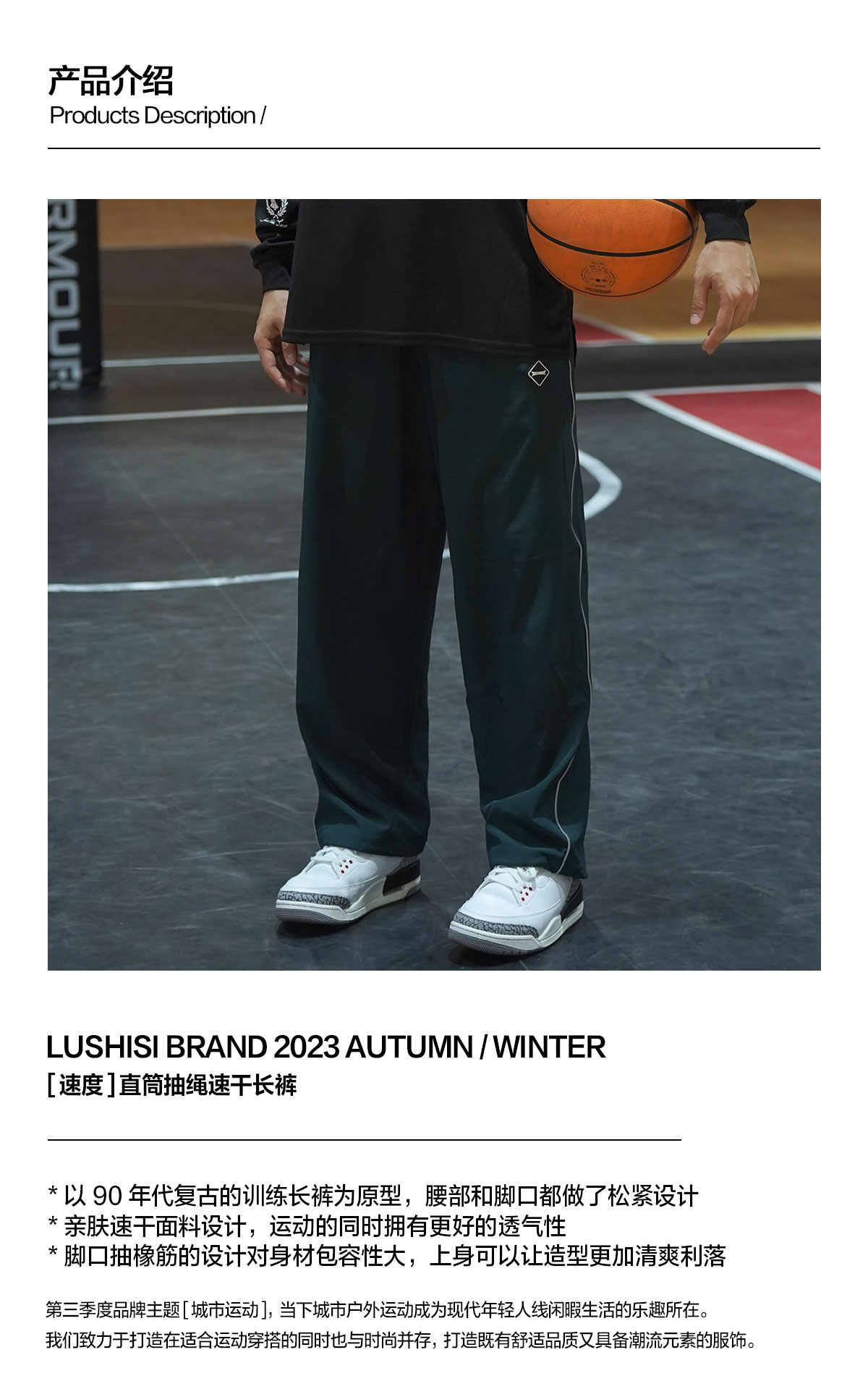 LUSHISI[速度]運動長褲速乾麪料夏季直筒束口褲訓練籃球長褲薄款
