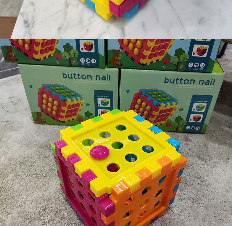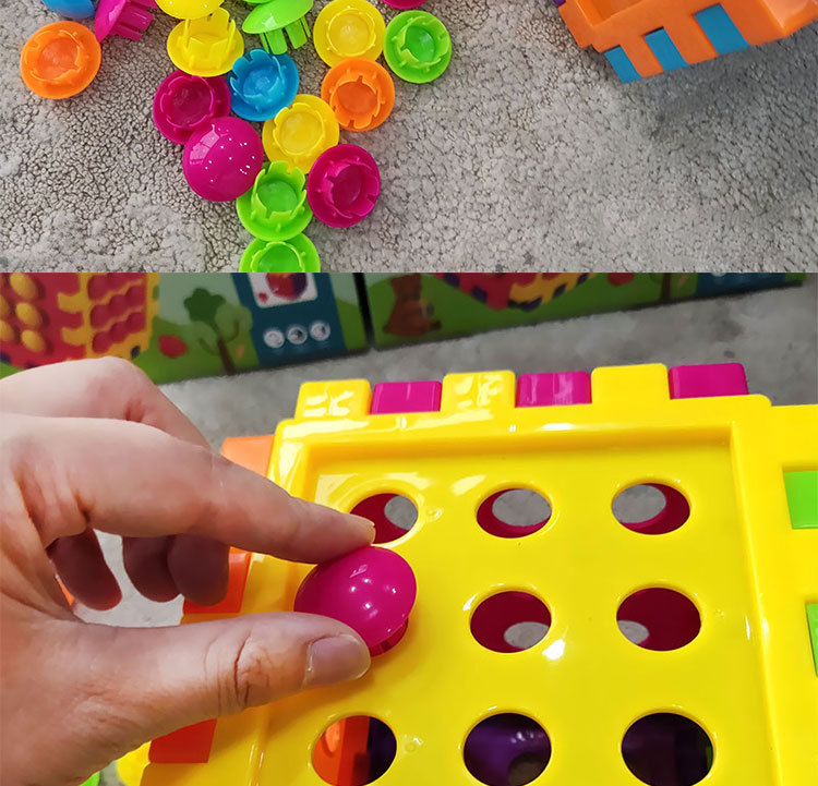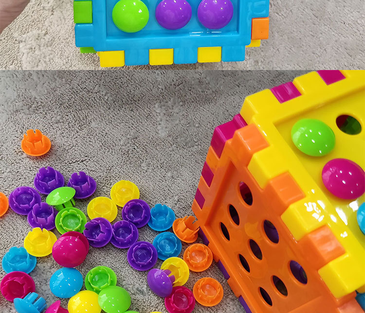 大号拼插方块积木立方体大颗粒蘑菇钉益智玩具动手能力训练颜色