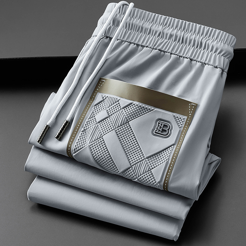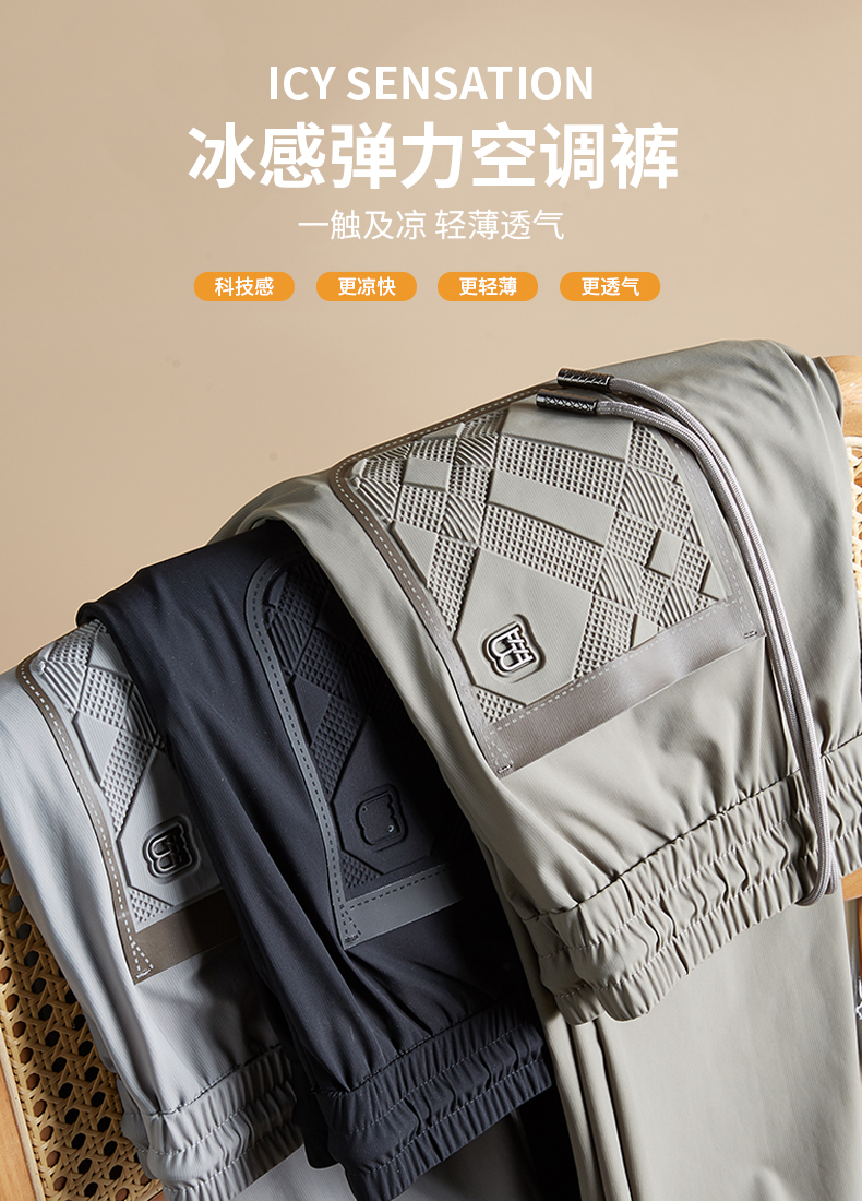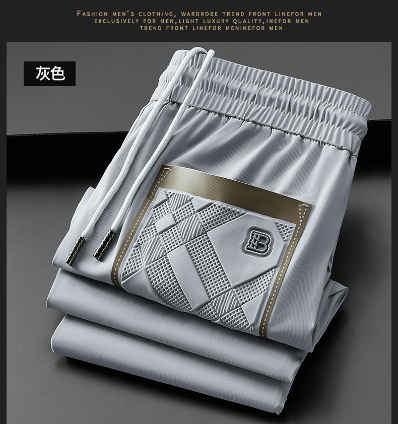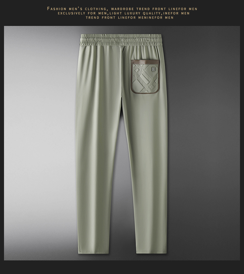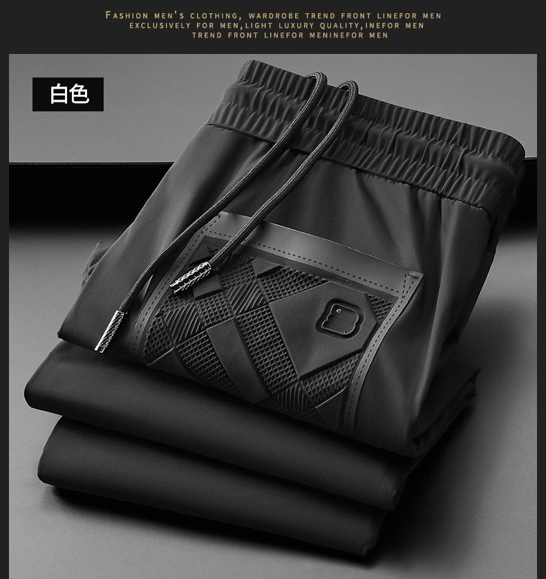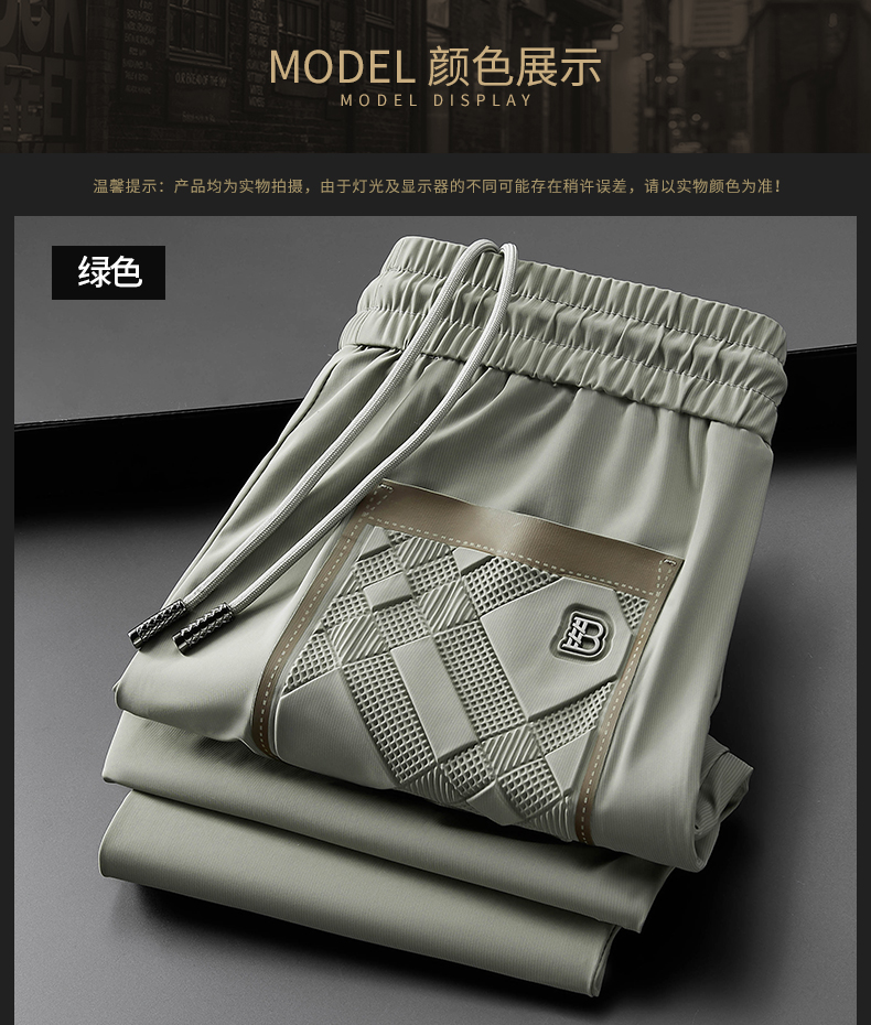 輕奢夏季薄款冰絲滑彈力休閒運動褲男修身高端歐貨小腳九分褲男士