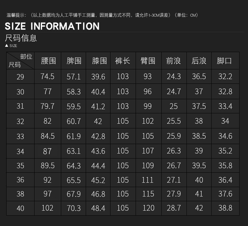 尺碼 29 30 31 32 33 34 35 36 38 40
