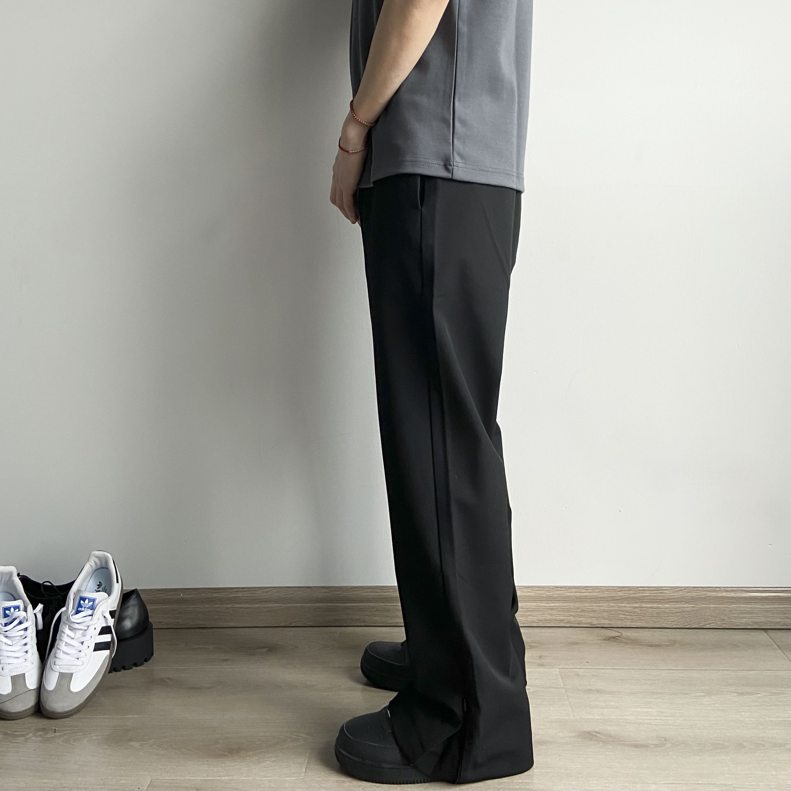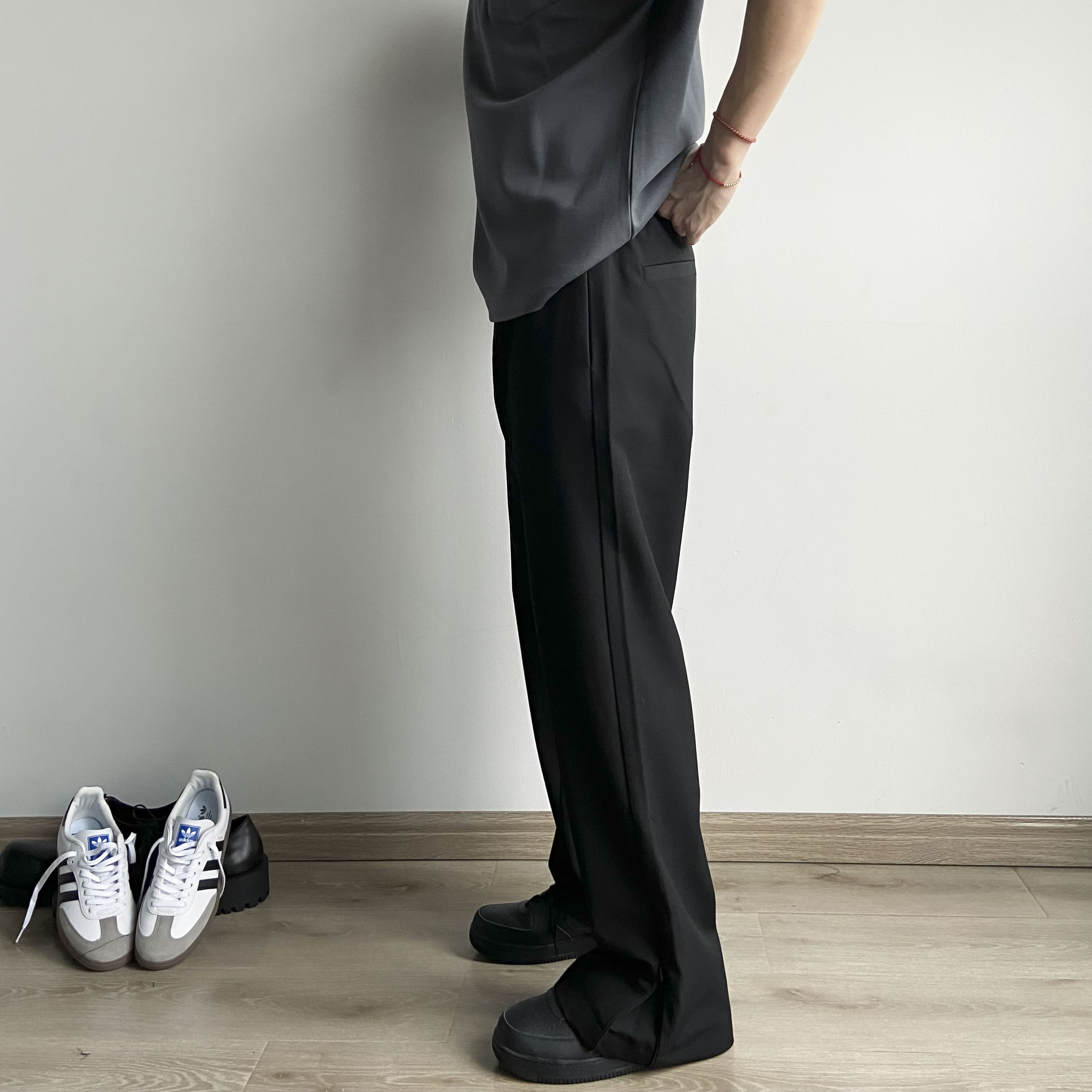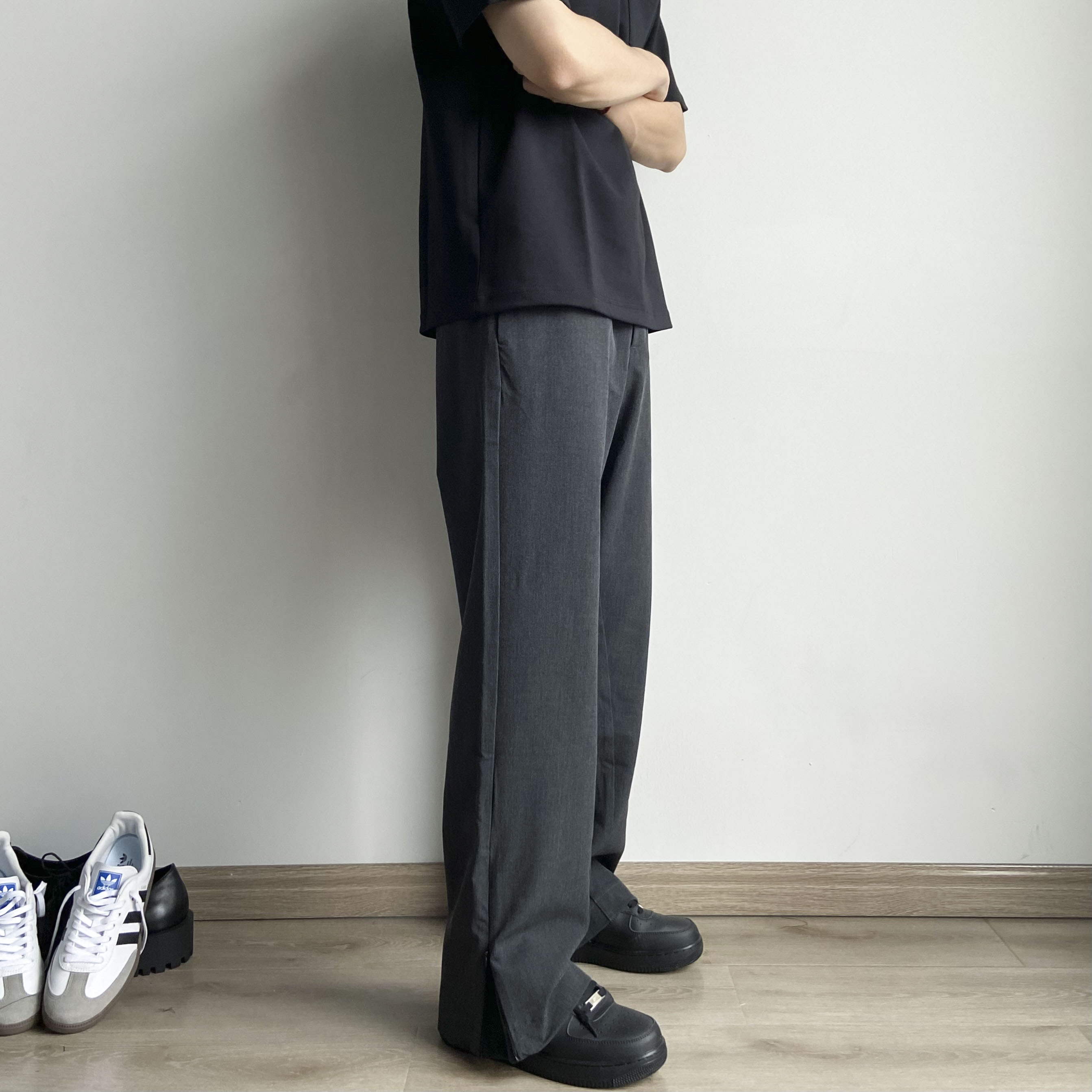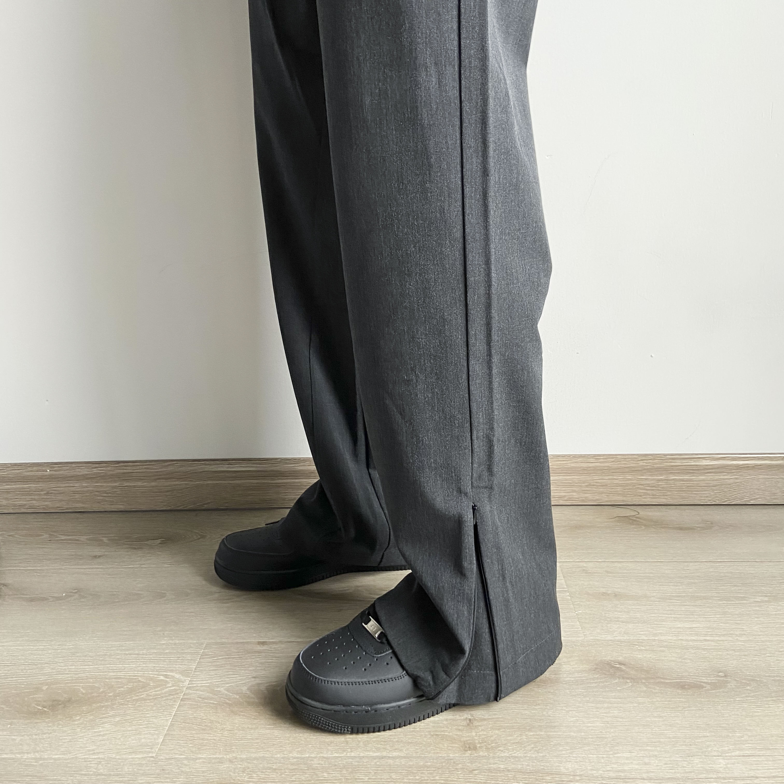 春夏Cleanfit立體裁剪羊毛混紡拉鍊開叉微喇直筒休閒西褲男女款潮