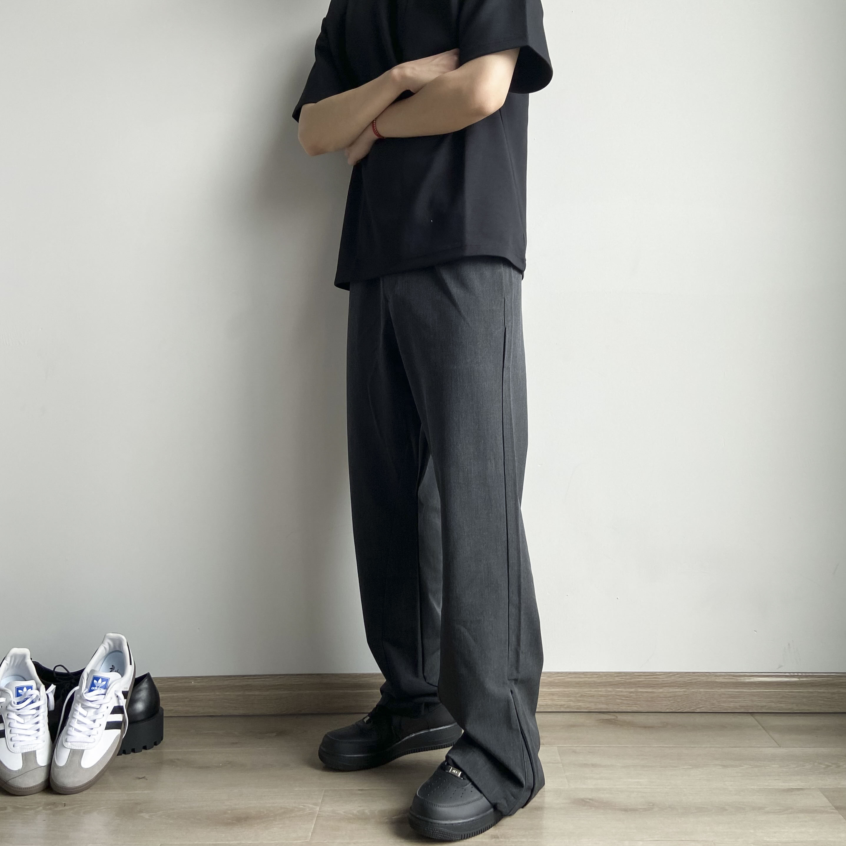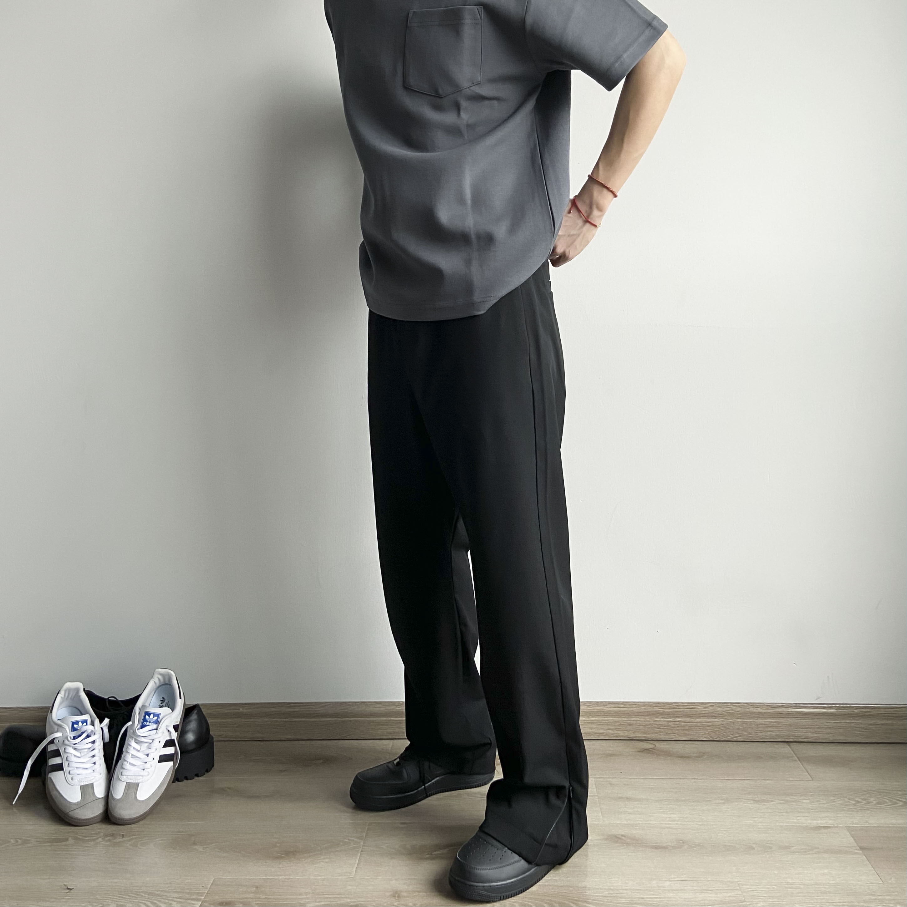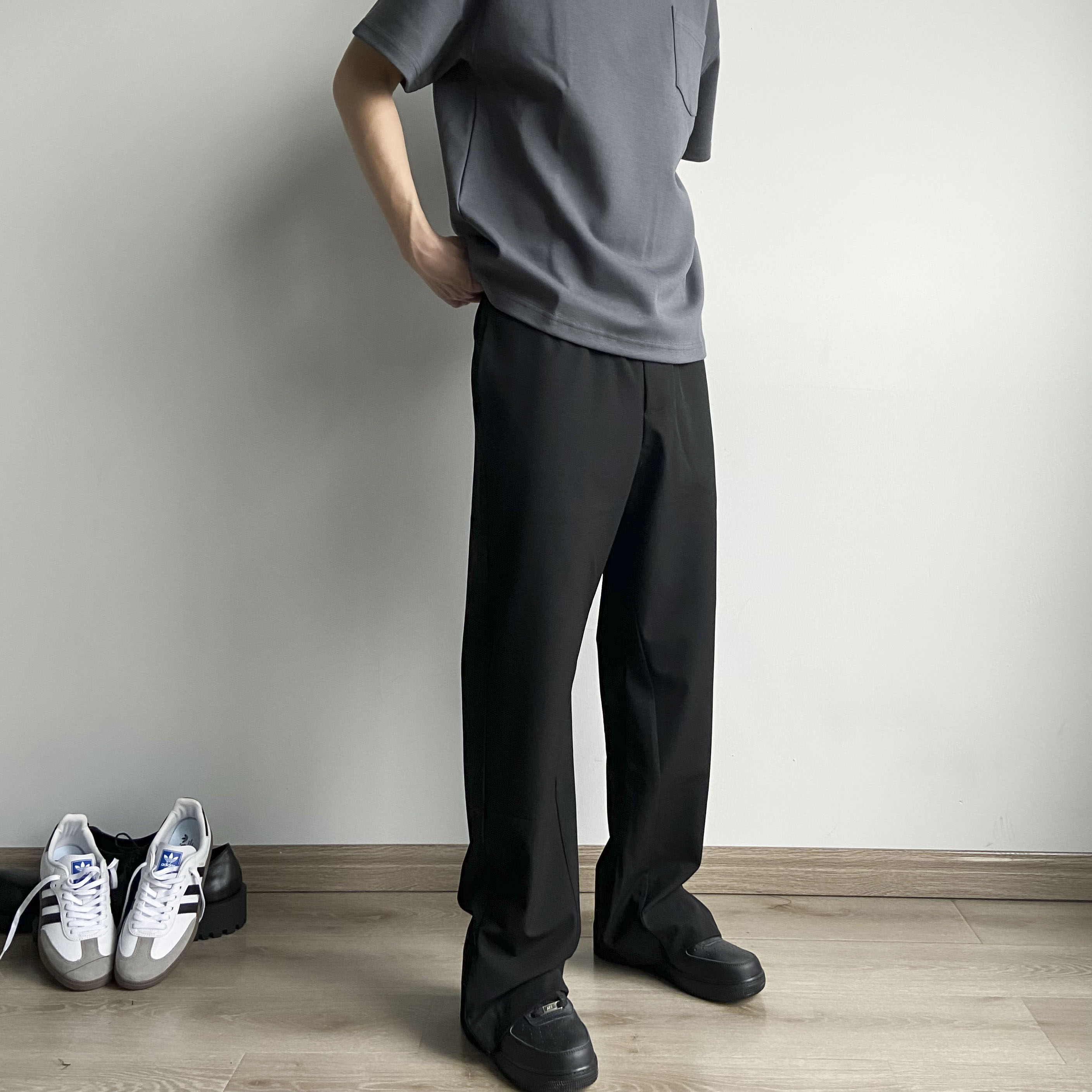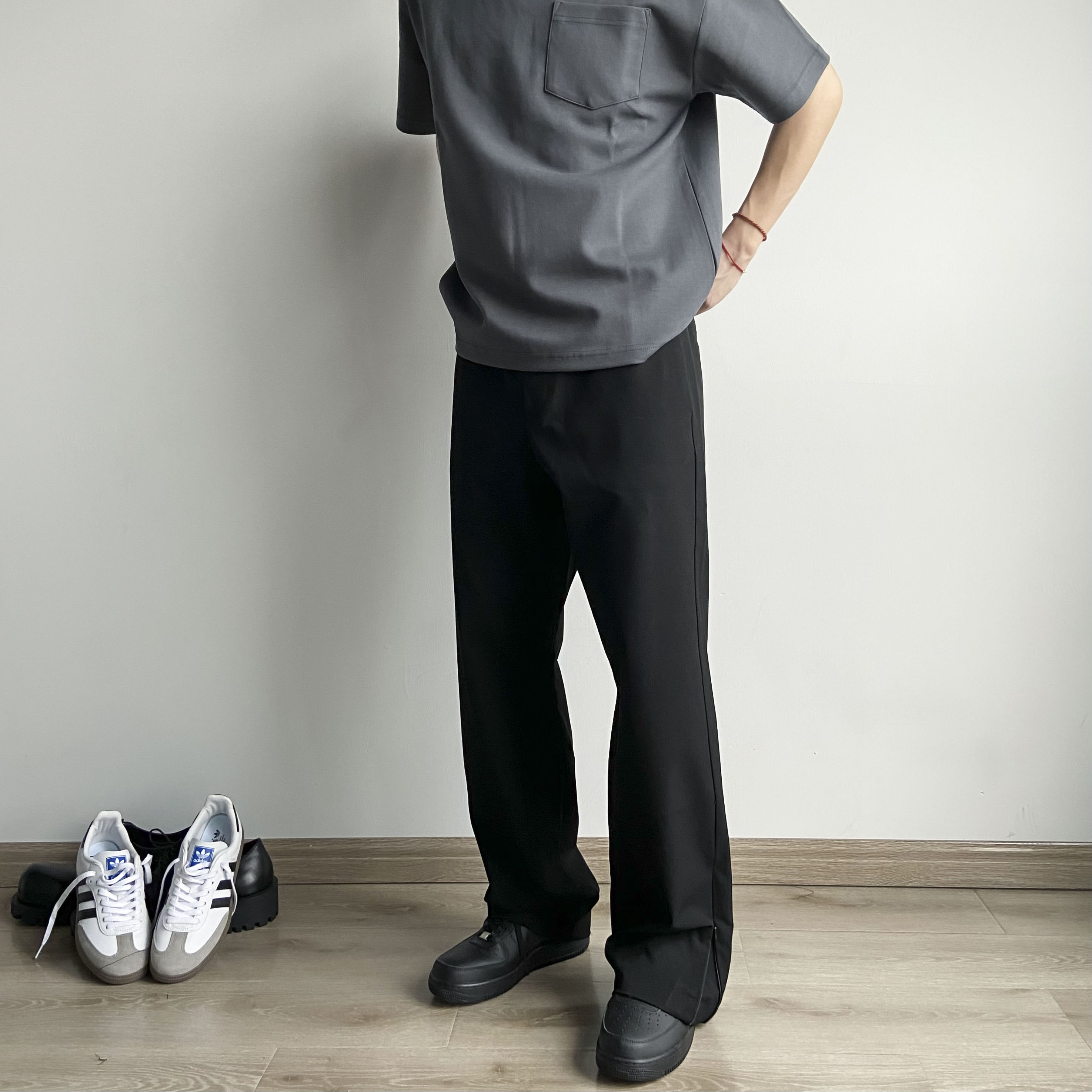 春夏Cleanfit立體裁剪羊毛混紡拉鍊開叉微喇直筒休閒西褲男女款潮