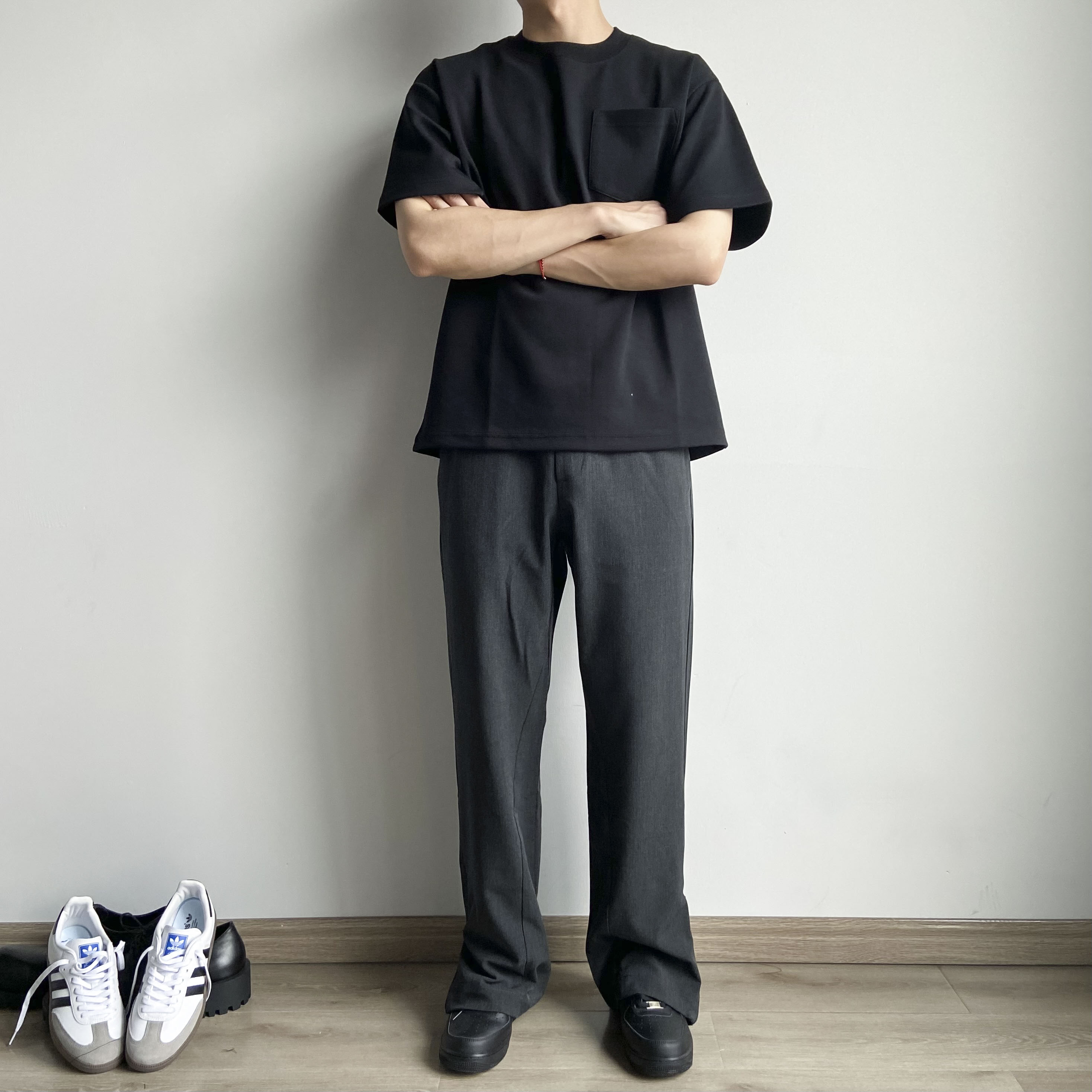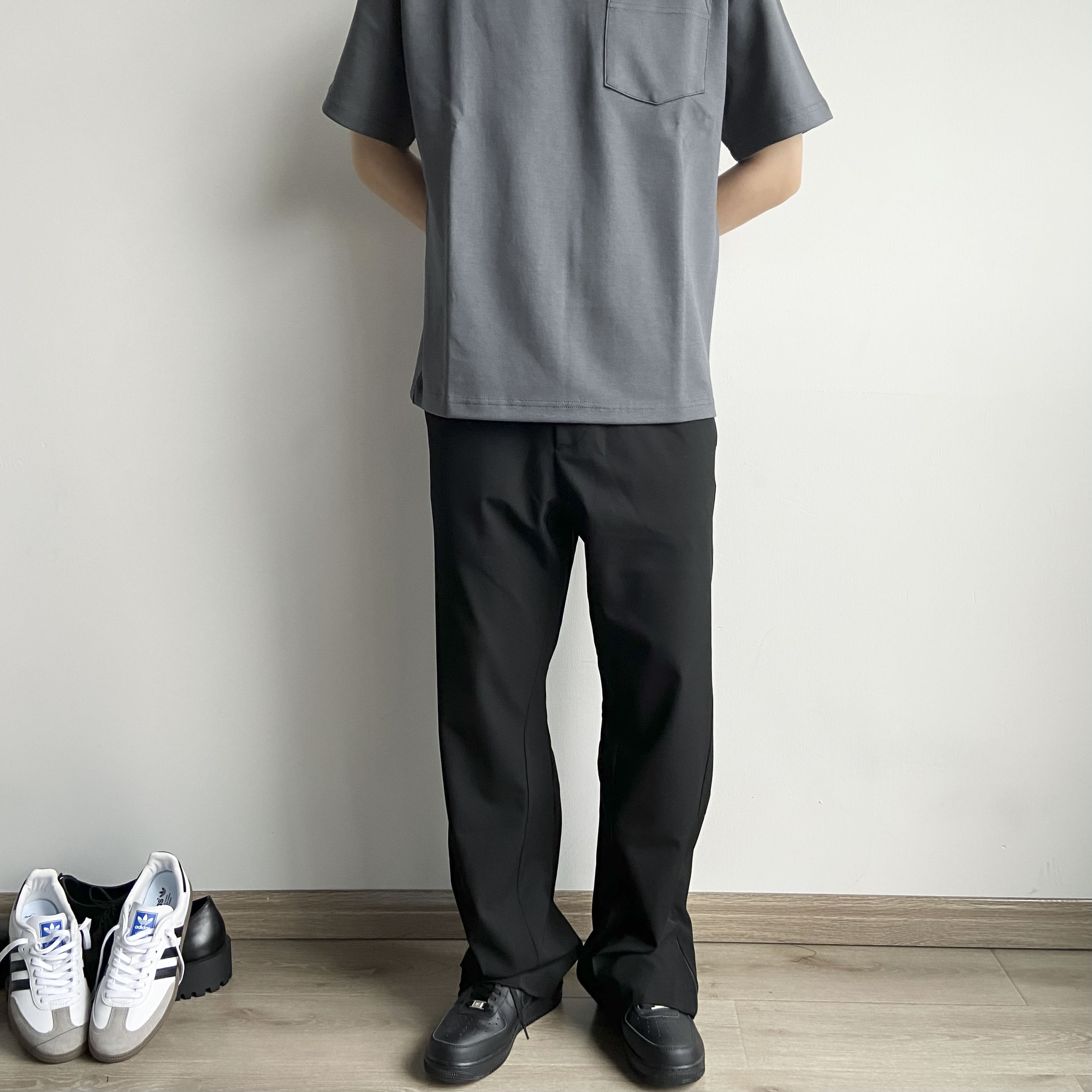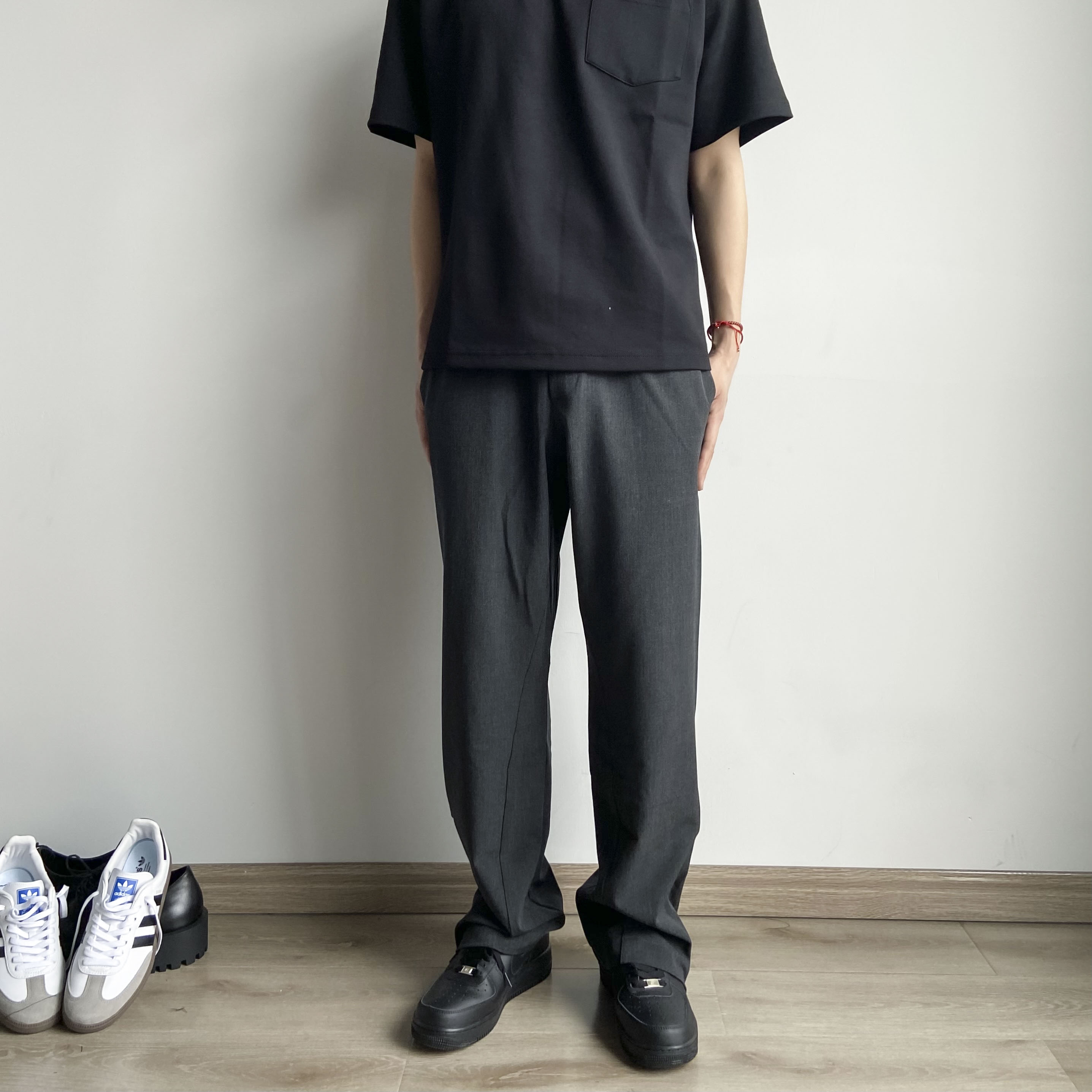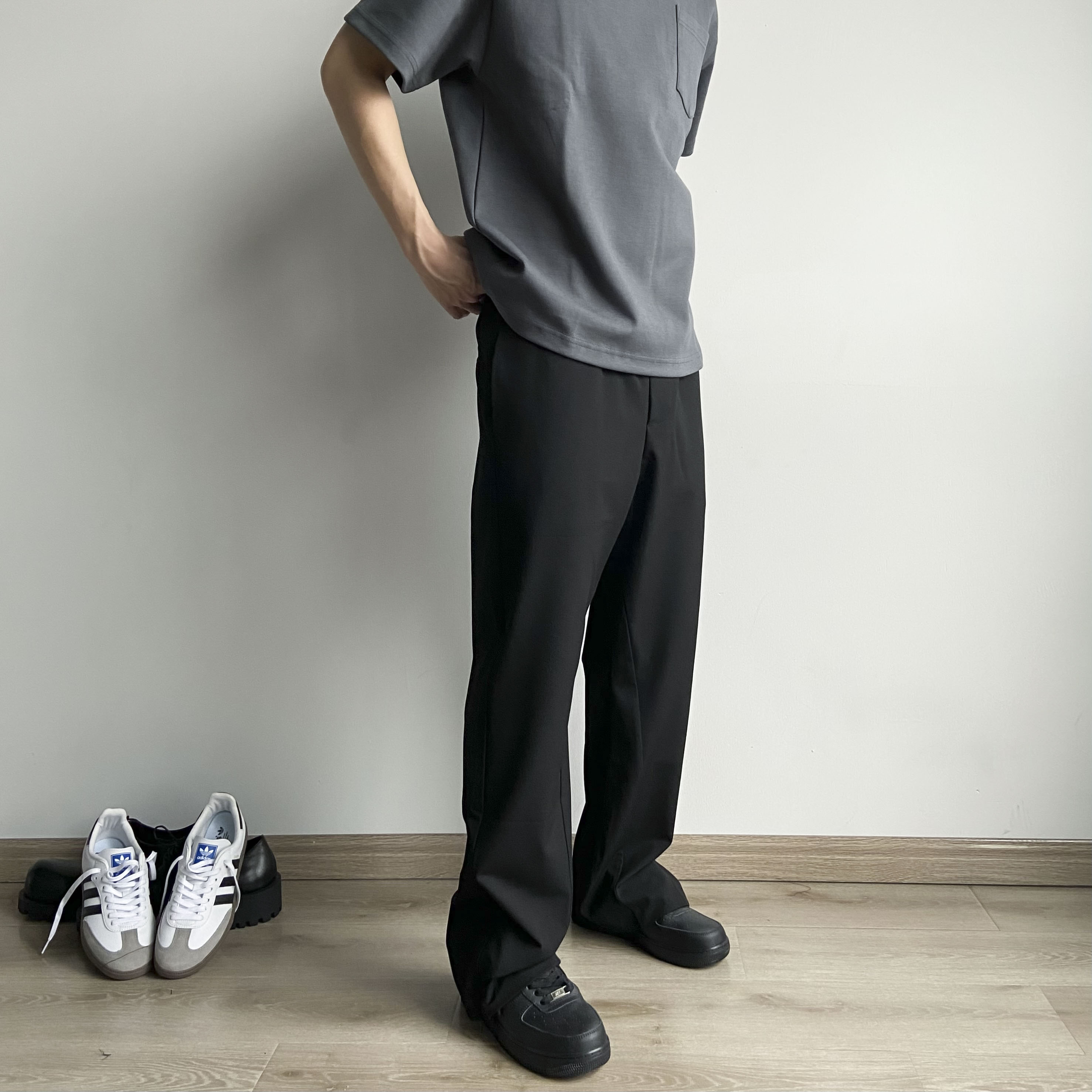 春夏Cleanfit立體裁剪羊毛混紡拉鍊開叉微喇直筒休閒西褲男女款潮