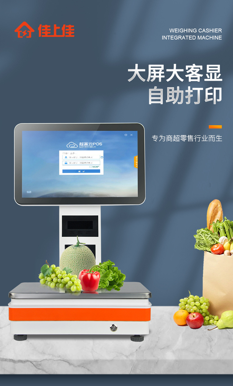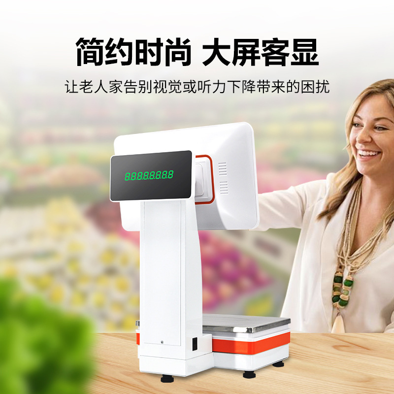 厂家超市称重收银机ai识别收银秤PC称智能收银机一体秤收银一体机