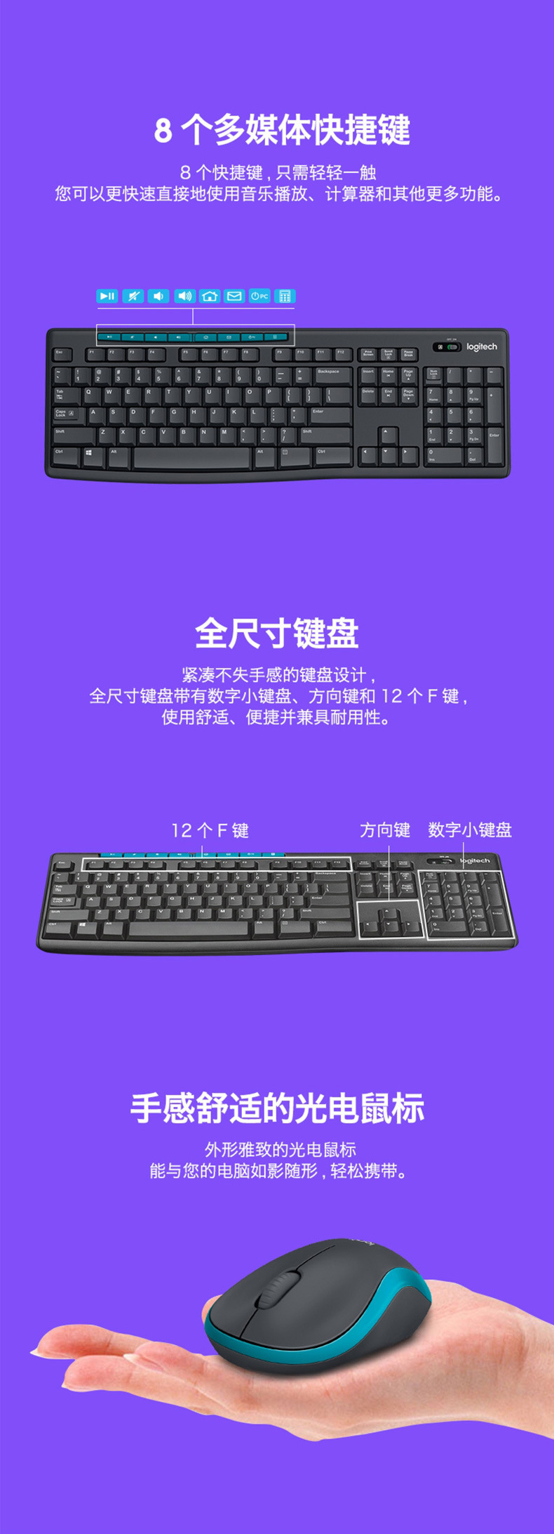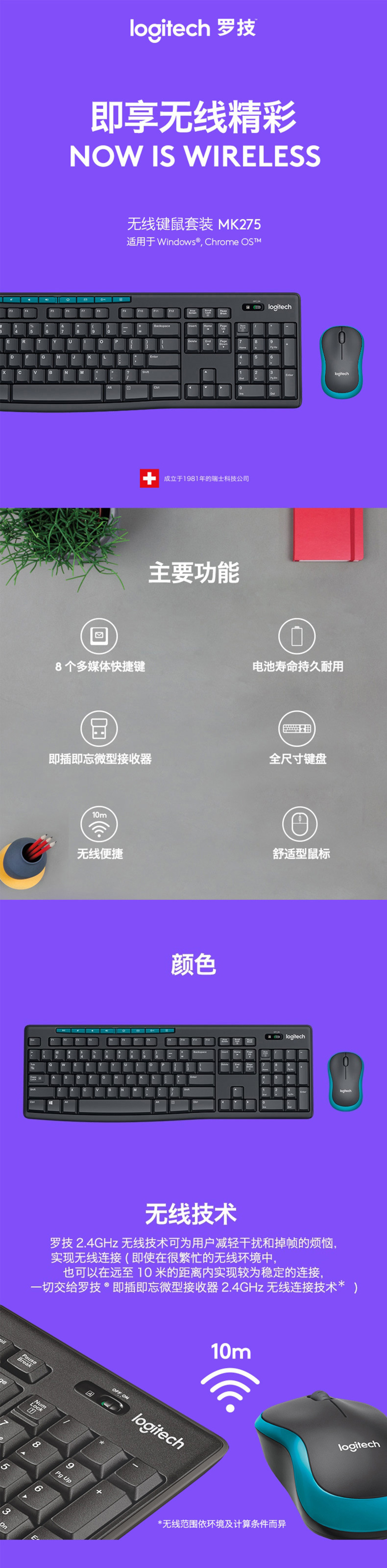 批发罗技MK275无线键鼠套装笔记电脑办公无线鼠标键盘MK270同款