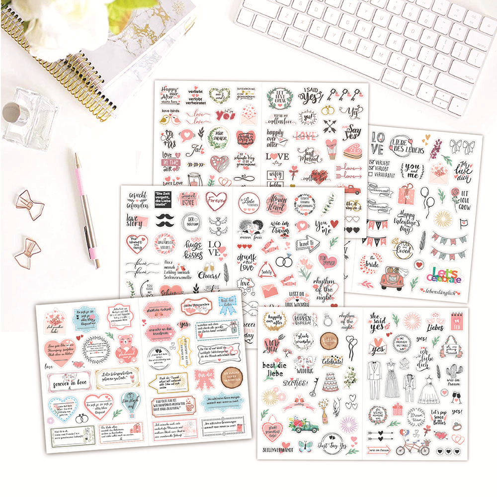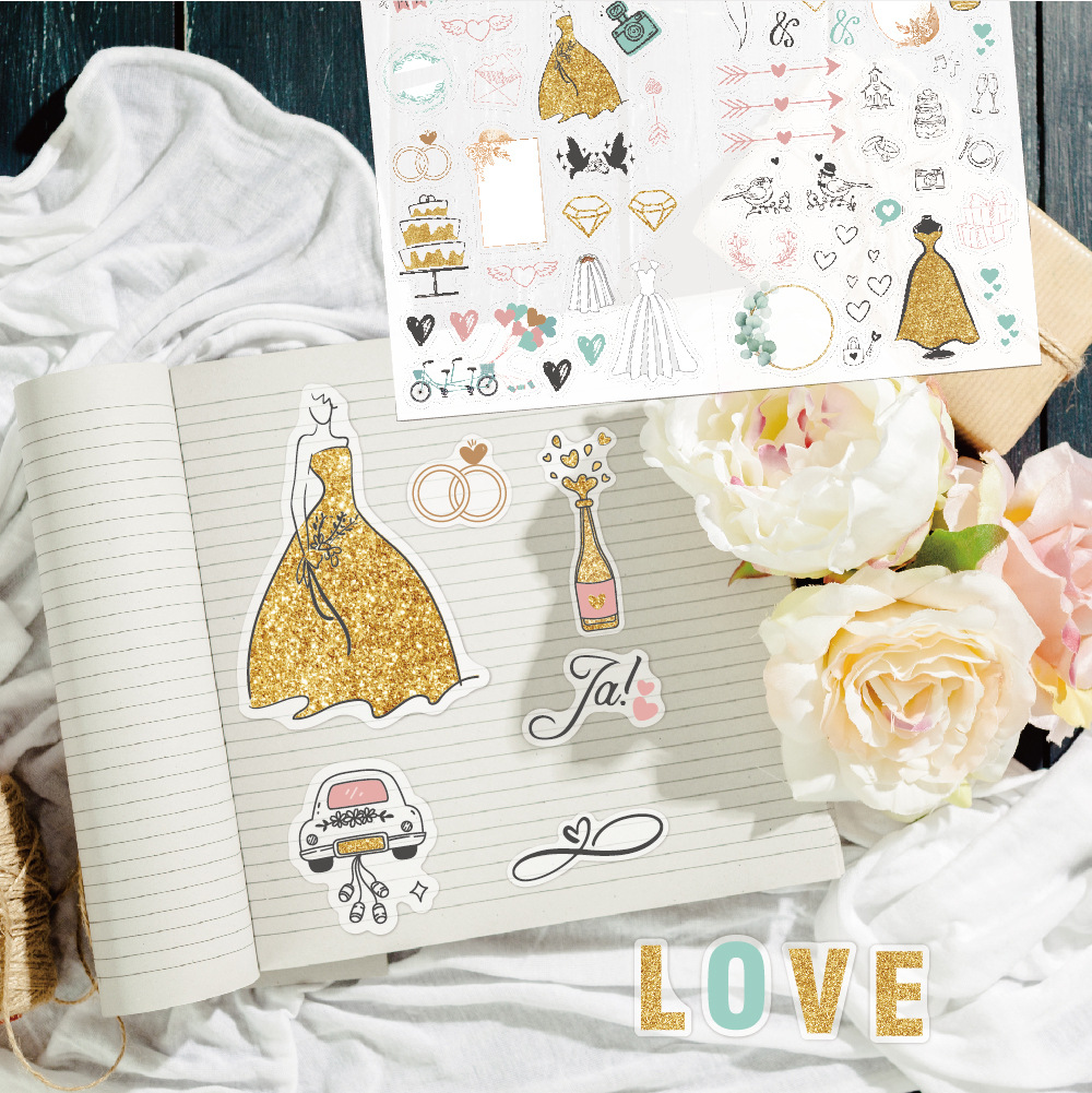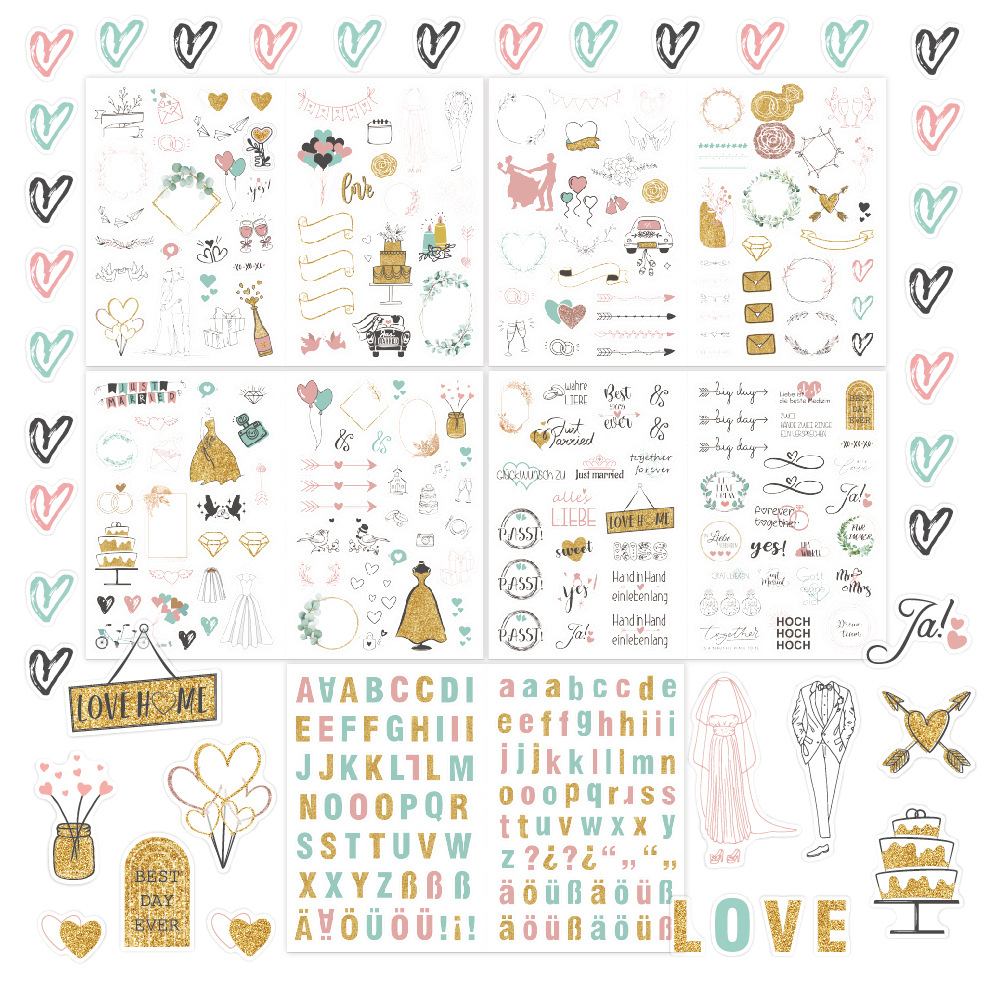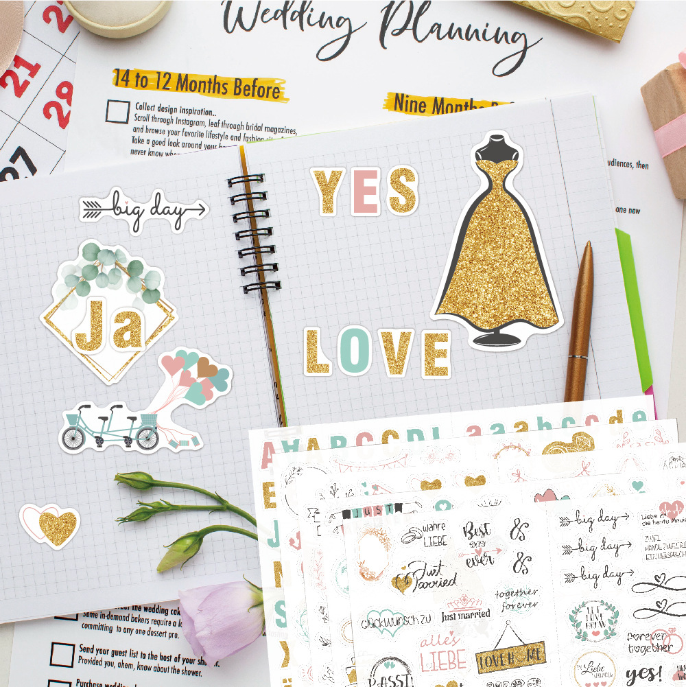 德语婚礼贴纸266枚闪光策划贴画 祝福邀请婚礼计划贴纸包