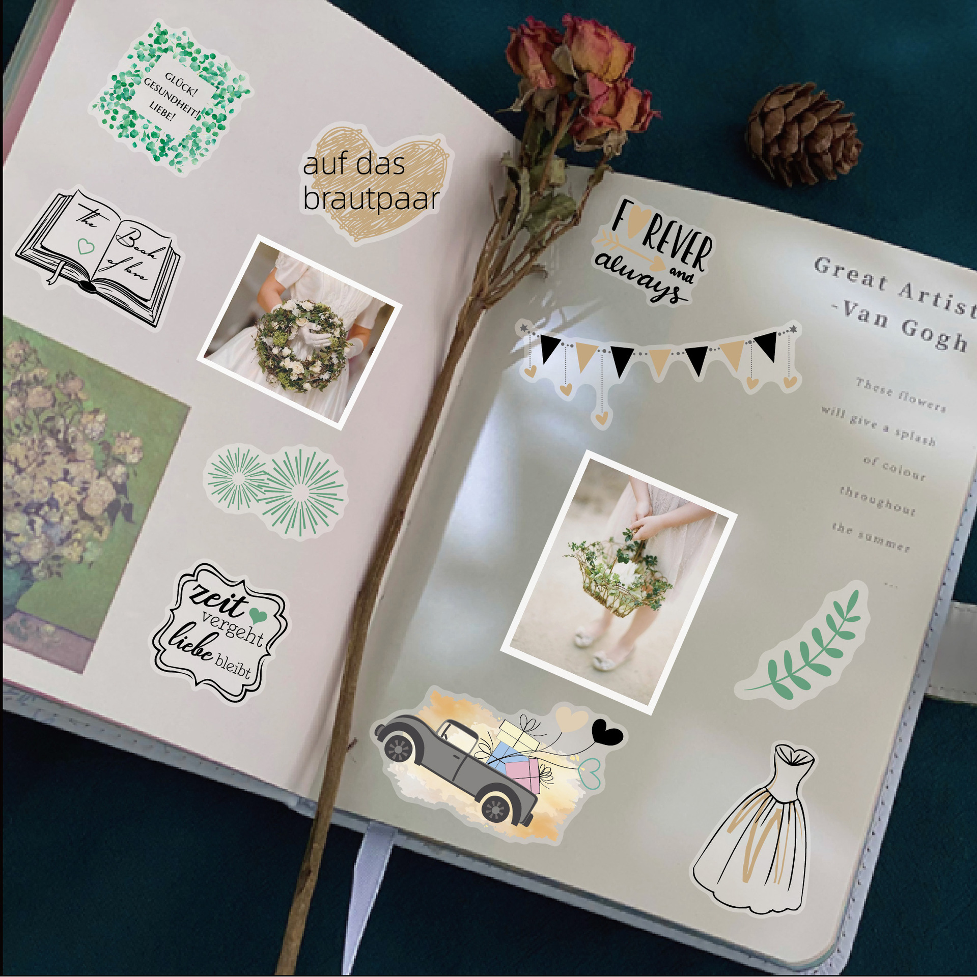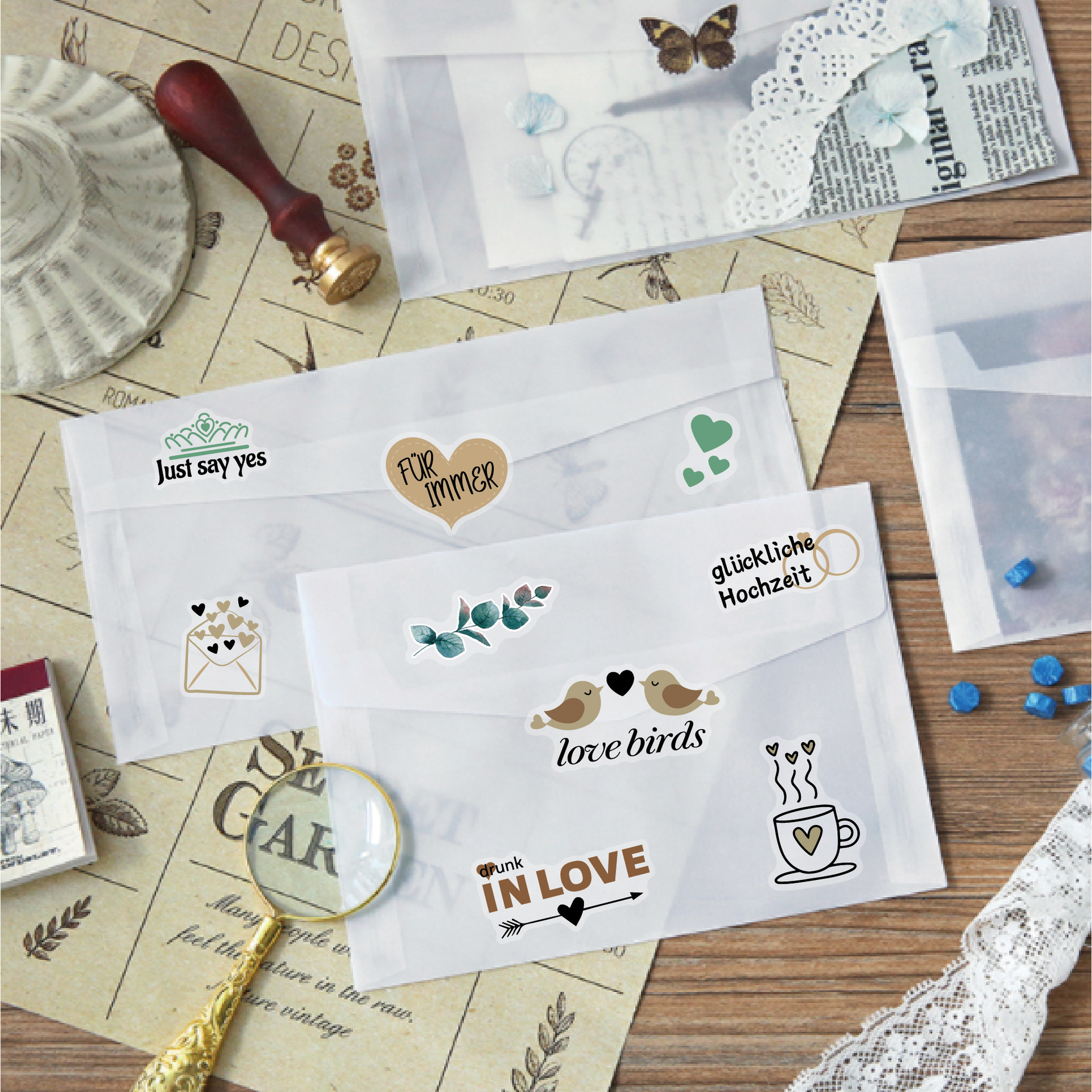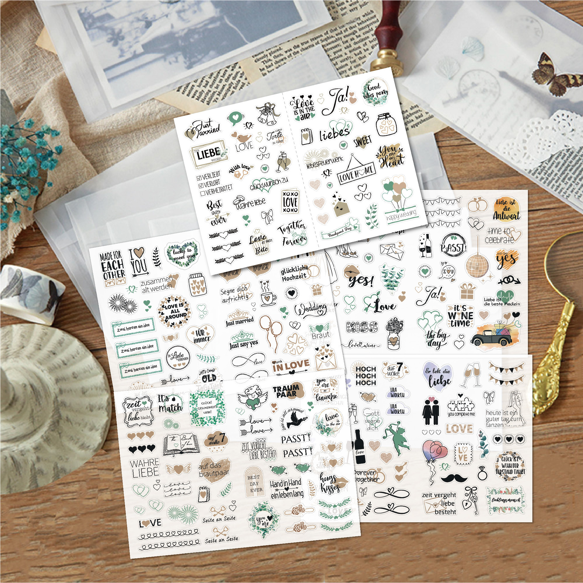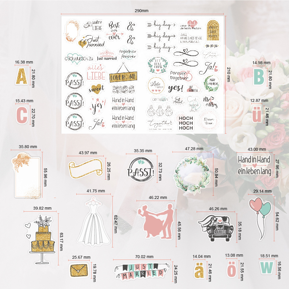 德语婚礼贴纸266枚闪光策划贴画 祝福邀请婚礼计划贴纸包