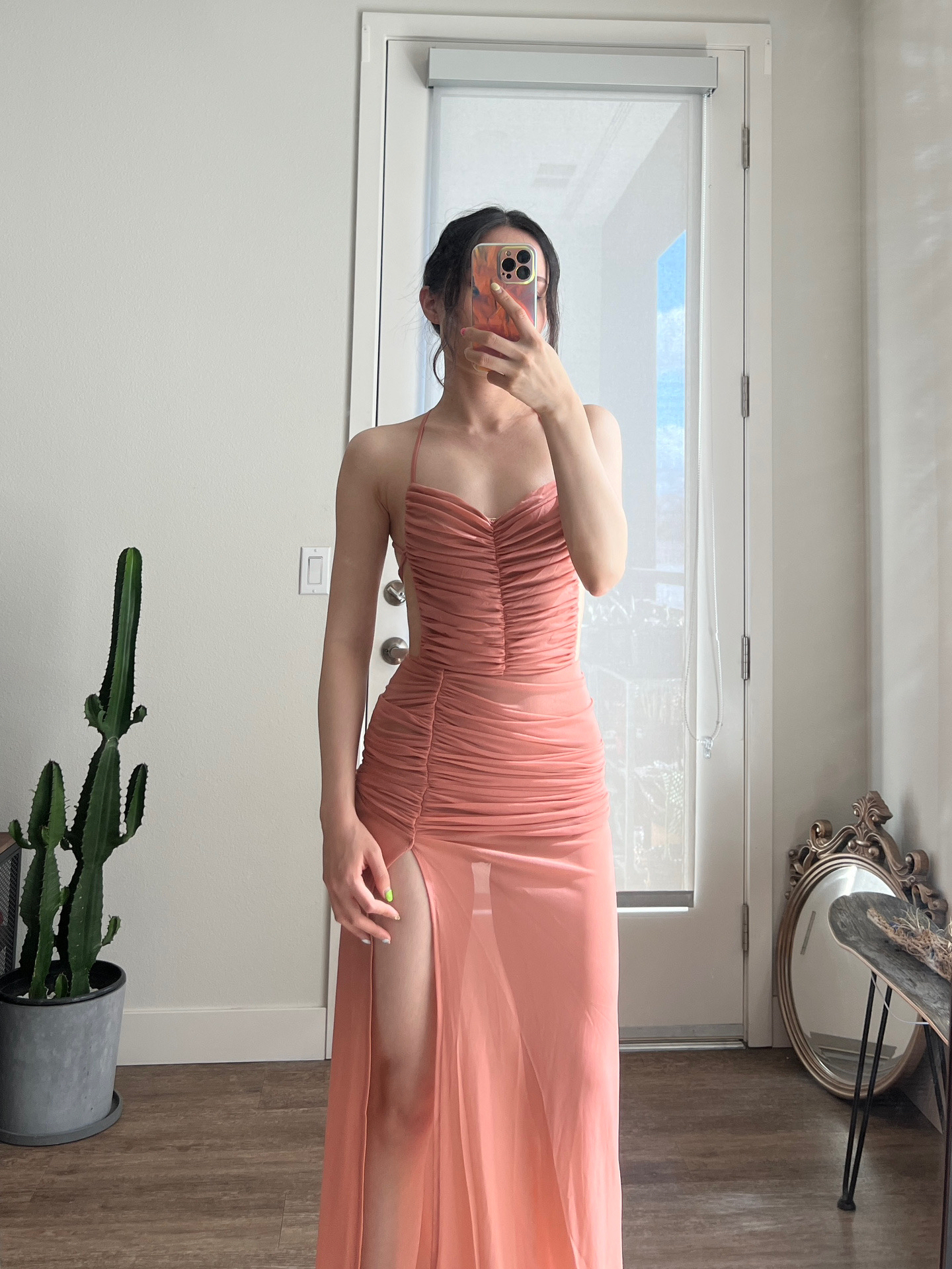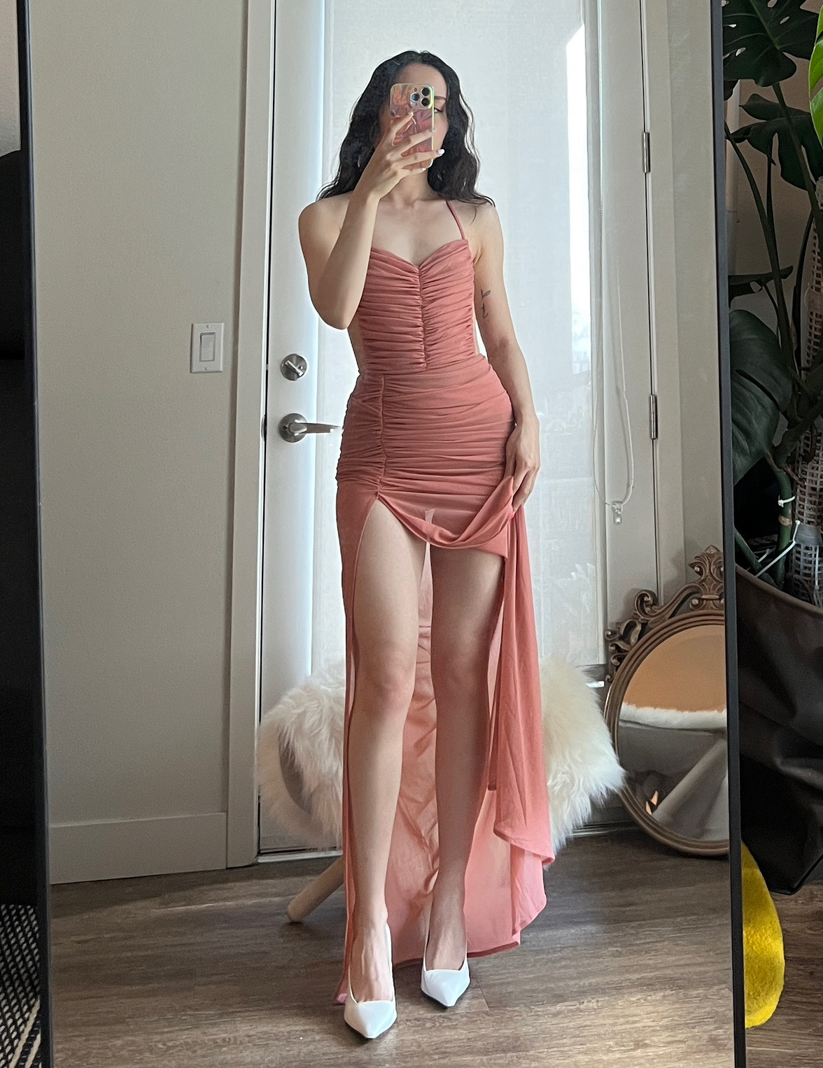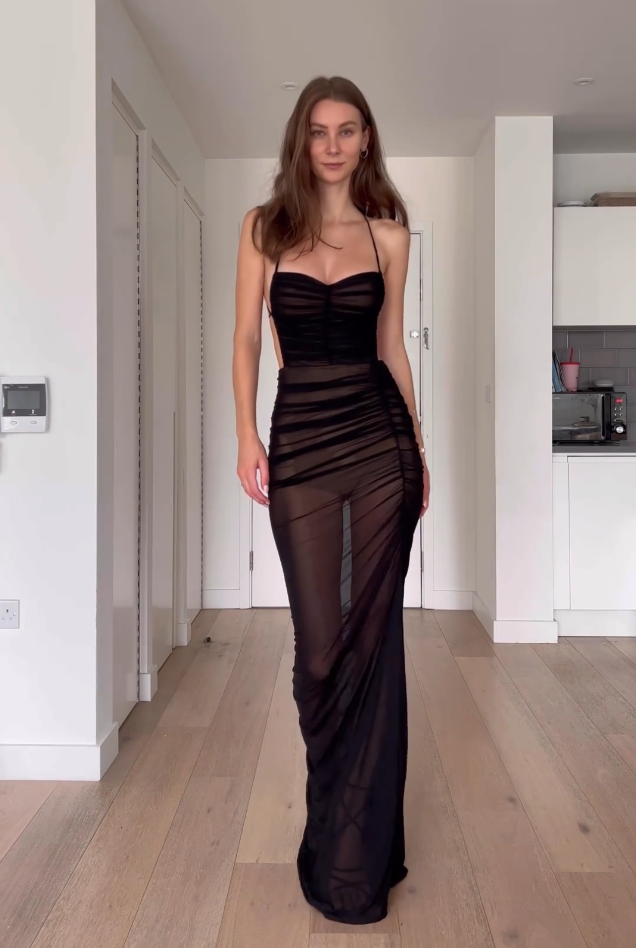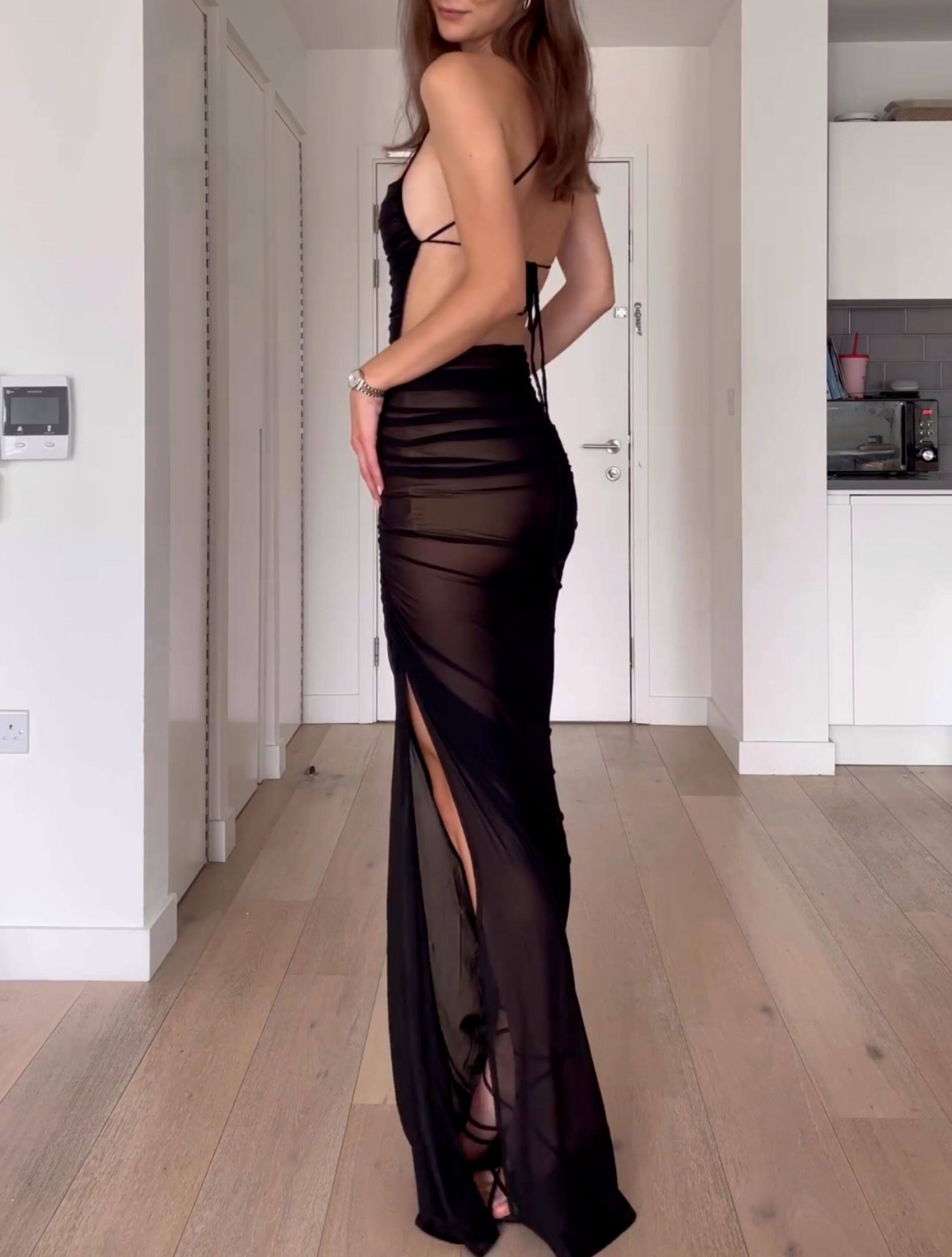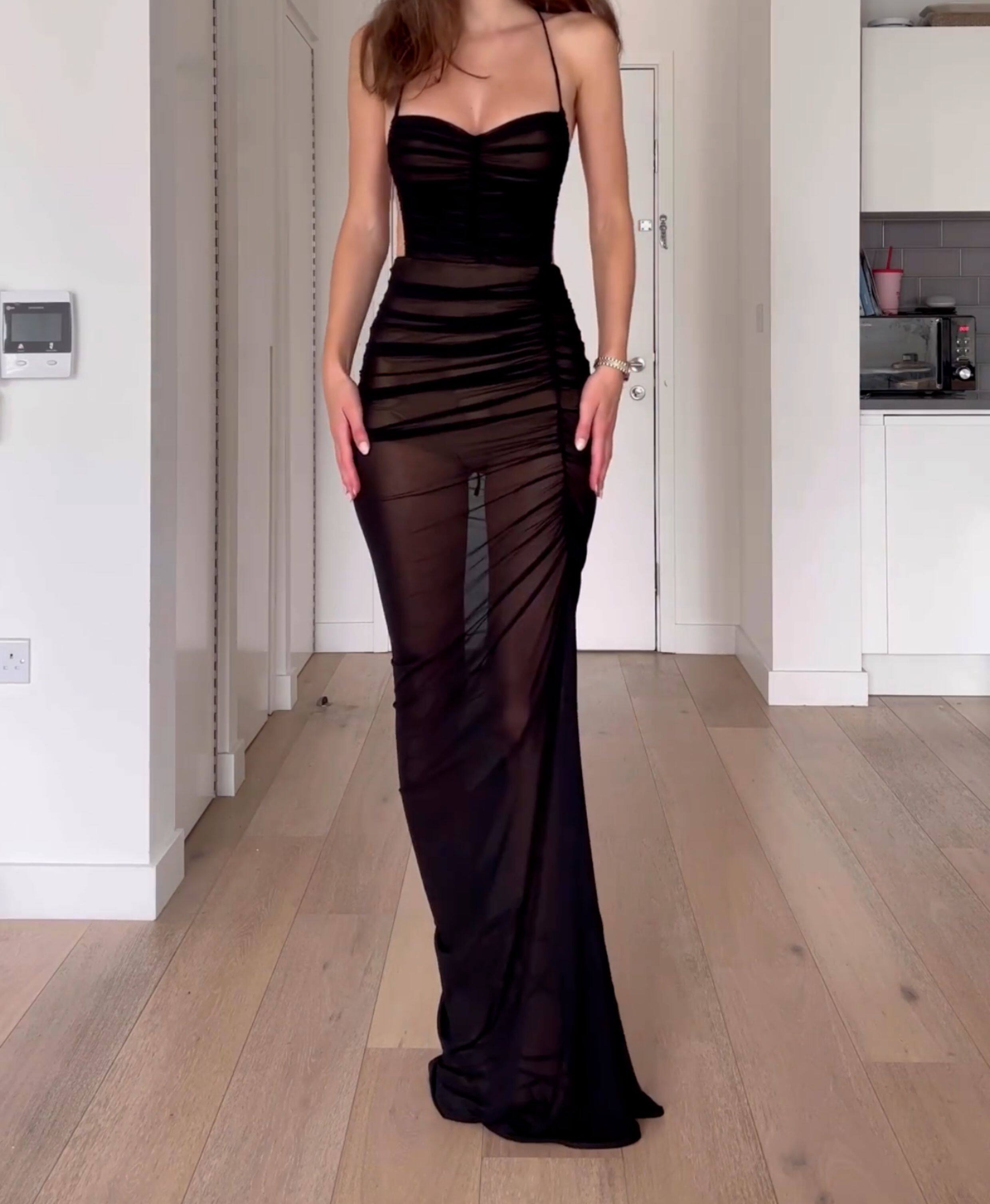 高冷御姐性感網紗吊帶洋裝2023夏辣妹包臀修身顯瘦抹胸露背長裙