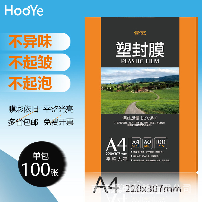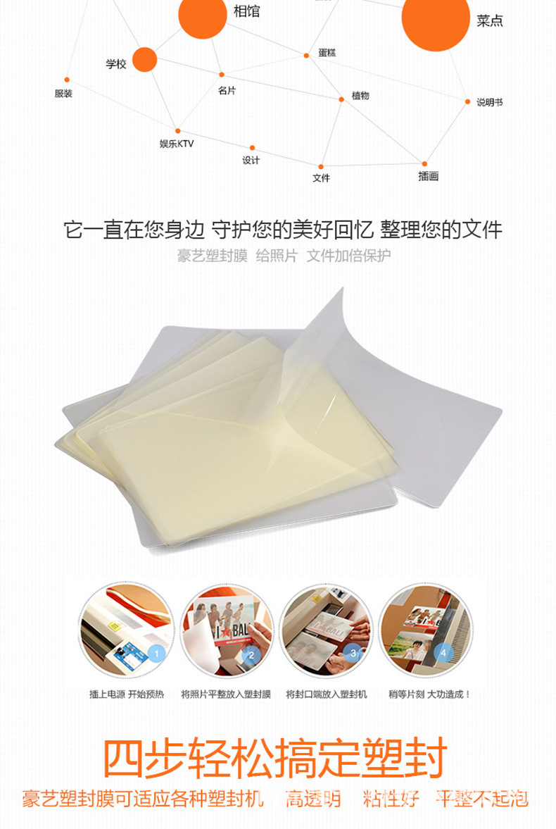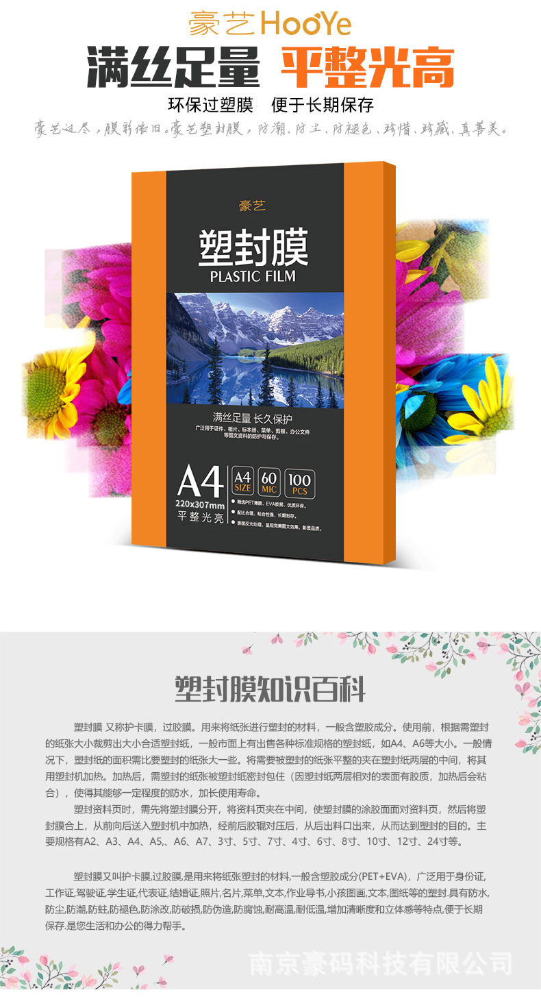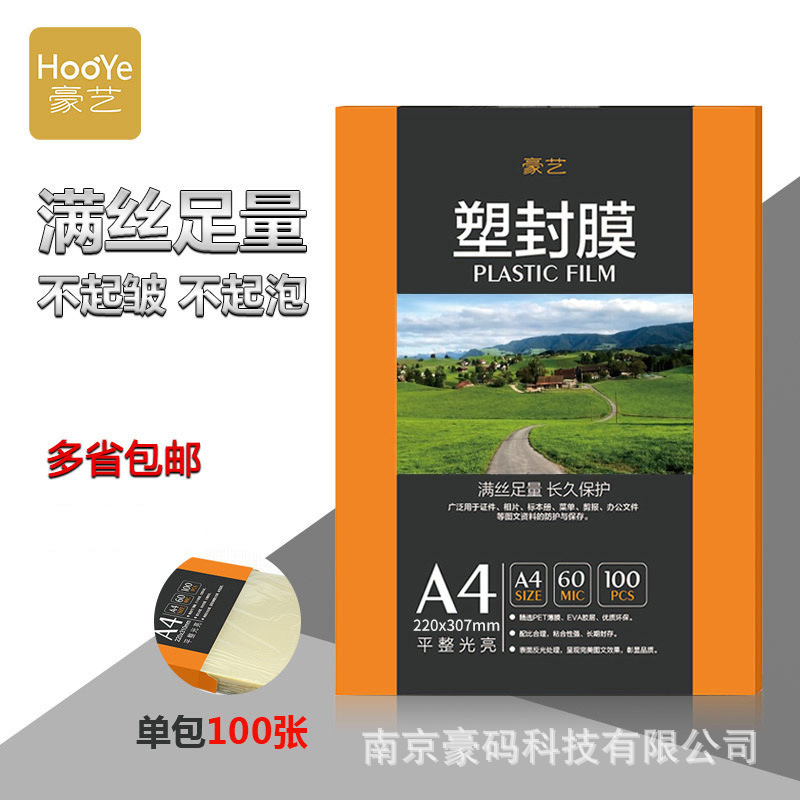 豪艺照片塑封膜A4相片文件过塑膜6C7C8CA3A5护卡热裱速封过胶纸