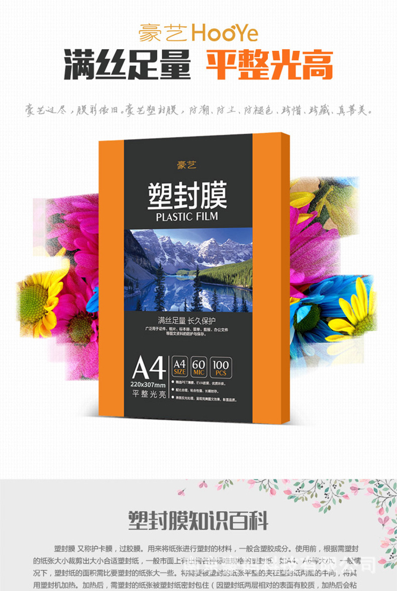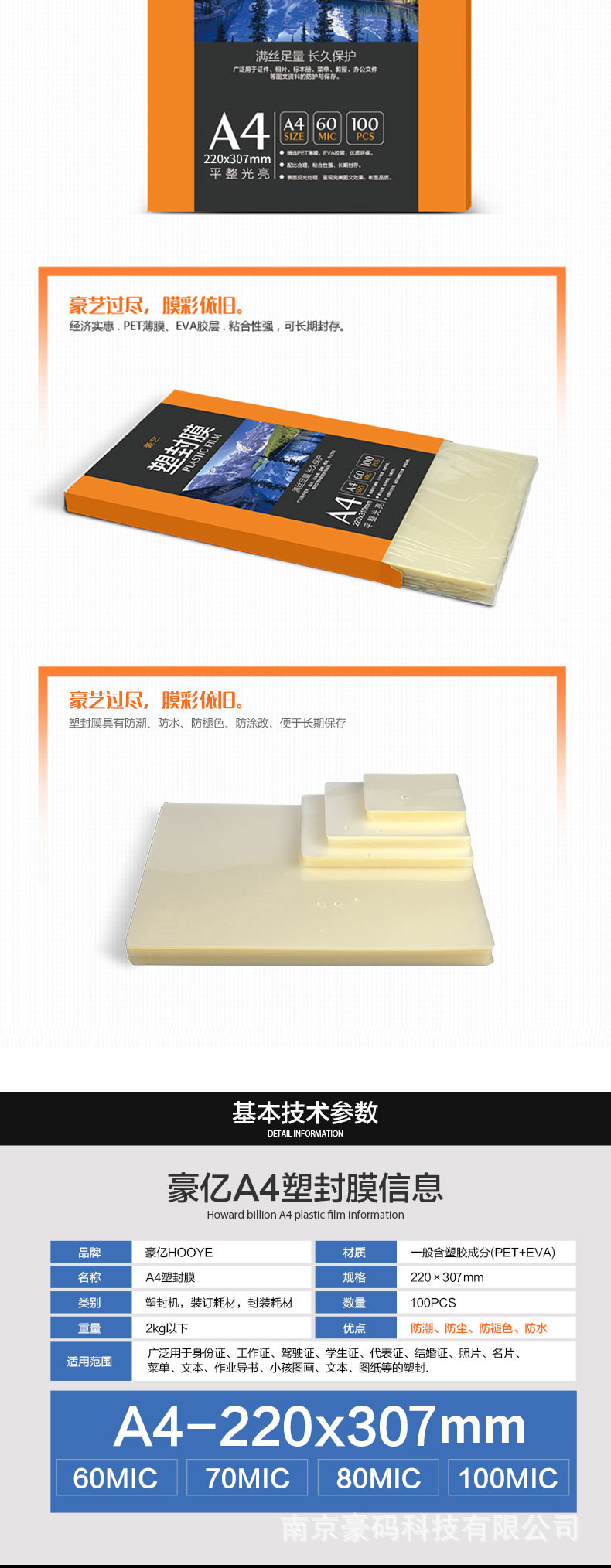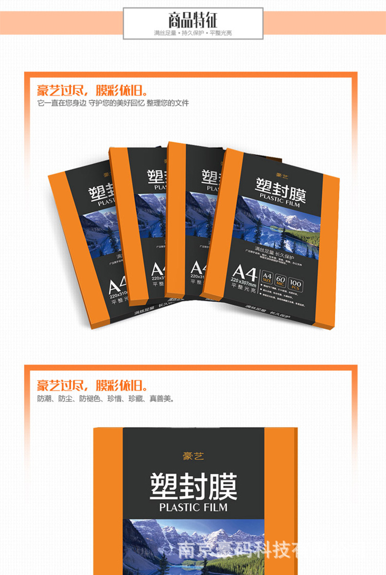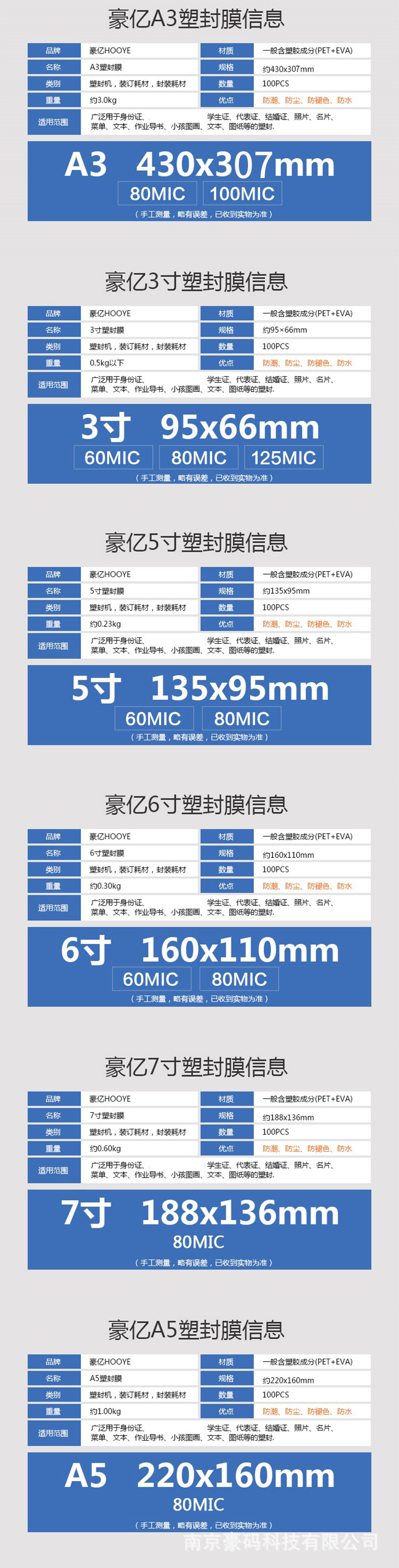 豪艺照片塑封膜A4相片文件过塑膜6C7C8CA3A5护卡热裱速封过胶纸