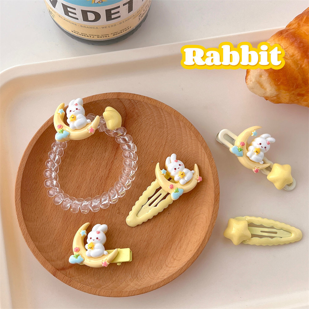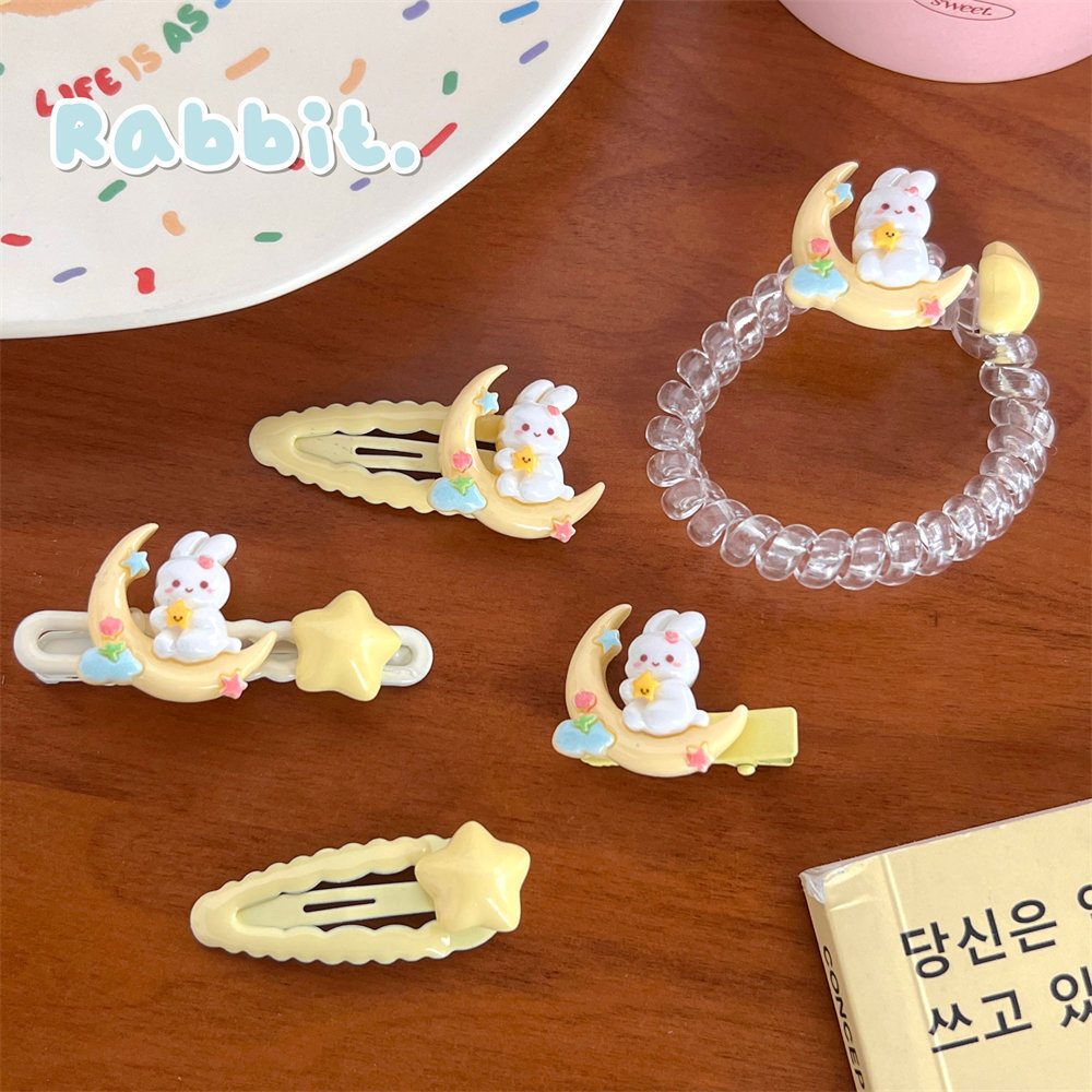 可爱月亮兔兔发夹甜美少女心星星学生刘海夹鸭嘴夹边夹发绳头饰
