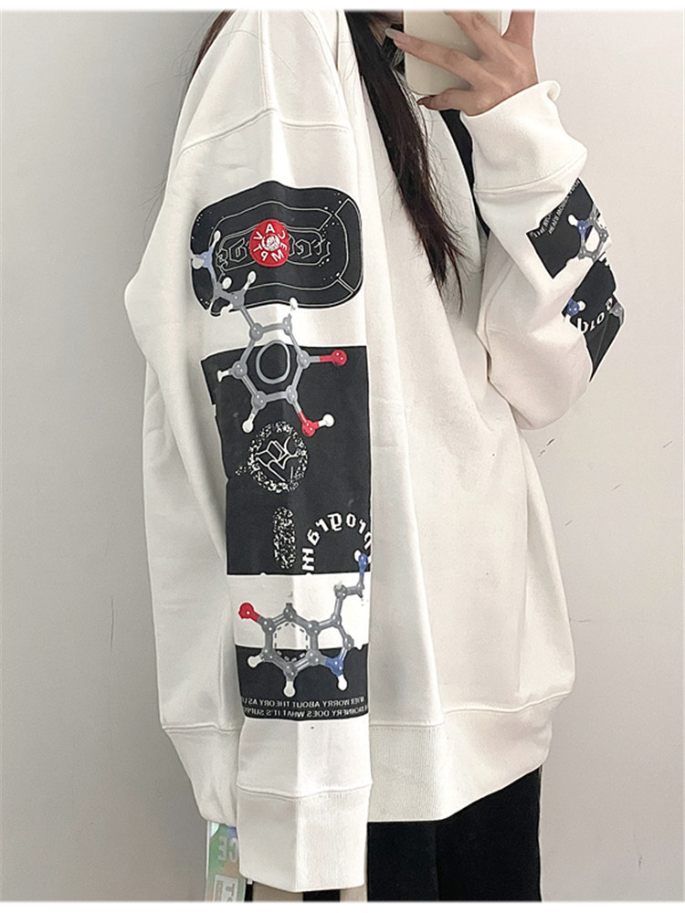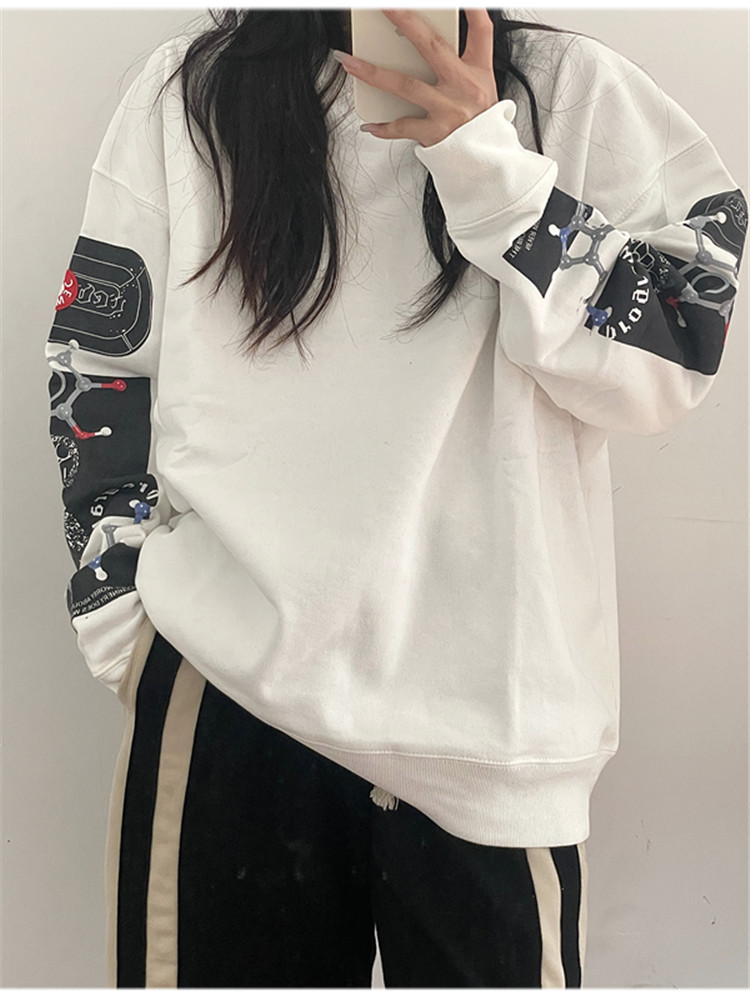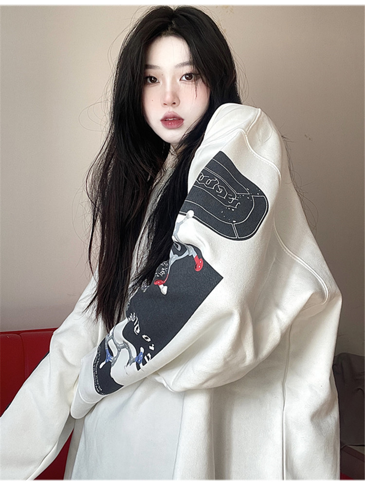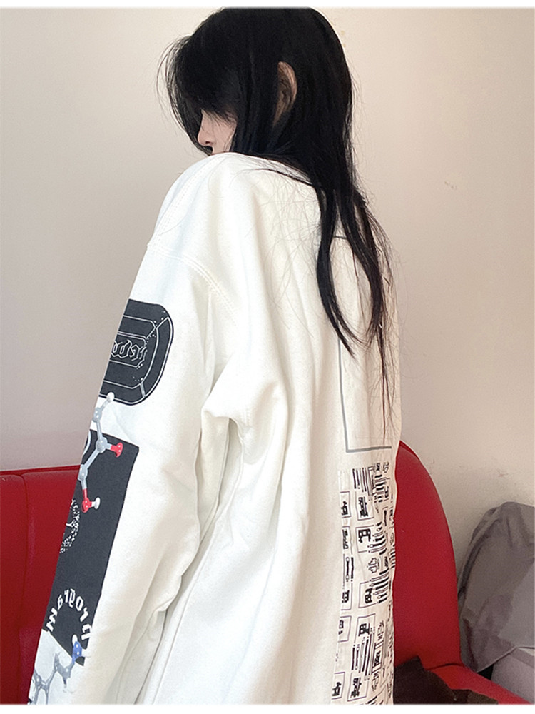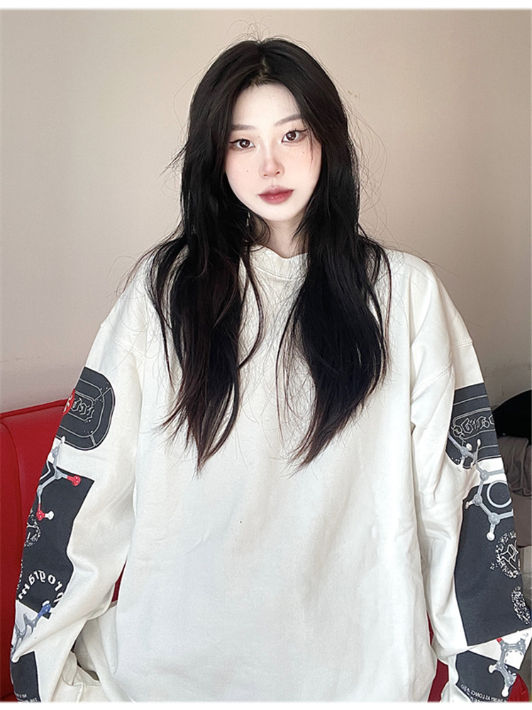 CAVEMPT日潮白色圓領厚棉T男女春秋ins休閒寬鬆落肩布貼情侶款上衣