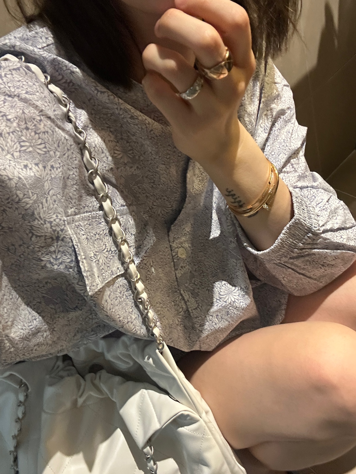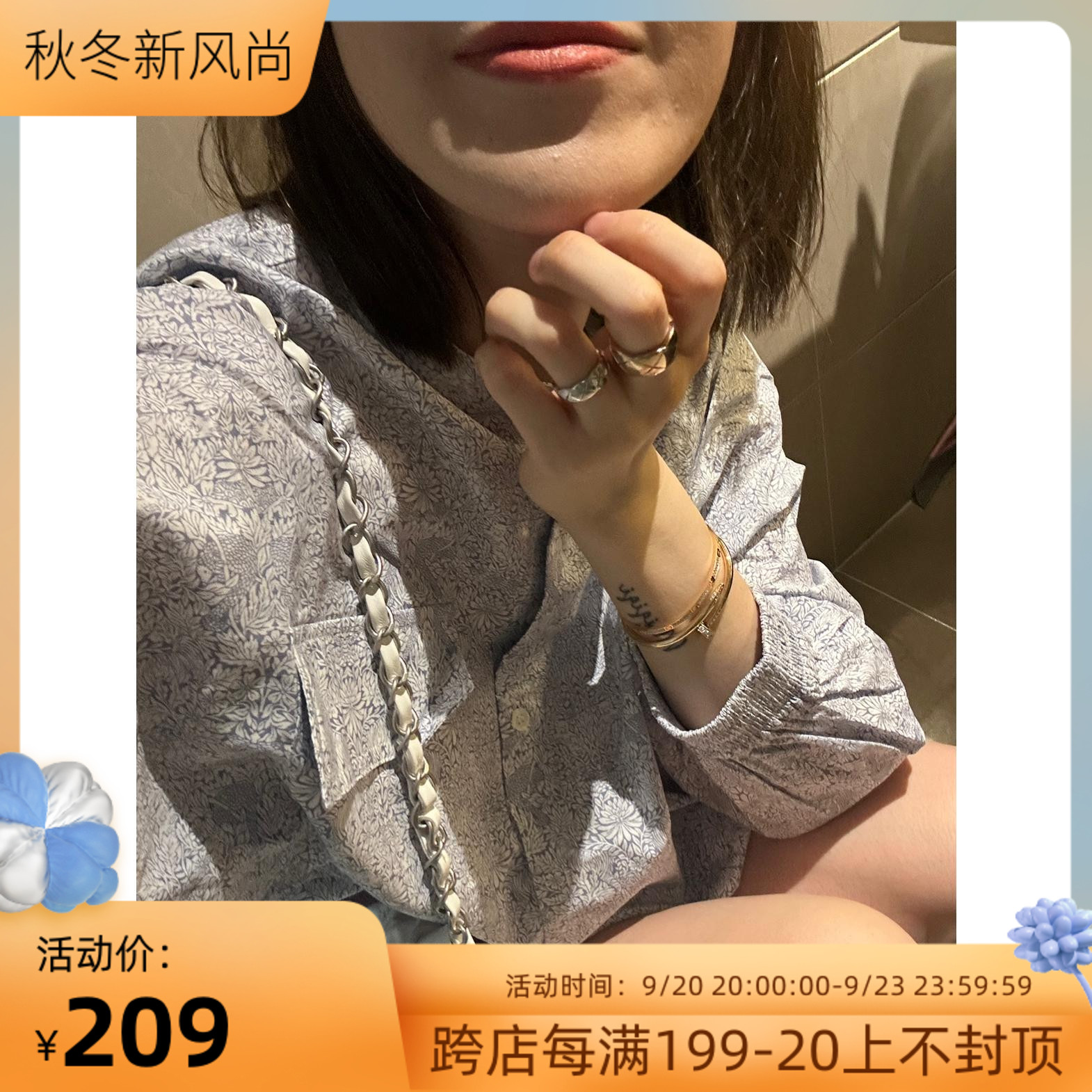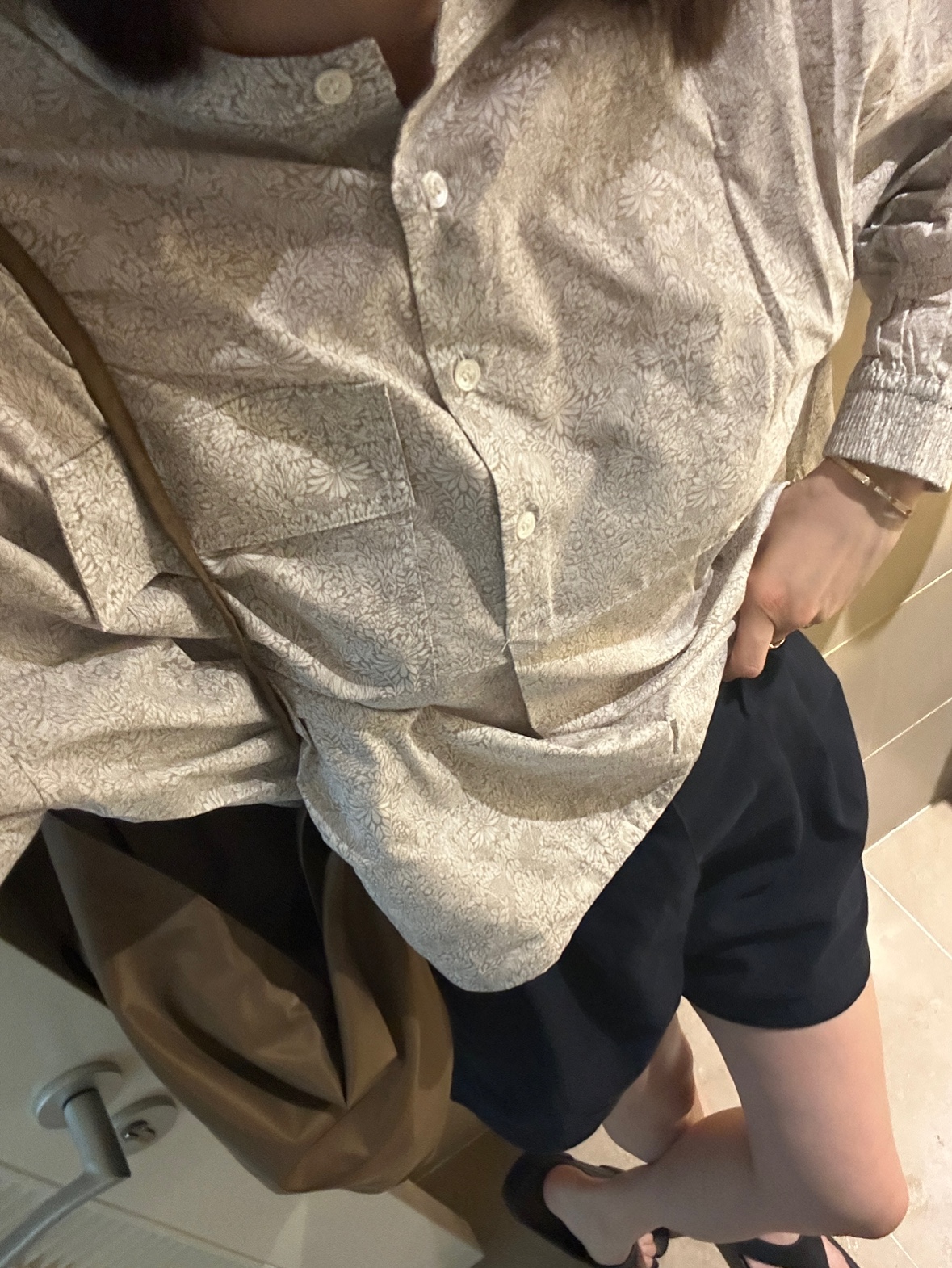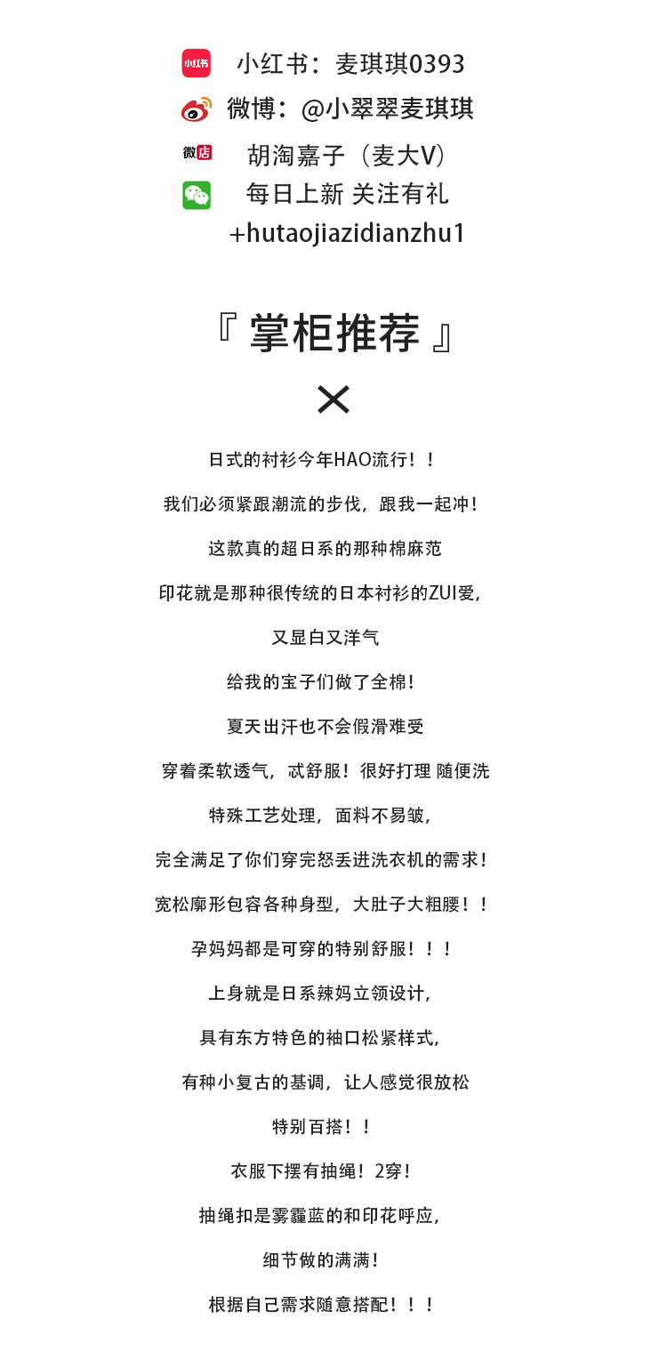 23春夏日式和尚領清新滿印小碎花抽繩兩穿9分鬆緊袖廓形薄料襯衫