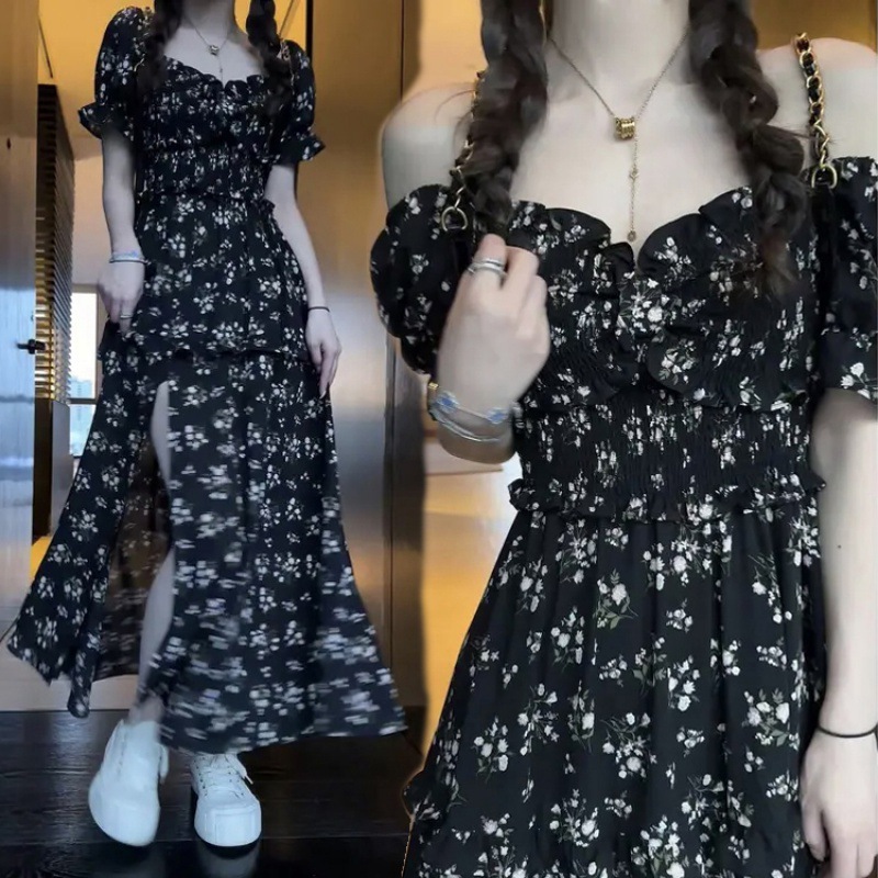 SS /春天仙女裙收腰显瘦碎花开衩法式连衣裙