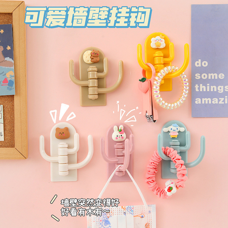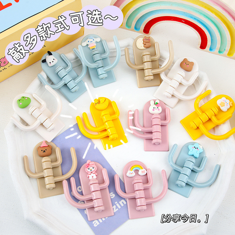ins可爱卡通三挂钩墙上无痕免打孔强力钩子客厅卧室可旋转多用挂
