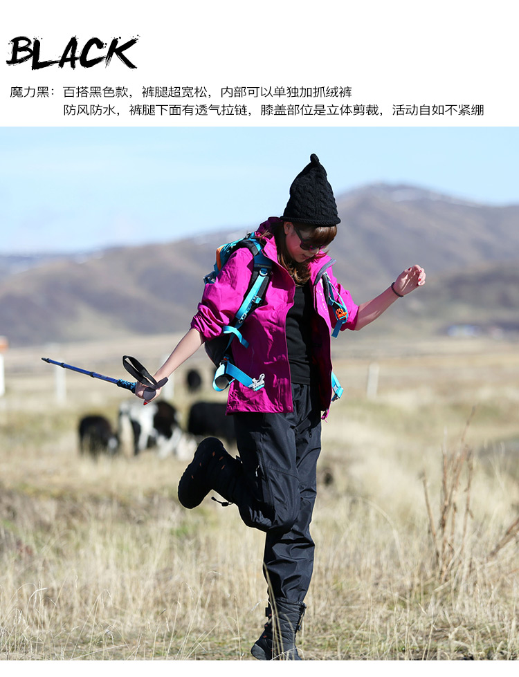 雪丘島戶外四季款衝鋒褲防風防水全壓膠寬鬆版型帶透氣拉鍊衝鋒褲