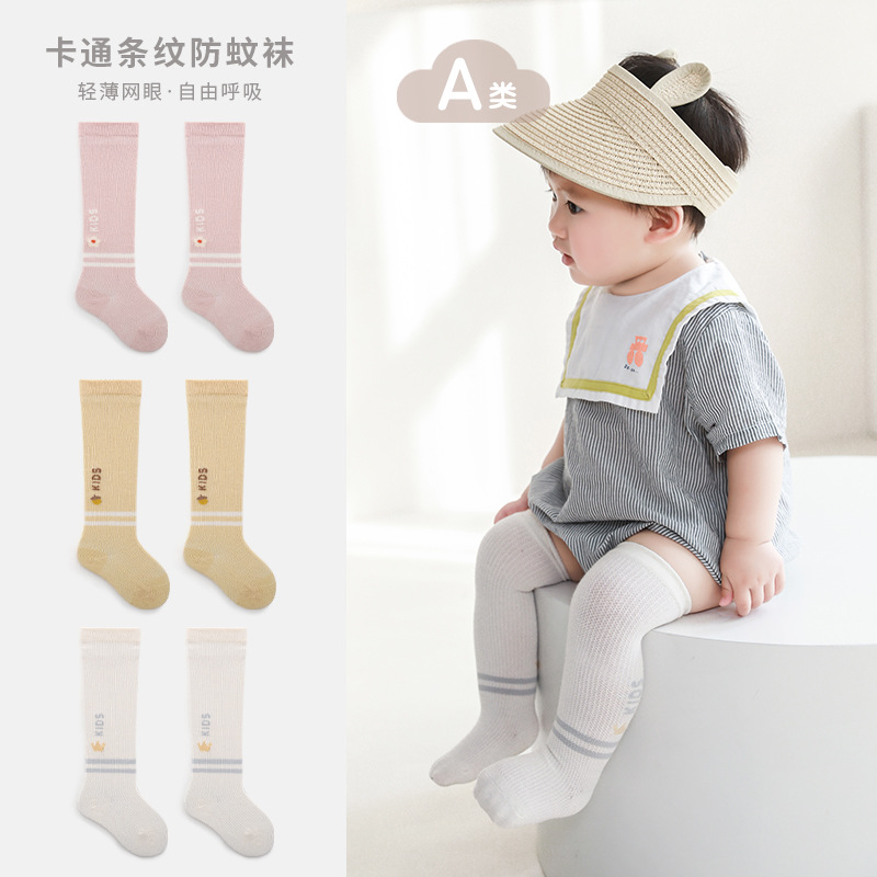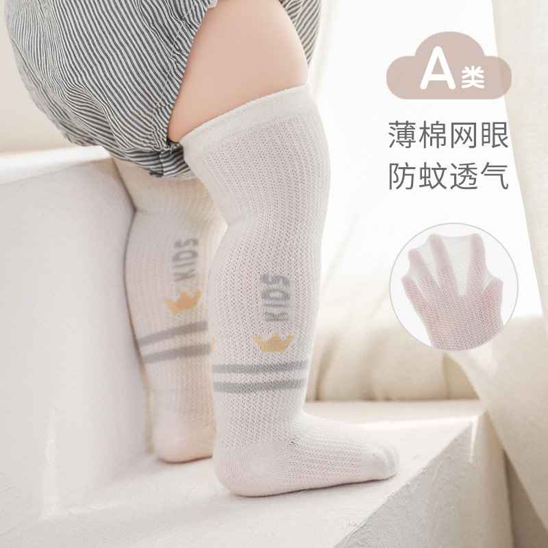 新生婴儿袜子薄款松口无骨宝宝夏天儿童可爱卡通网眼过膝防蚊袜子