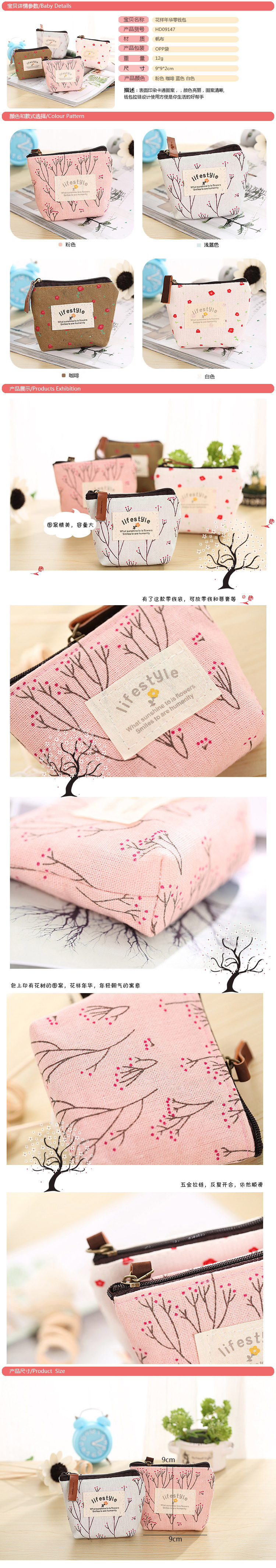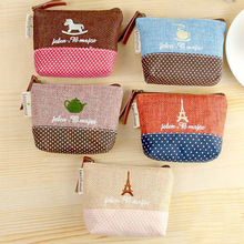 韩版田园风格硬币包 棉麻时光创意帆布小零钱包 钥匙包批发