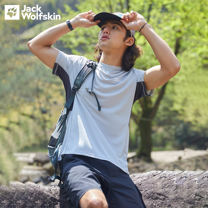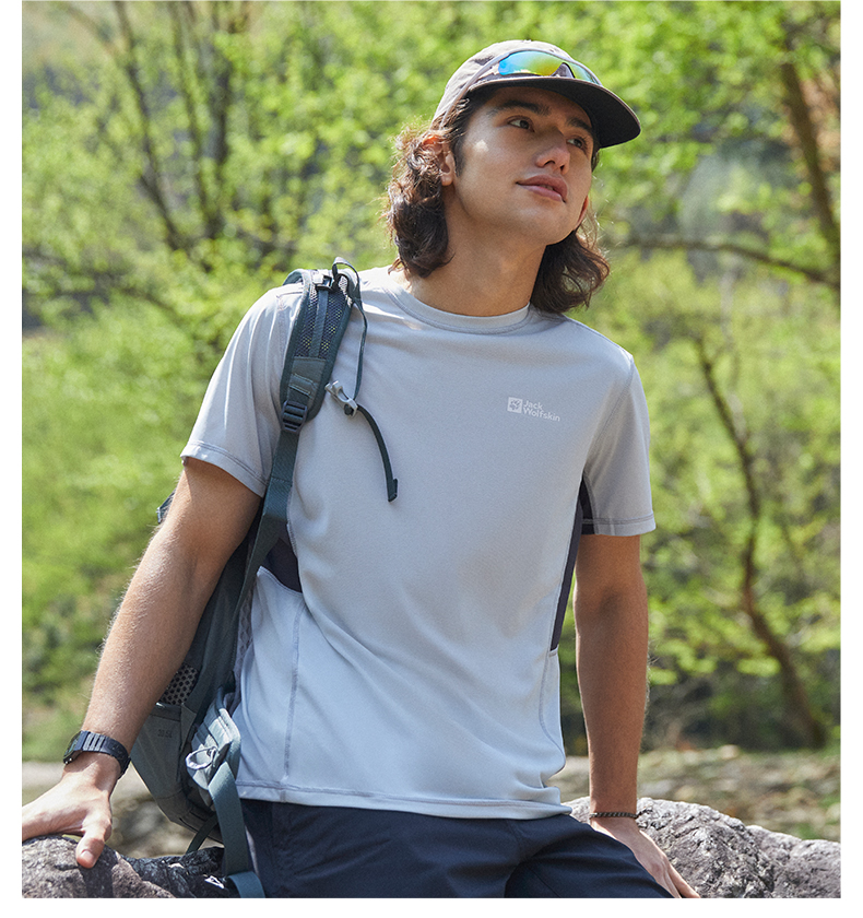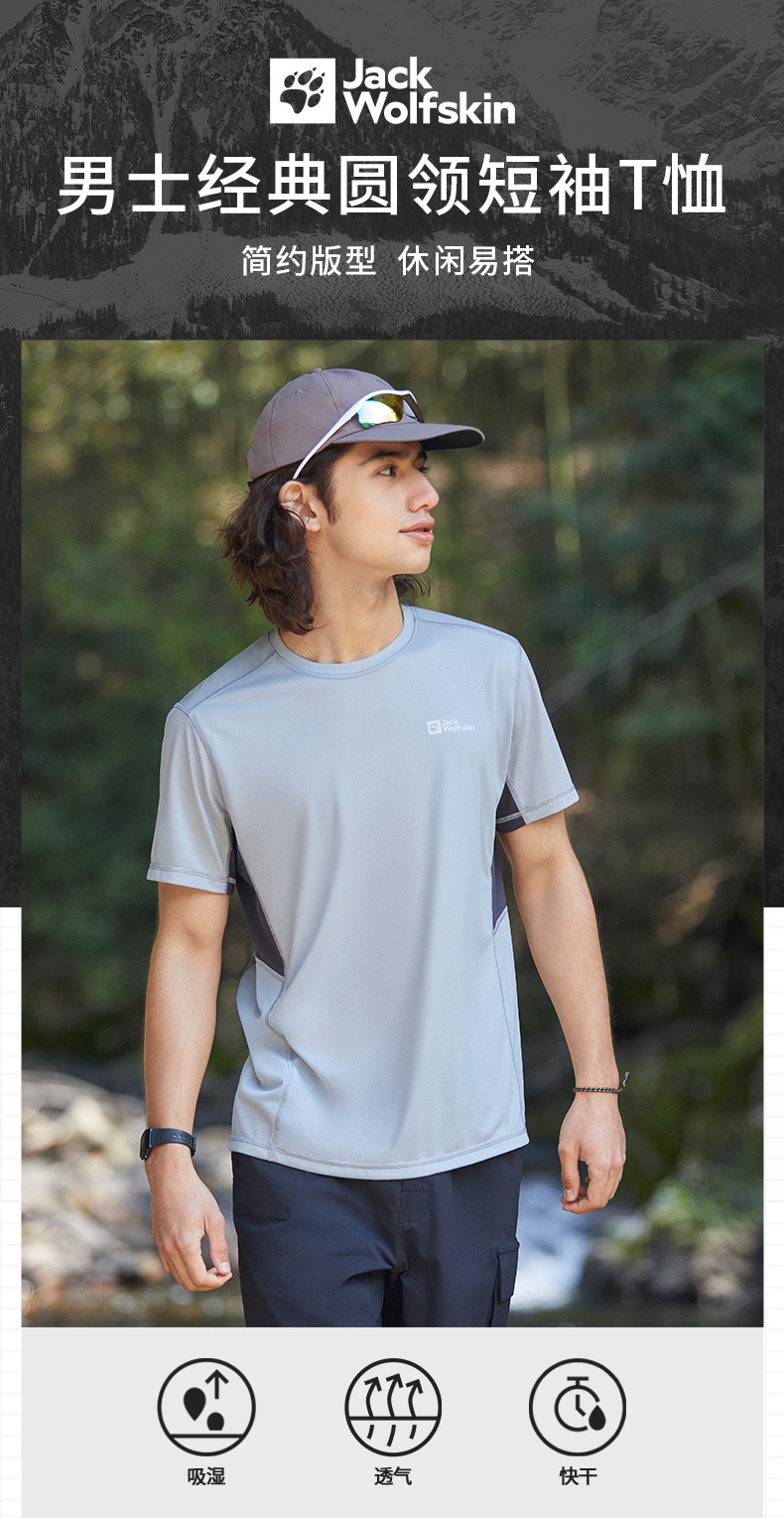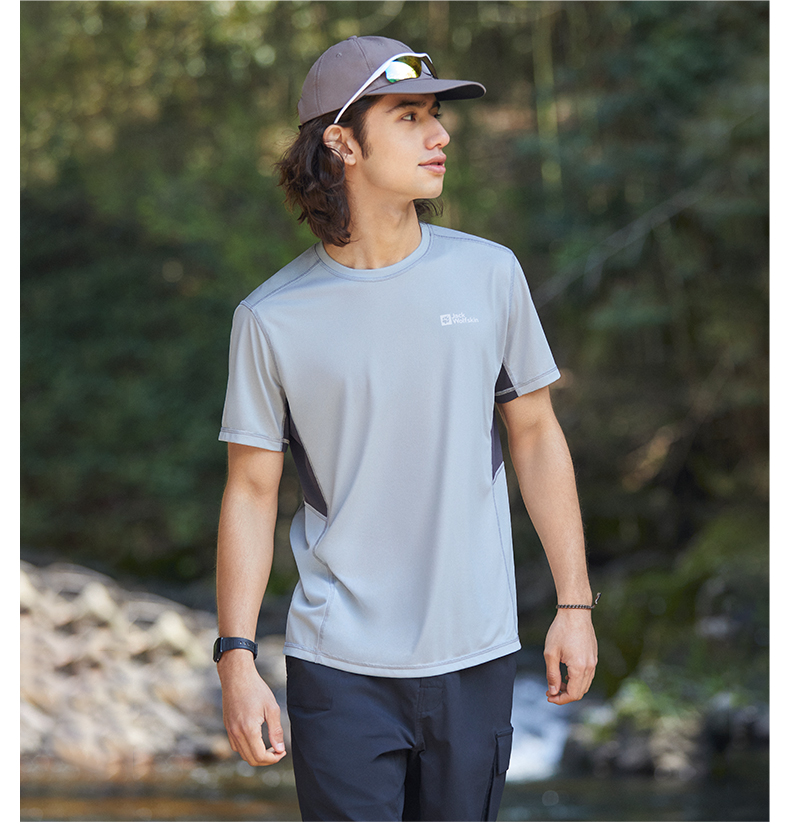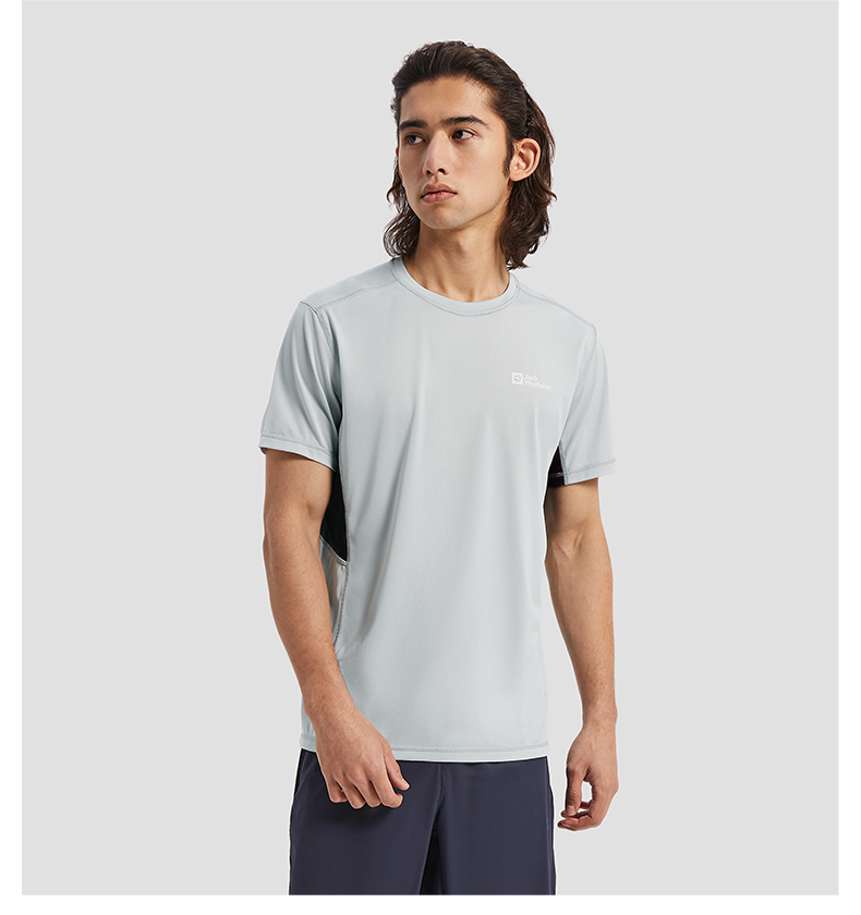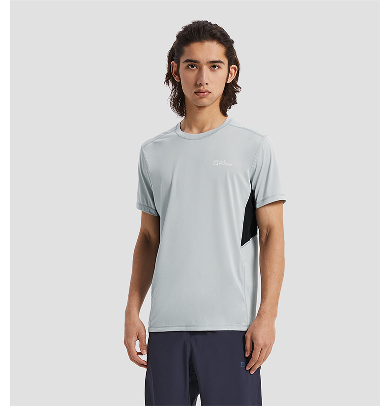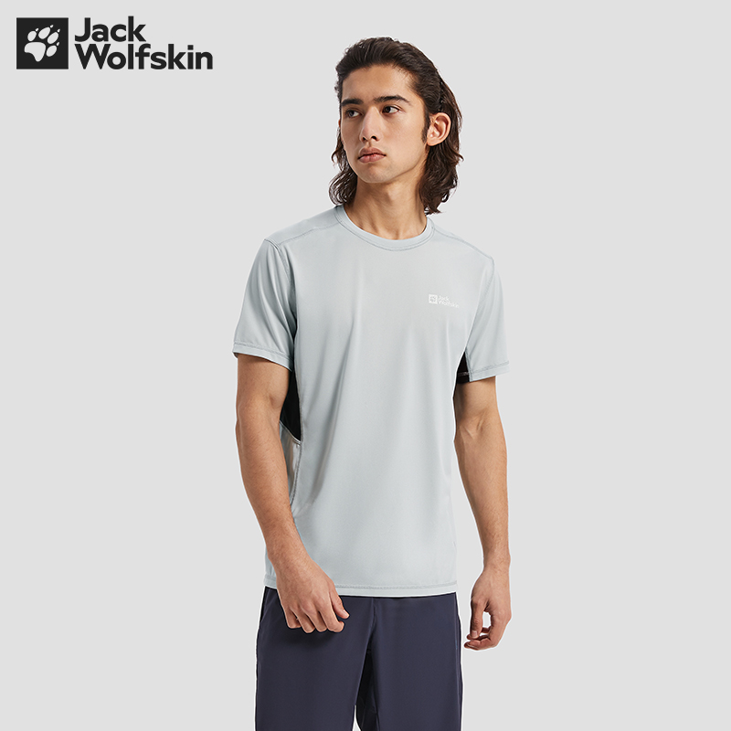 JackWolfskin德國狼爪活力酷感系列男士透氣快乾T恤活性炭灰色