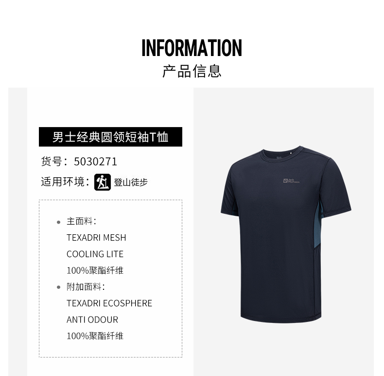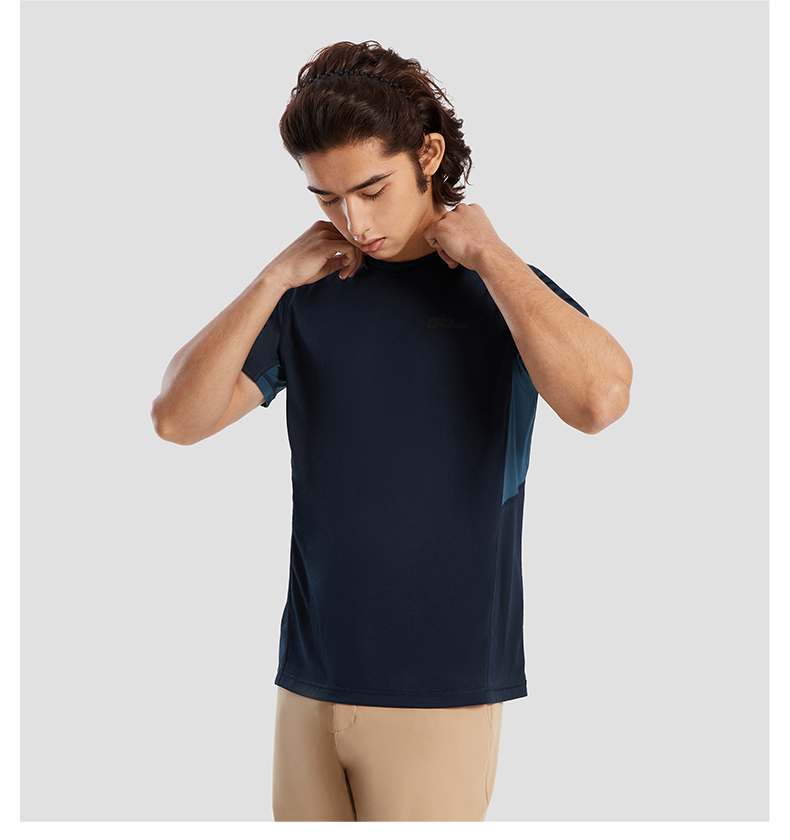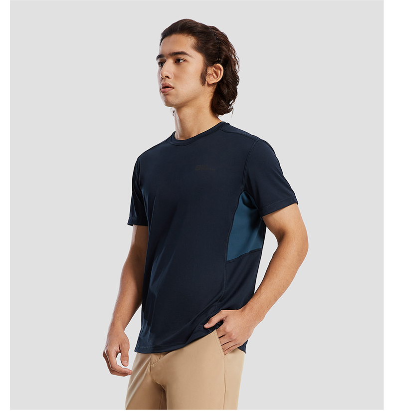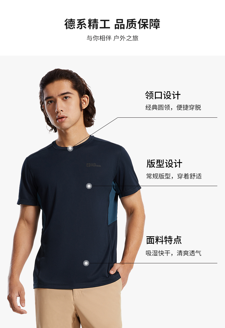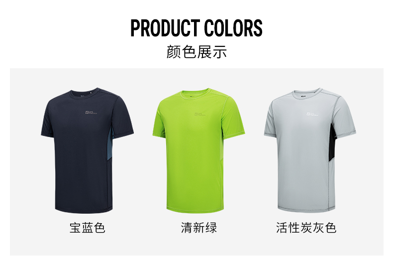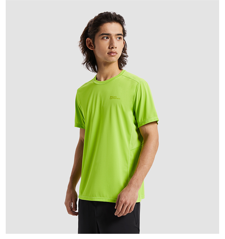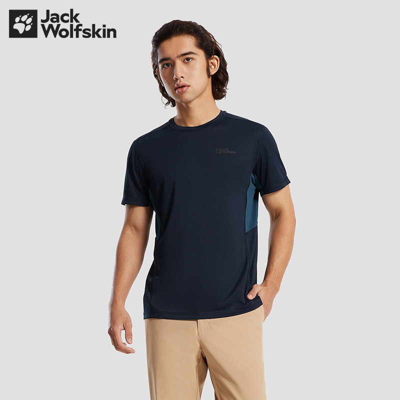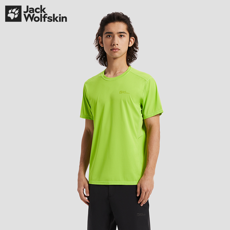 JackWolfskin德國狼爪活力酷感系列男士透氣快乾T恤活性炭灰色